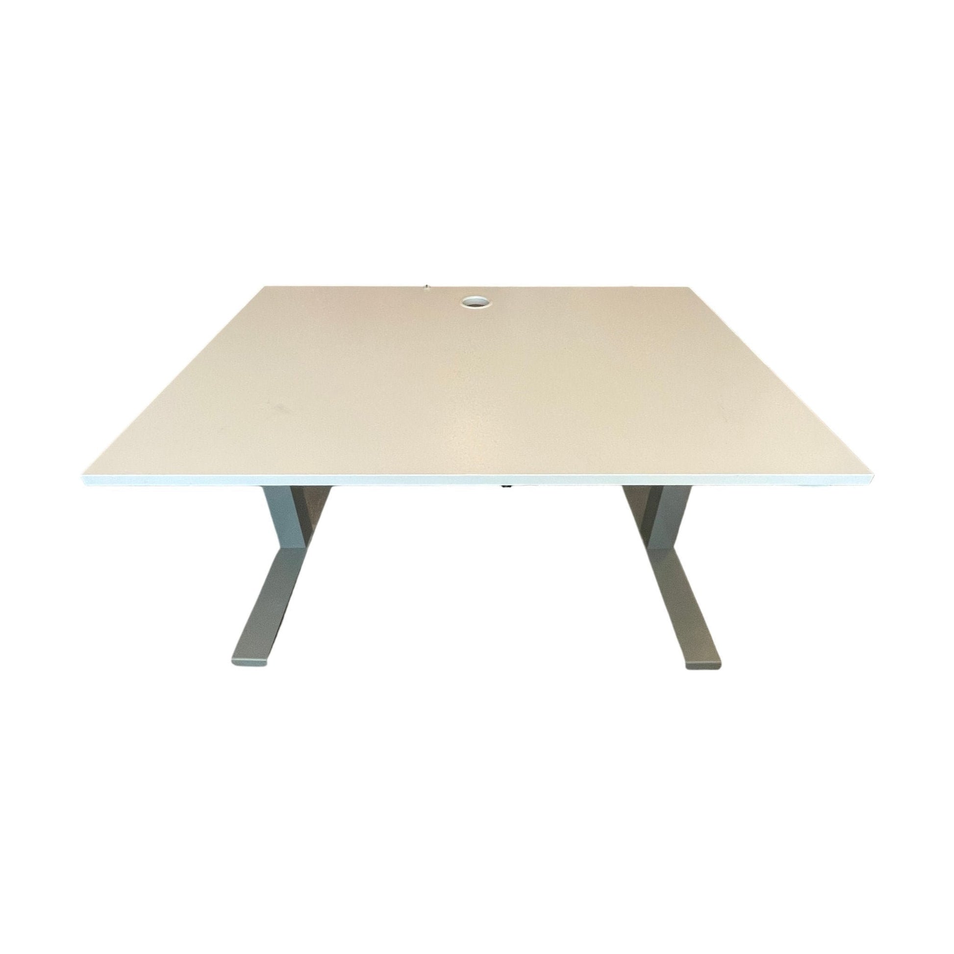Skrivebordet er i god stand med minimale brukstegn. Det er ingen dype merker eller skader, og det leveres med funksjonell elektrisk høydejustering.