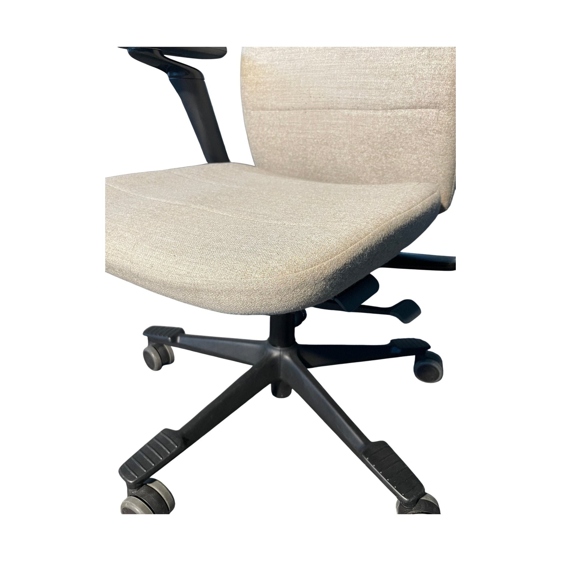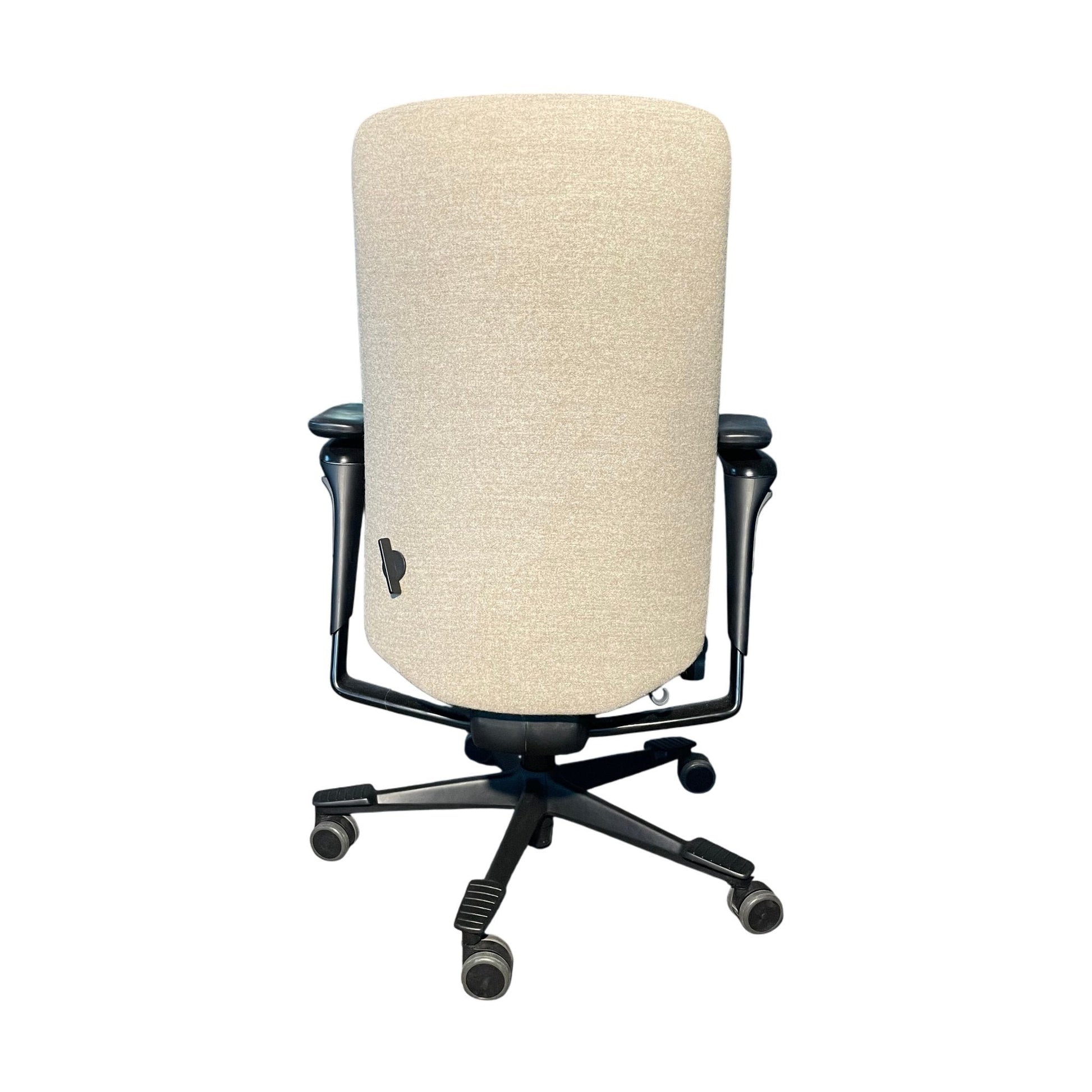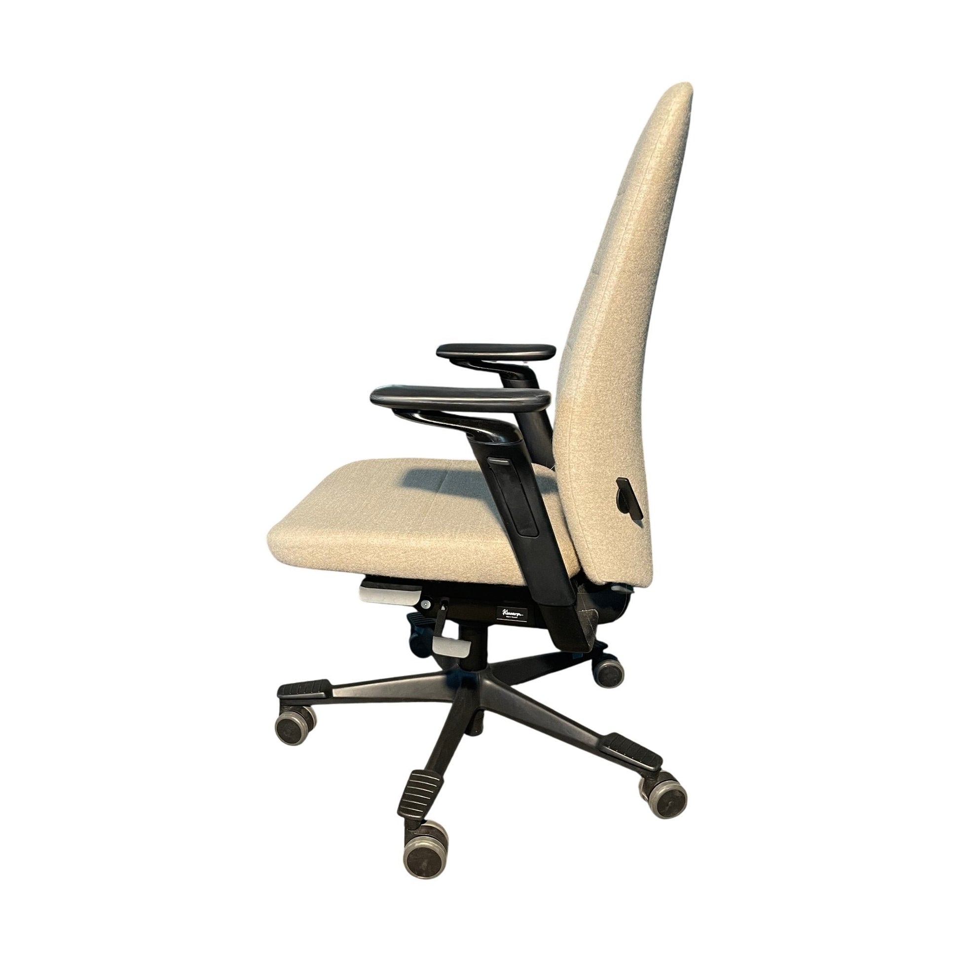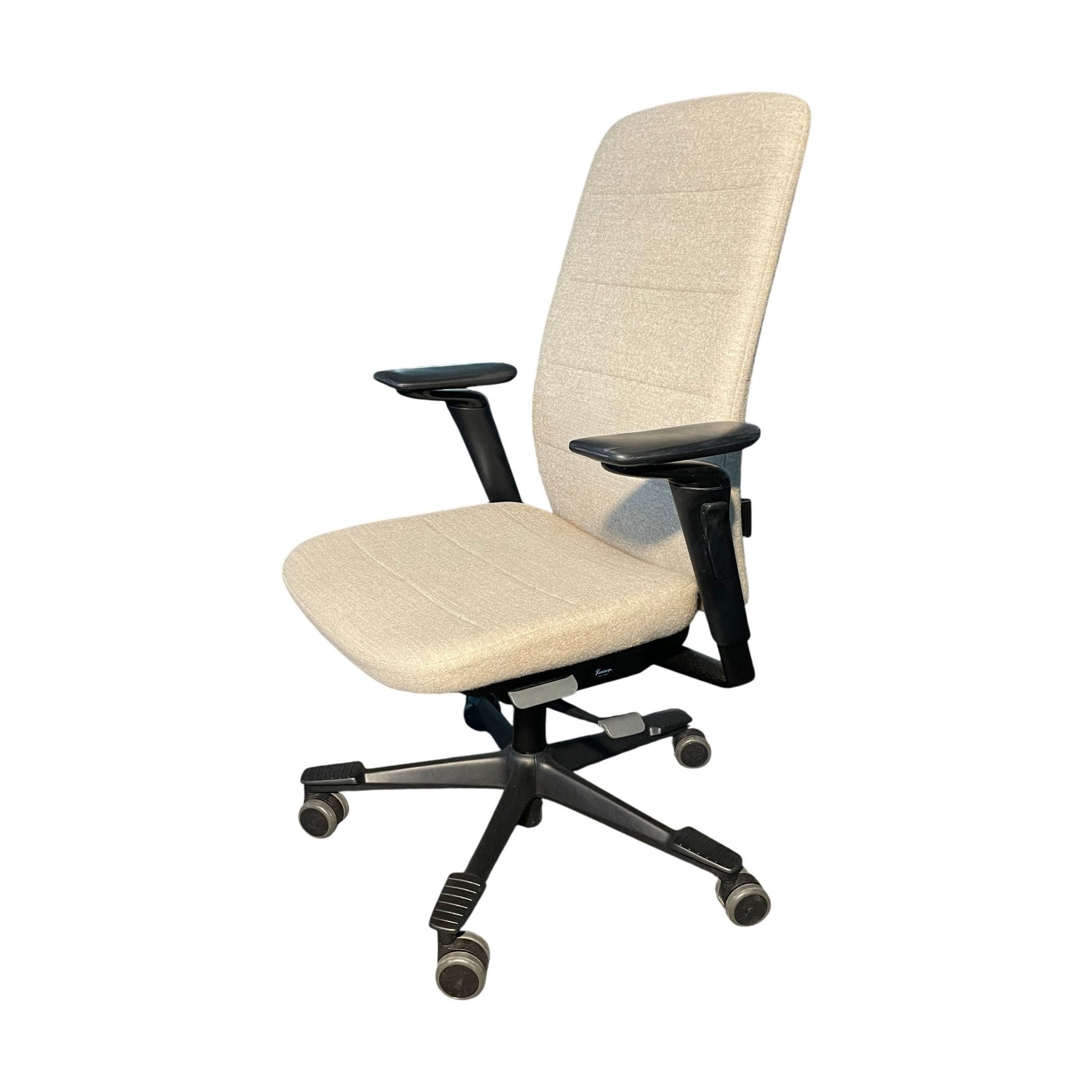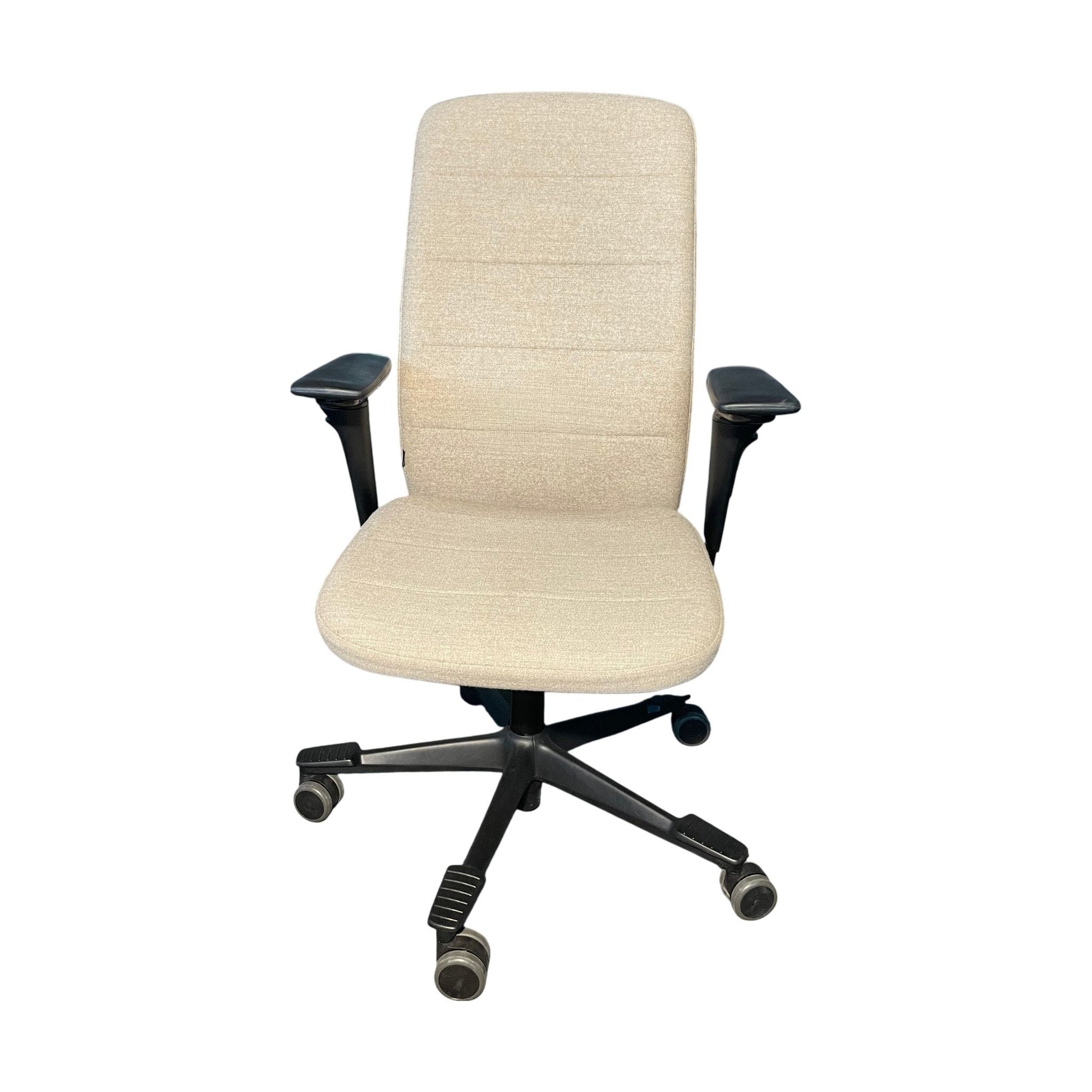Ergonomisk kontorstol fra Kinnarps med et sand stofftrekk og en stabil svart base. Med sitt enkle og stilrene design, er denna stolen perfekt for enhver arbeidsplass.