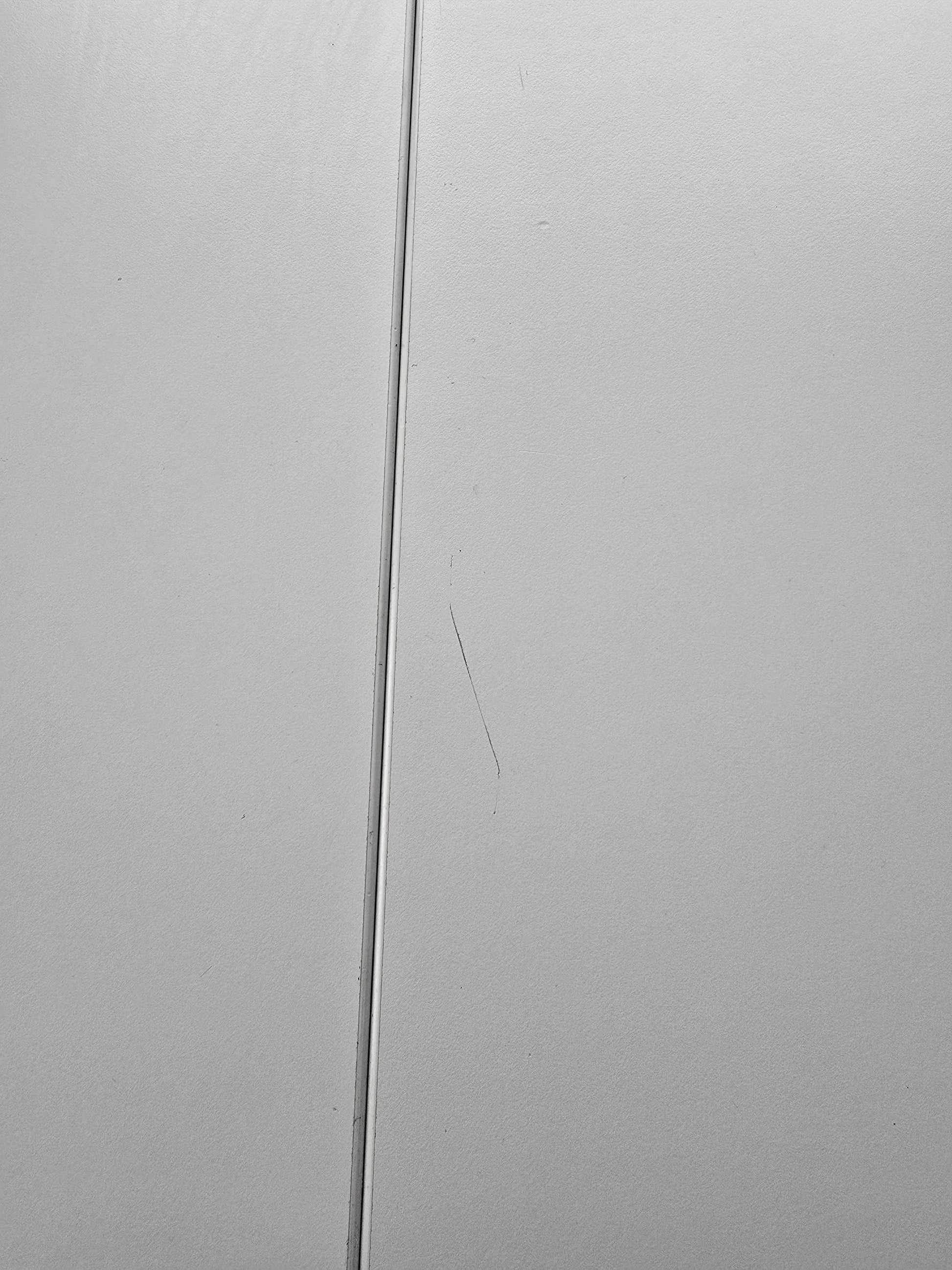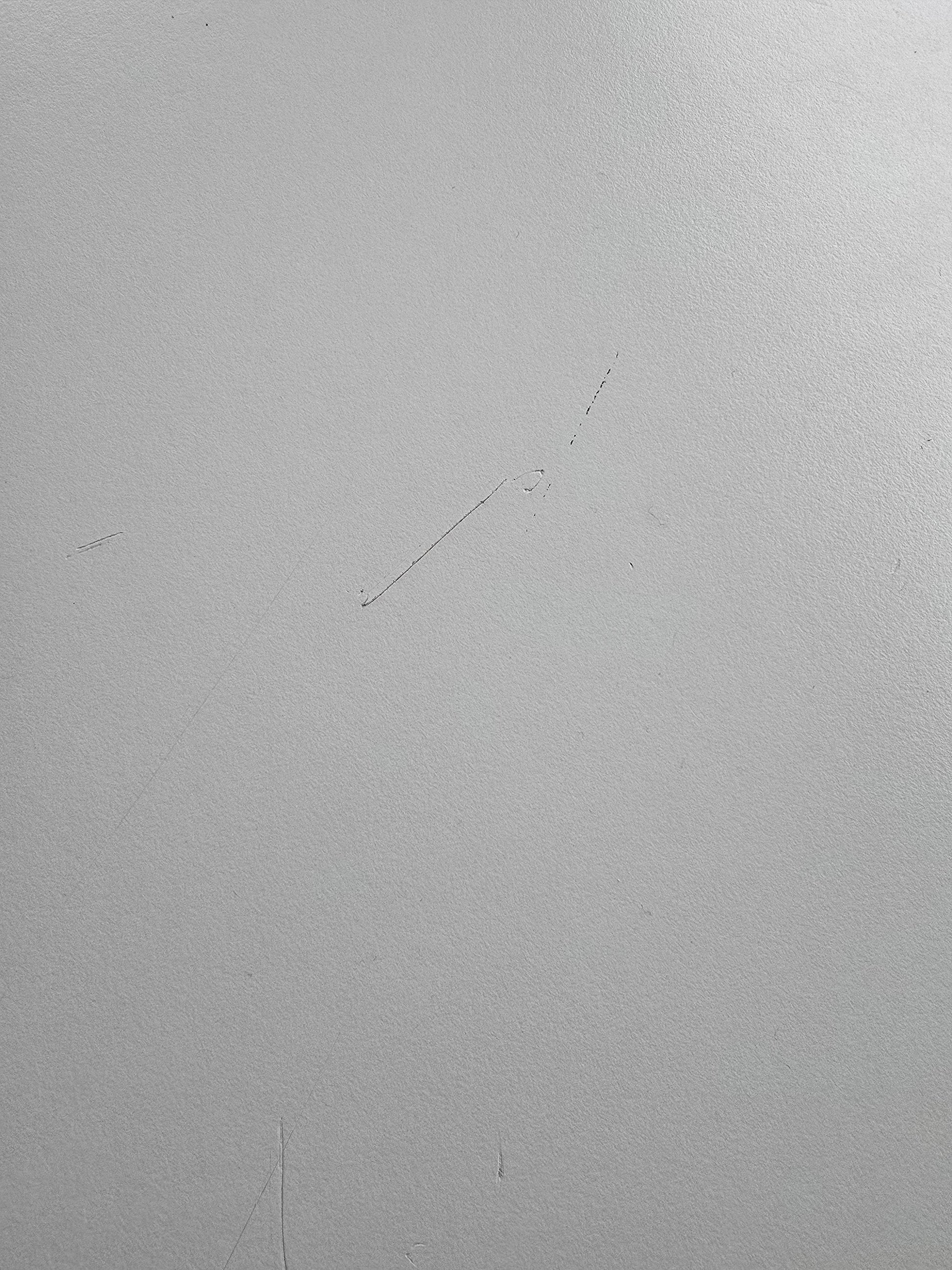 Det er noen riper og hakk i bordplaten, som vises i bildene, men disse påvirker ikke bordets funksjonalitet. Den ene knotten på bena står løst under bordet, samt at noen av knottene mangler slik at det må brukes møbelknotter. Ellers er bordet i fin stand og klart til bruk.