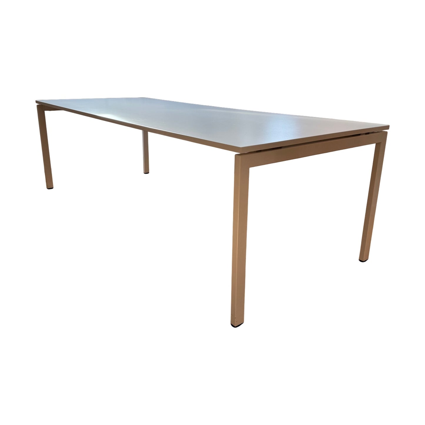 Bordet er i god stand og har ingen synlige bruksmerker, noe som gjør det ideelt til kontorbruk og møter. Det gir en lys og åpen følelse i rommet.