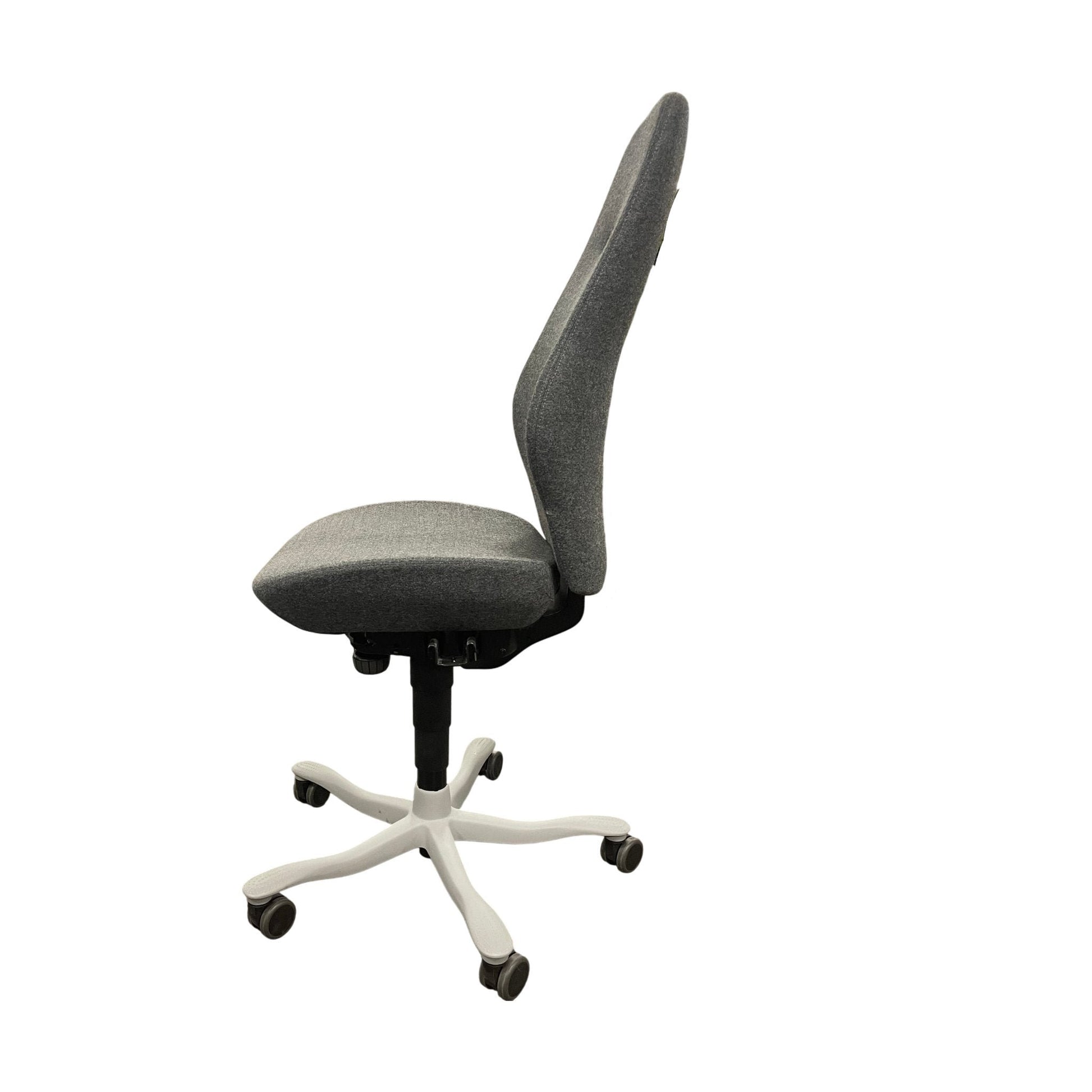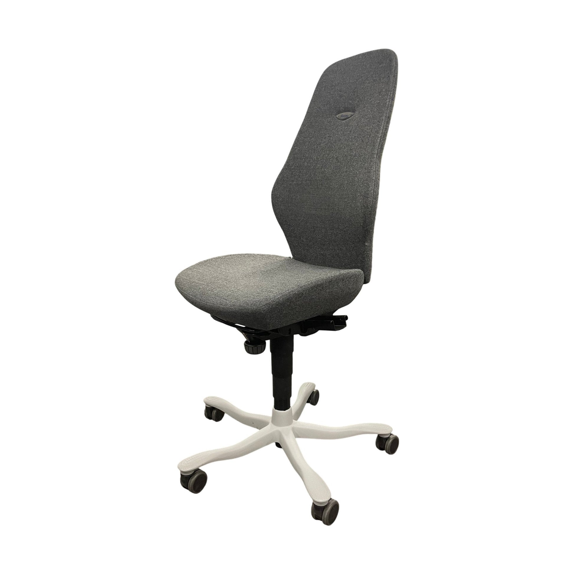 Komfortabel kontorstol fra Kinnarps med en stilren og moderne design. Denne modellen, Plus [8], har et grått stofftrekk som gir et elegant preg og passer godt inn i de fleste kontormiljøer. Den er designet for både komfort og støtte, noe som gjør den ideell for lange arbeidsdager.