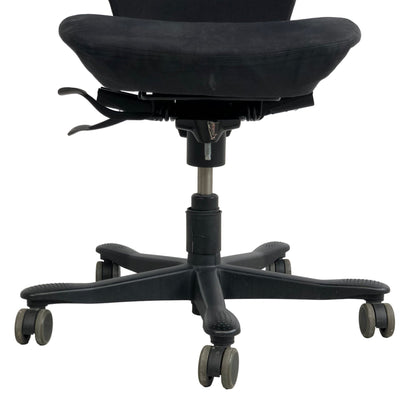 Stoffet har noe slitasje, men dette påvirker hverken komforten eller funksjonaliteten. Kontorstolen er ellers i helt fungerende stand.