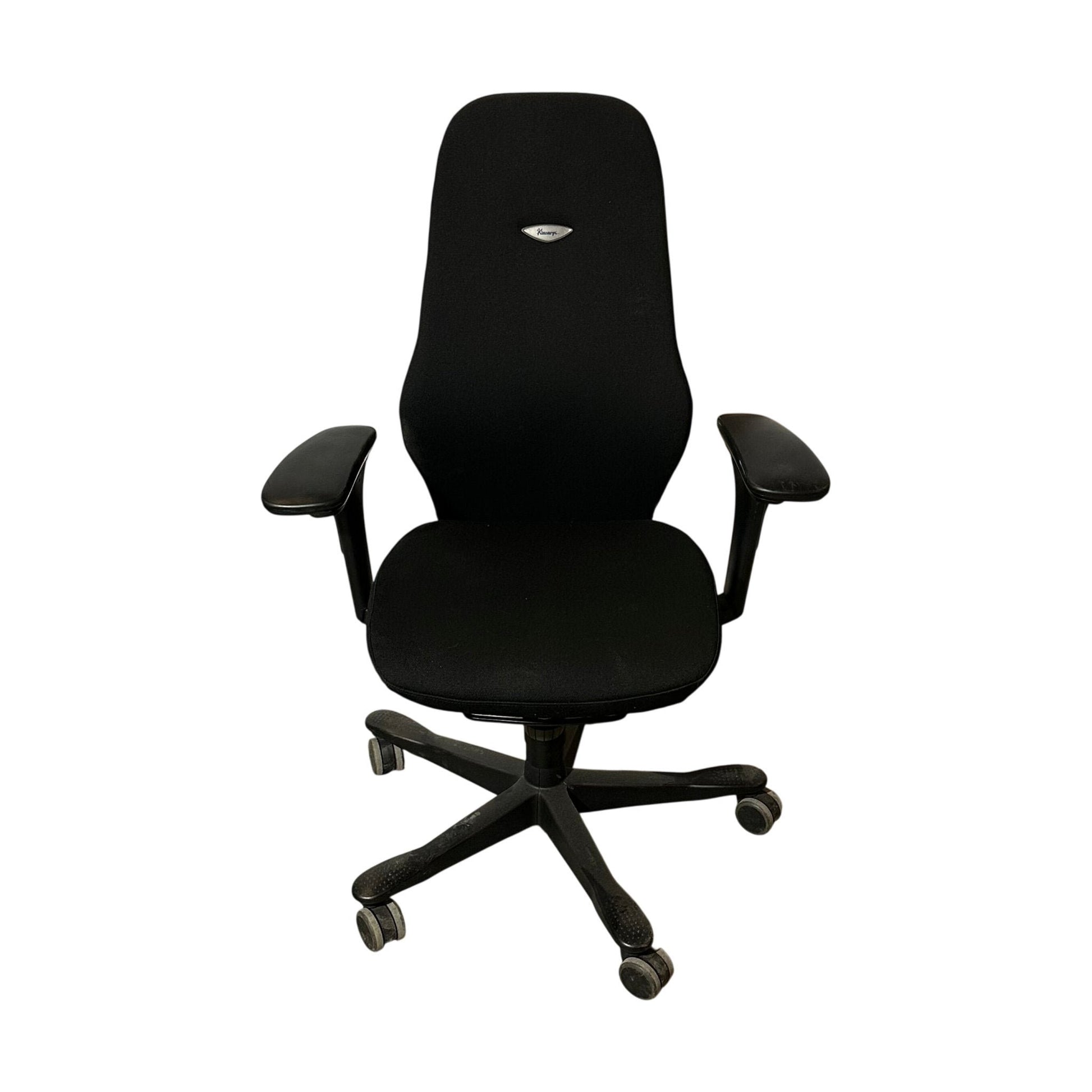Ergonomisk kontorstol fra Kinnarps, modell Plus[8], designet for komfort og støtte i lange arbeidstimer. Denne stolen har en stilren og moderne helsort finish som gjør den enkel å integrere i ethvert kontormiljø.