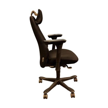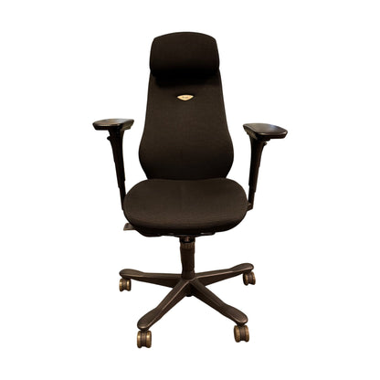 Kinnarps Synchrone 8000 kontorstol med nakkestøtte og armlener i sort.