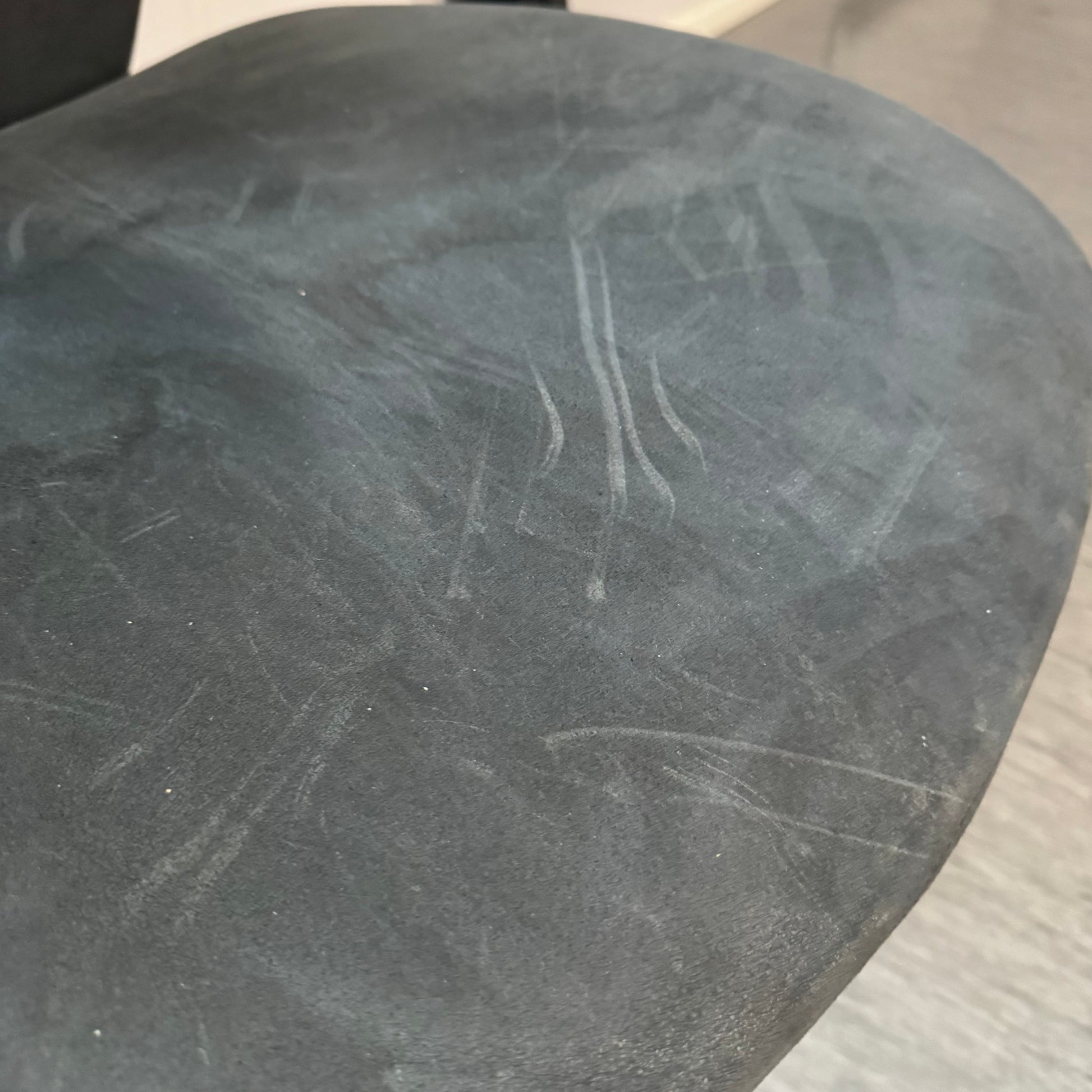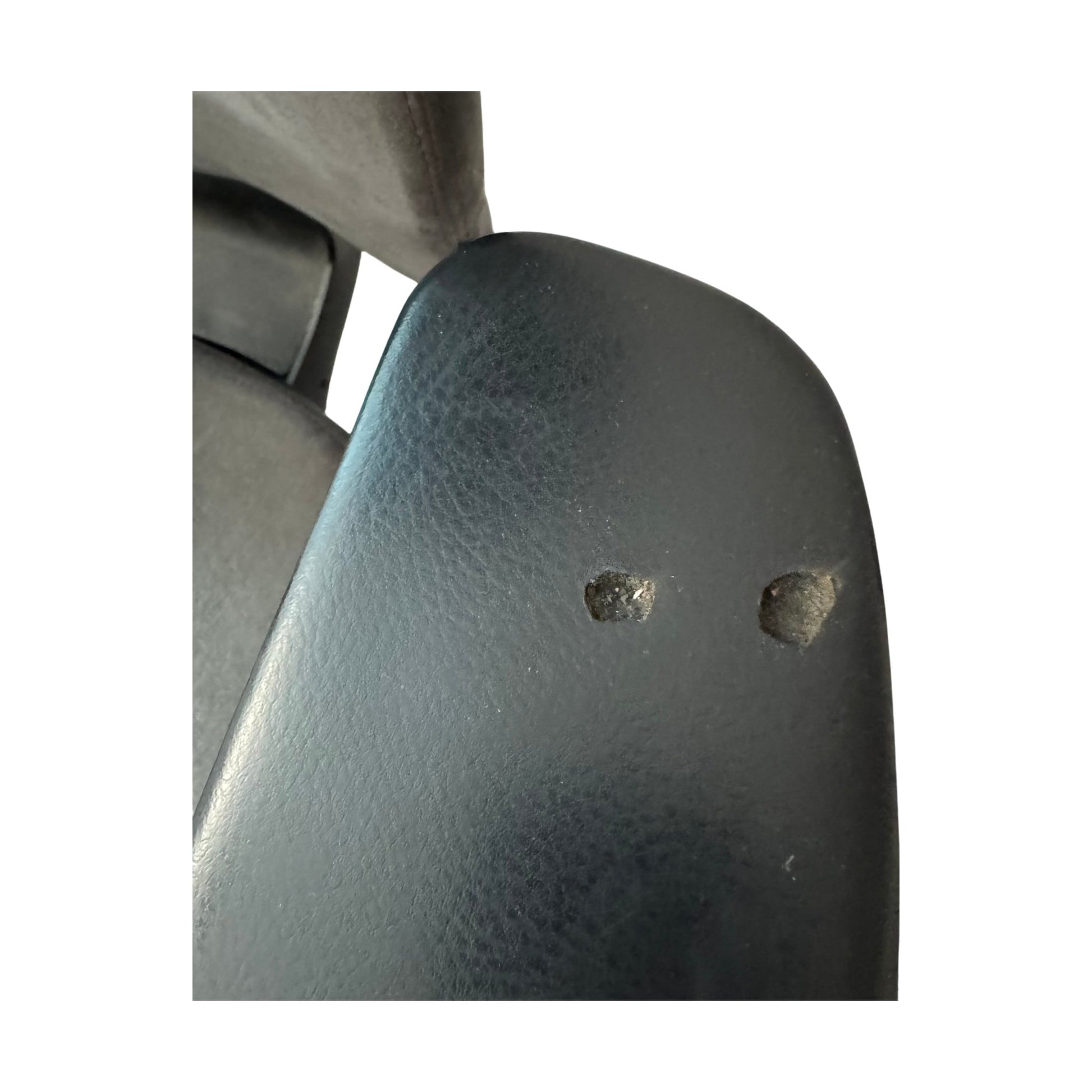 Stolen har betydelige skader i både stoff og armlener, noe som påvirker det visuelle inntrykket. Til tross for dette er stolen fullt funksjonell og kan gi god støtte i ditt arbeidsmiljø.