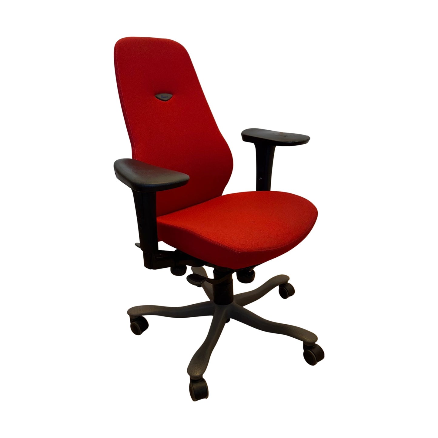 Stilig og komfortabel kontorstol fra Kinnarps med en iøynefallende rød farge. Denne modellen, Synchrone, har en moderne design og passer perfekt inn i ethvert kontorlandskap, kombinert med både estetikk og funksjonalitet. Synchrone-mekanismen sørger for at sete og ryggstøtte beveger seg synkront i et balansert forhold, noe som gir en jevn og ergonomisk gyngebevegelse. Motstanden kan justeres etter brukerens vekt, og setet kan vippes forover og låses trinnløst for optimal komfort.