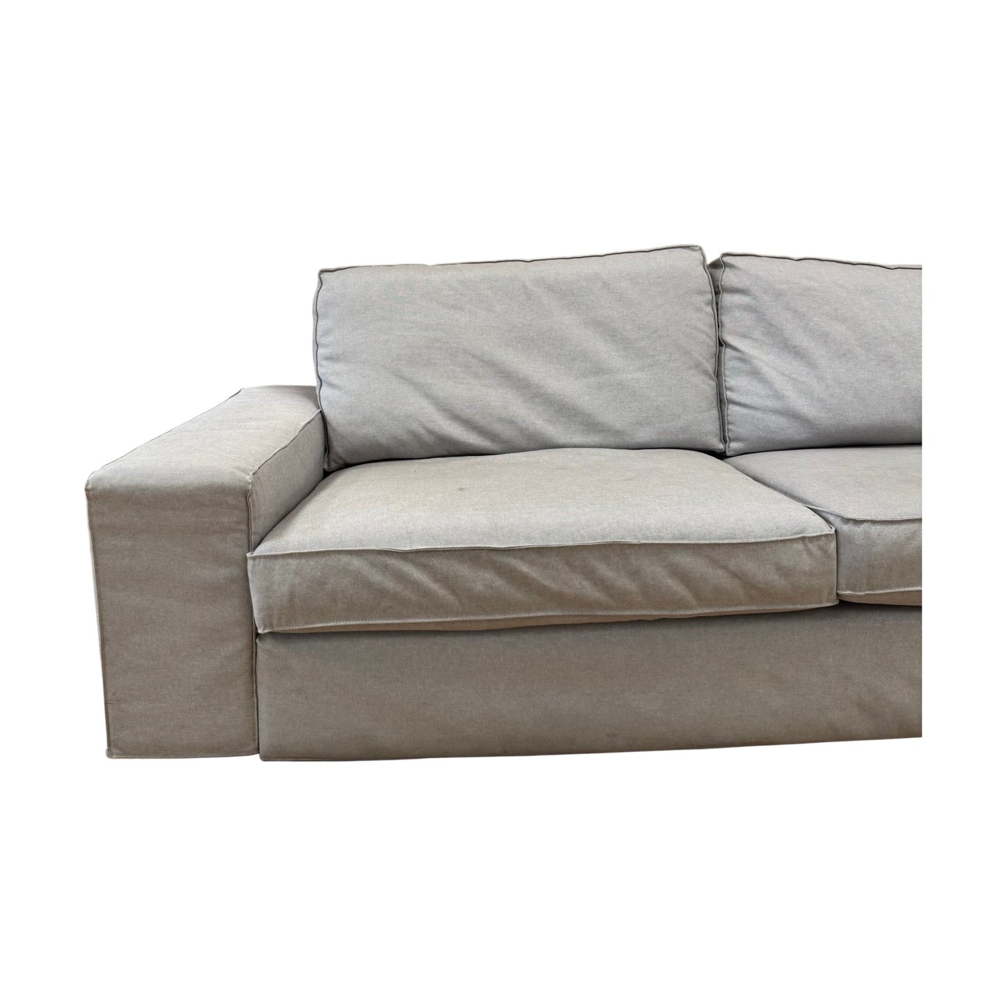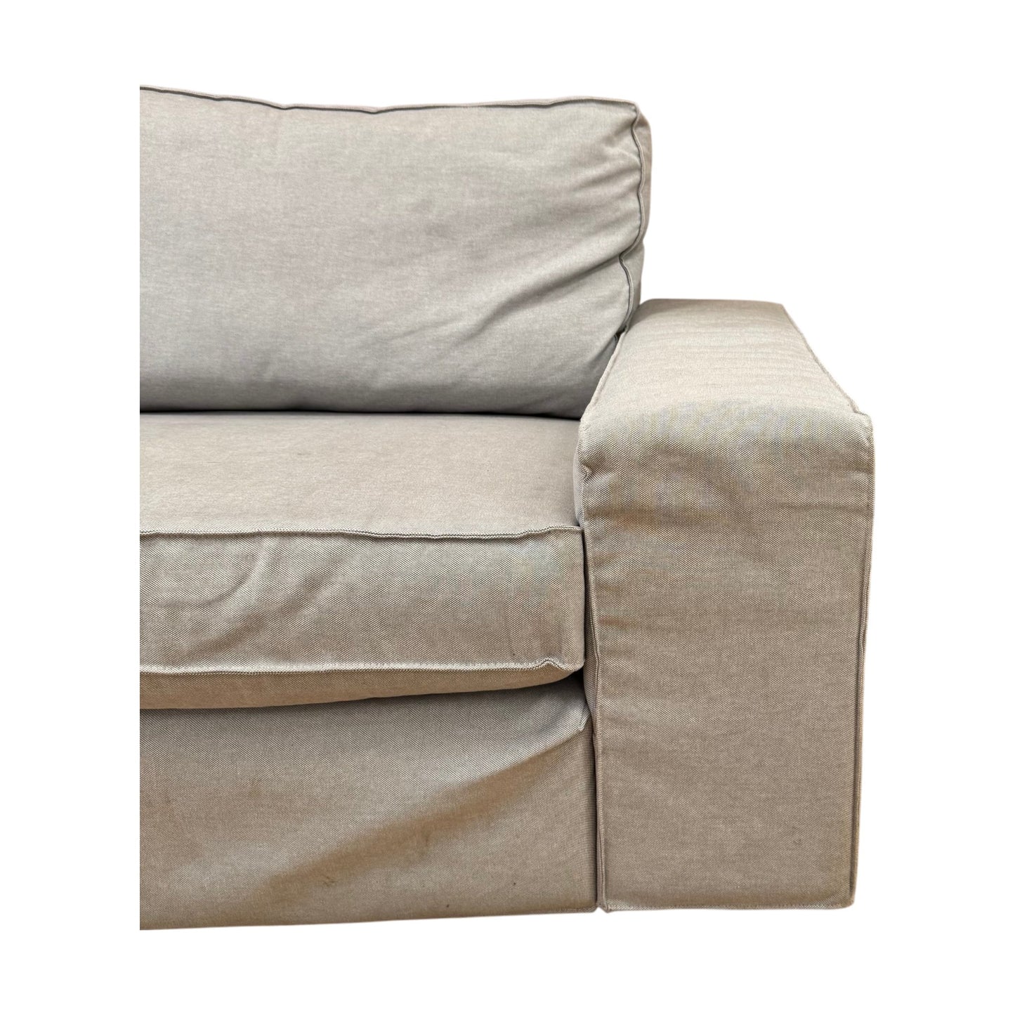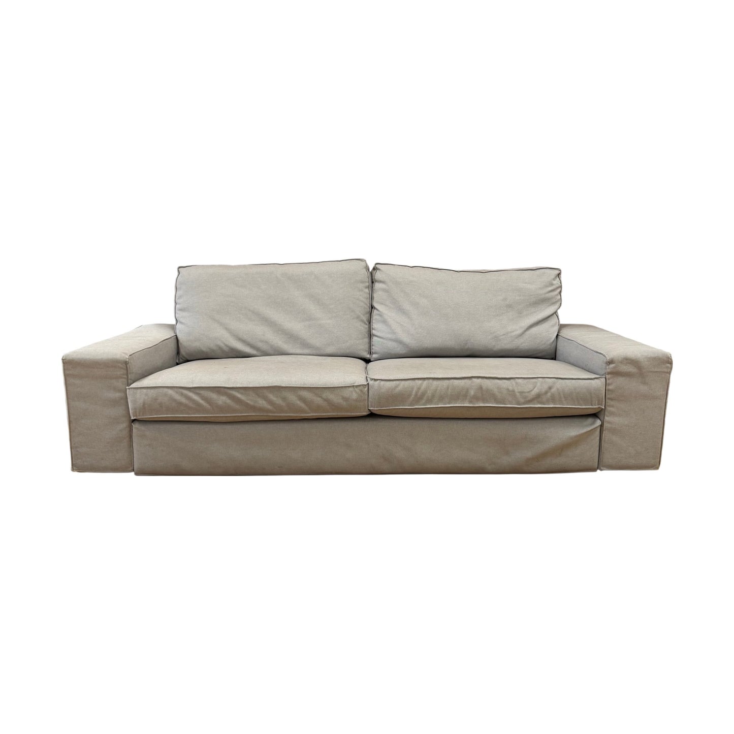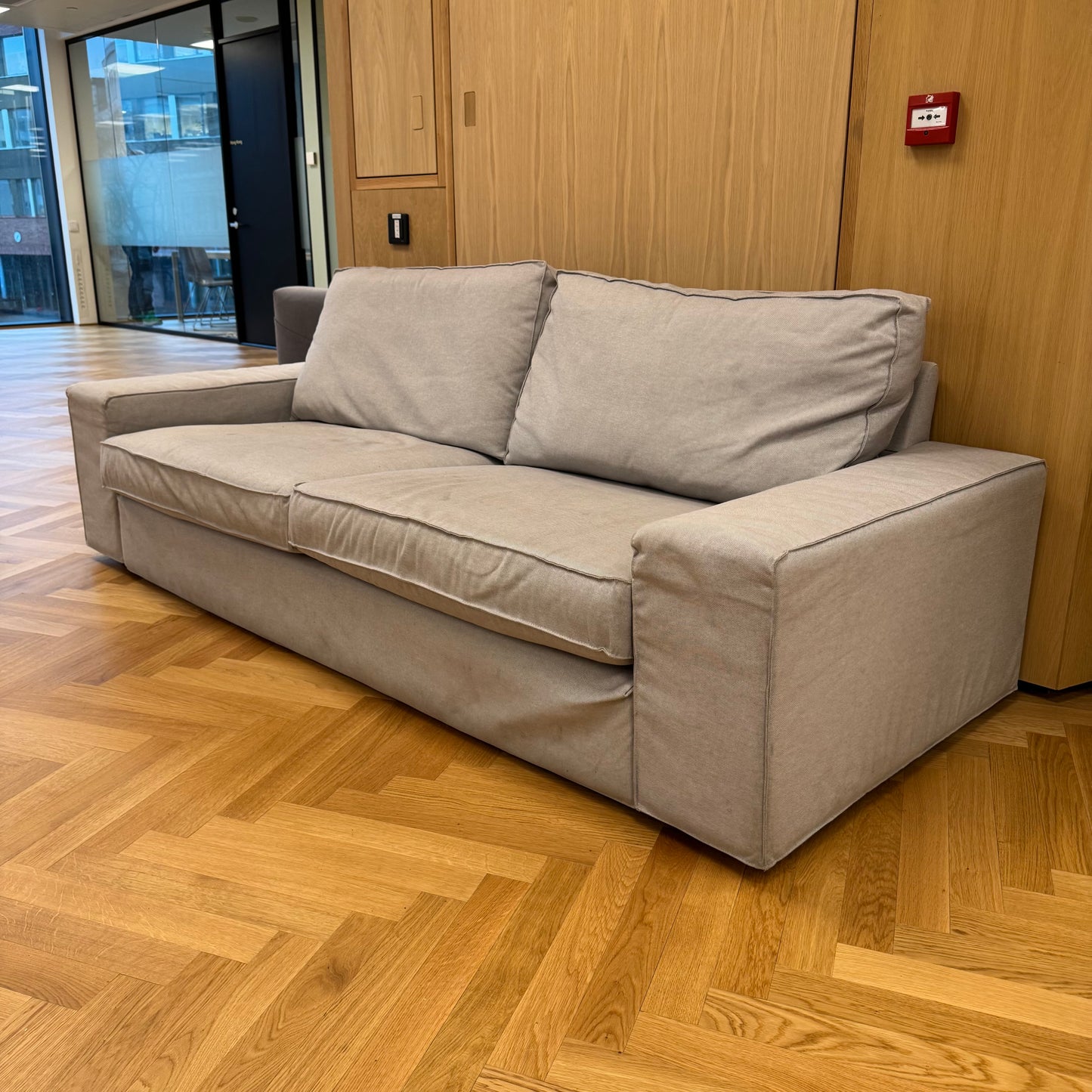 Kos deg i komfortable KIVIK sofa. Den er romslig, har lave armlener og pocketfjærer med skum som føyer seg etter kroppens konturer og inviterer deg og gjestene dine til mange timer med samtaler og avslapping.