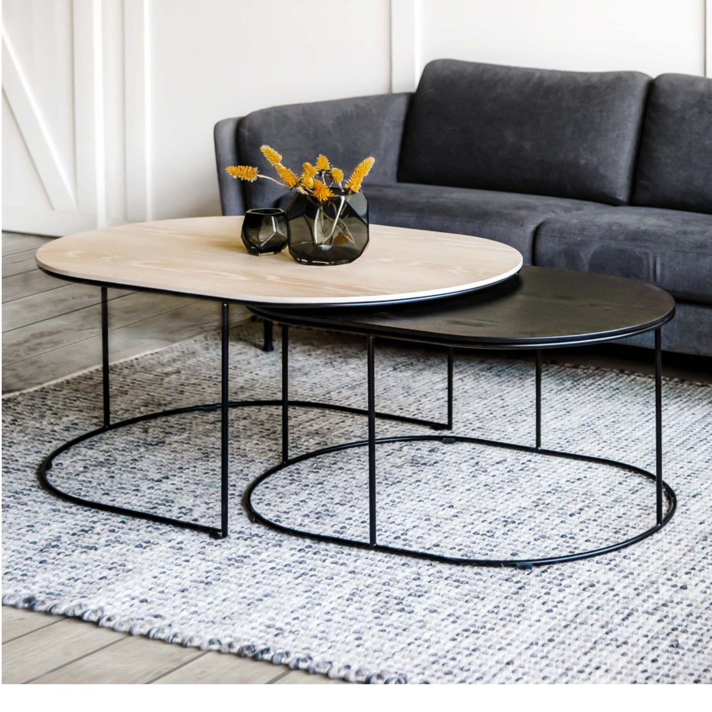 Bordet består av totalt 2 bord der bordene kan plasseres sammen og innunder hverandre.