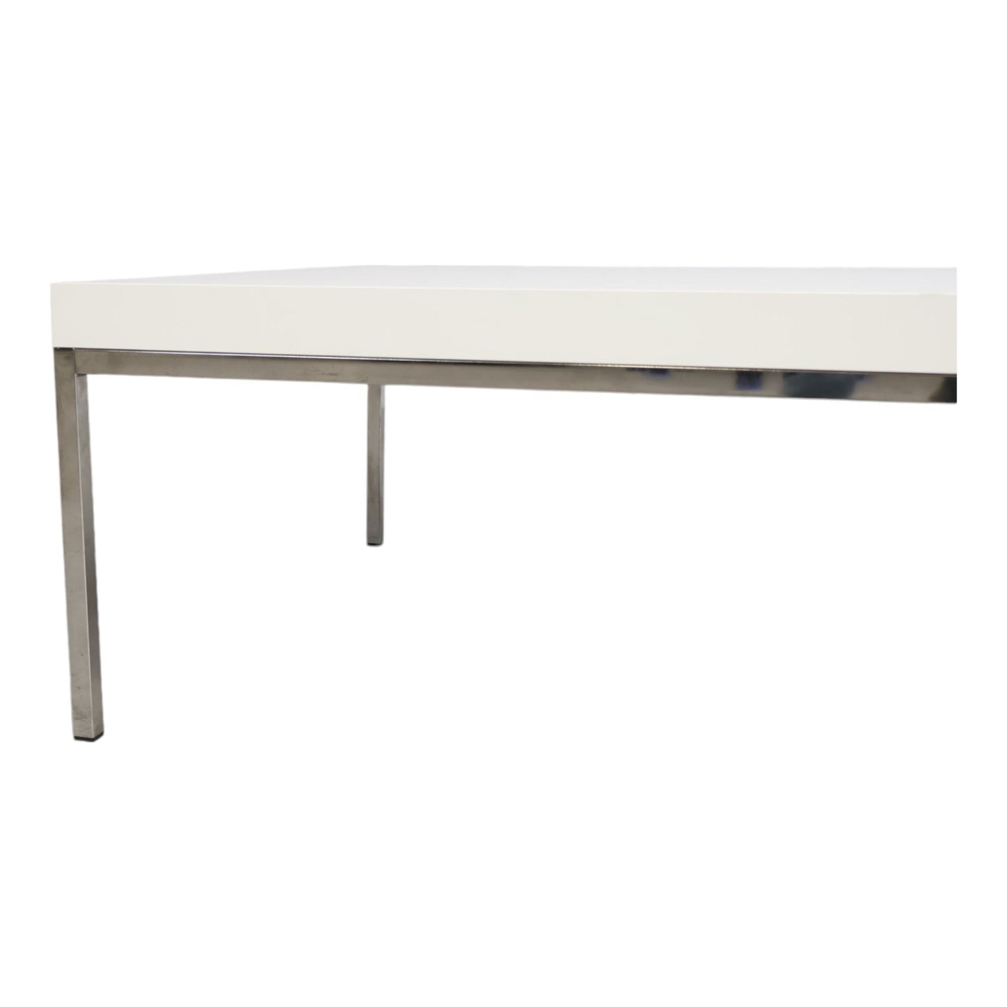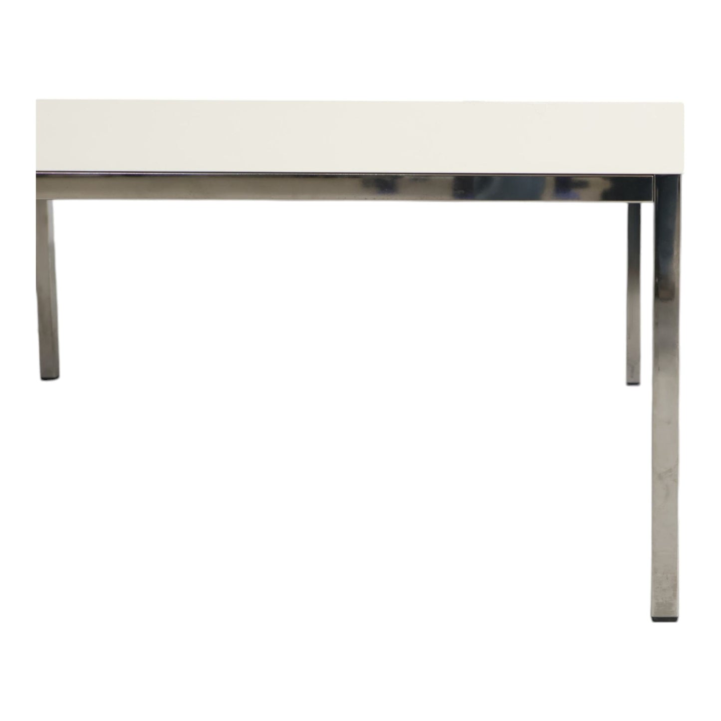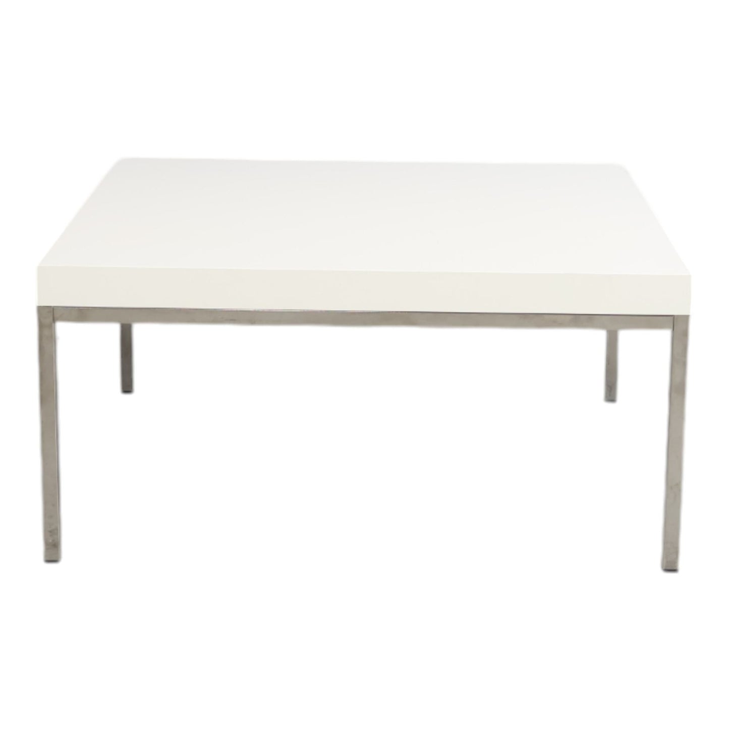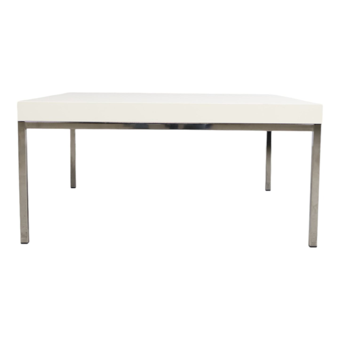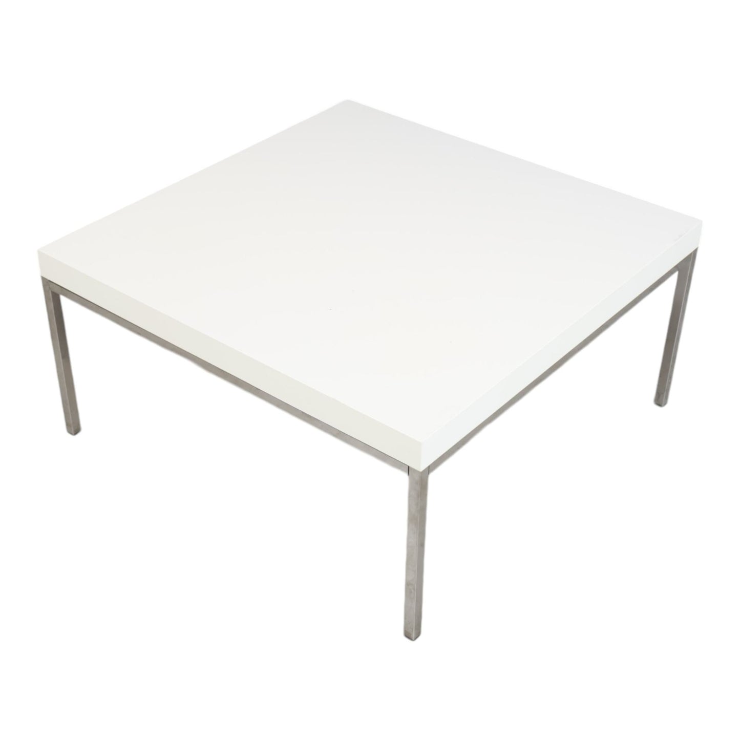 Stilrent og minimalistisk salongbord fra IKEA, modell Klubbo, i hvit utførelse. Bordet har en robust bordplate og solide ben i metall, perfekt for et moderne hjem.