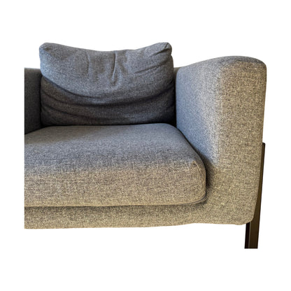 Stolen er i god stand med ett synlig bruksmerke på venstre side. Tekstilet er i en god tilstand uten større mangler eller slitasje.