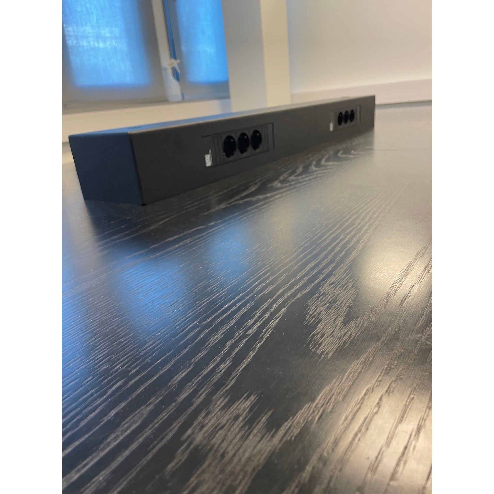 Dette stilige konferansebordet har en bordplate i sortbeiset eik med et moderne uttrykk. Bordet er designet for å gi et eksklusivt preg til møterom og kontorer, og passer perfekt til både formelle og uformelle sammenkomster. Den romslige bordflaten på 280x120 cm gir god plass til deltakere og utstyr, og det enkle, men elegante utførelsen skaper en profesjonell atmosfære.