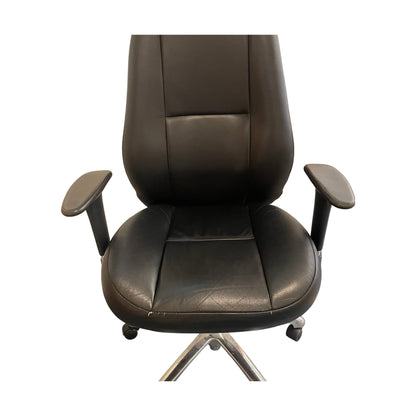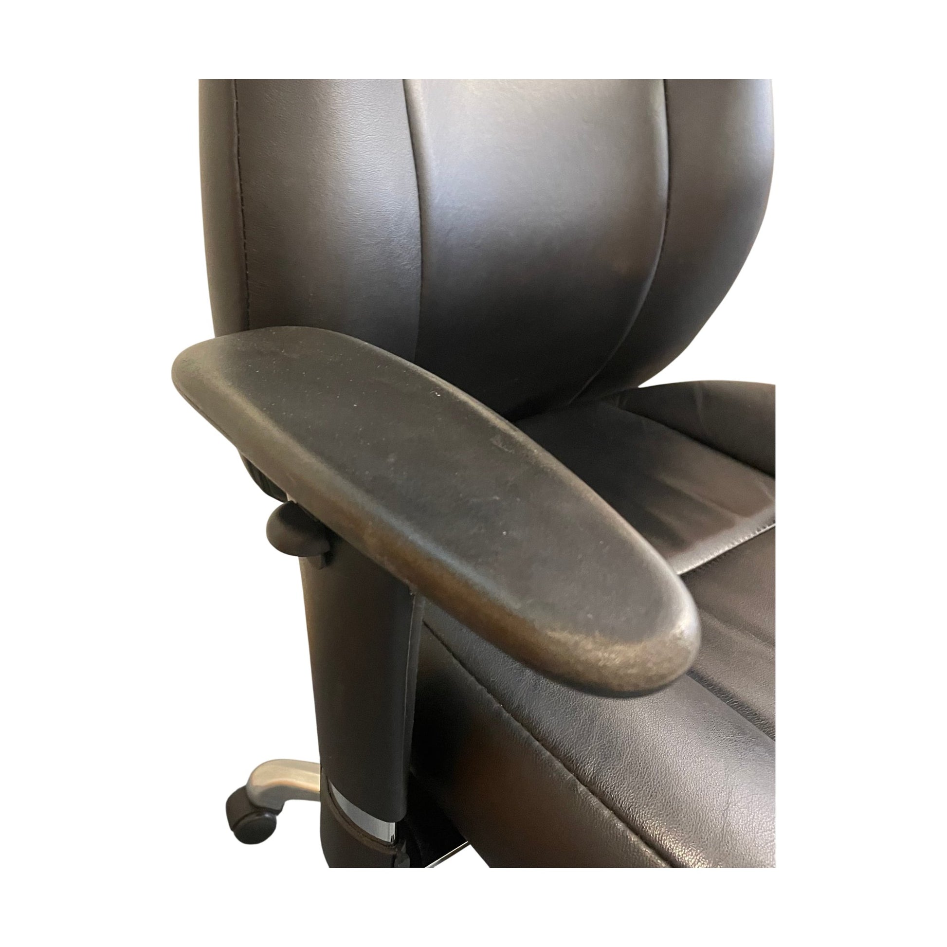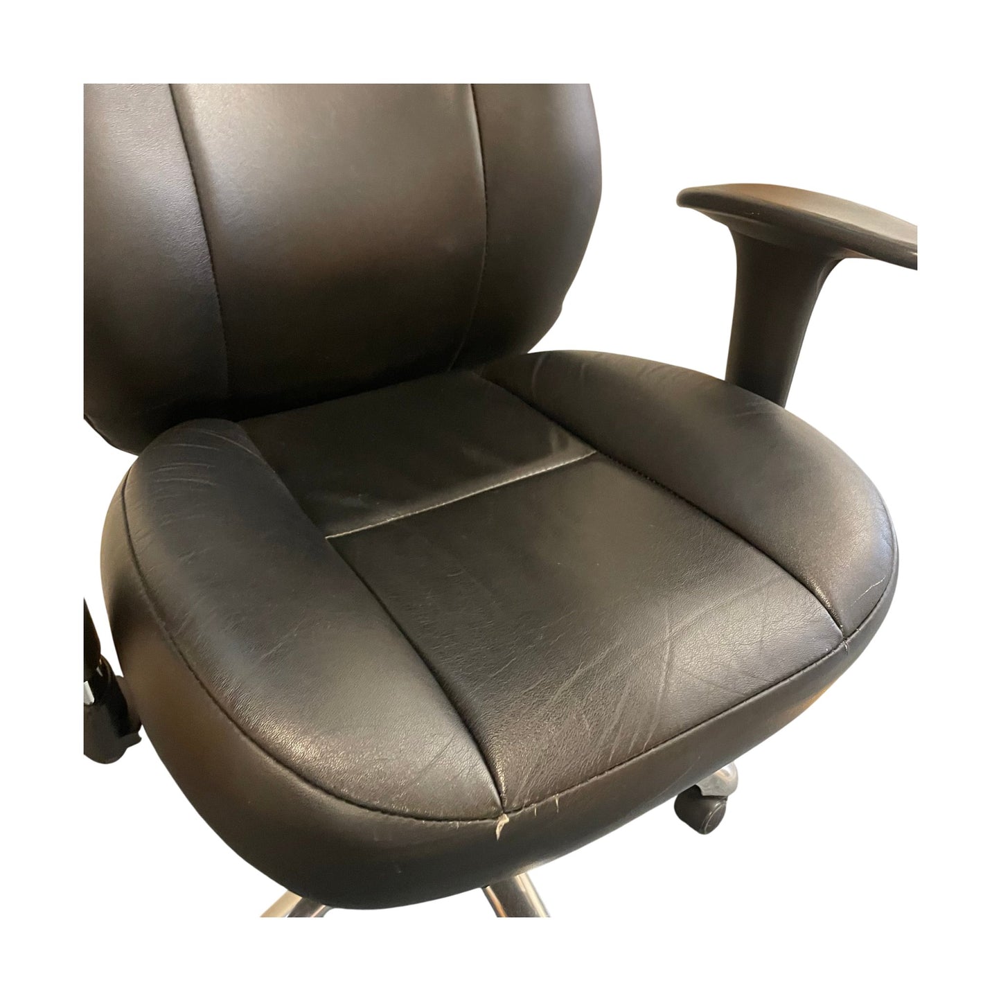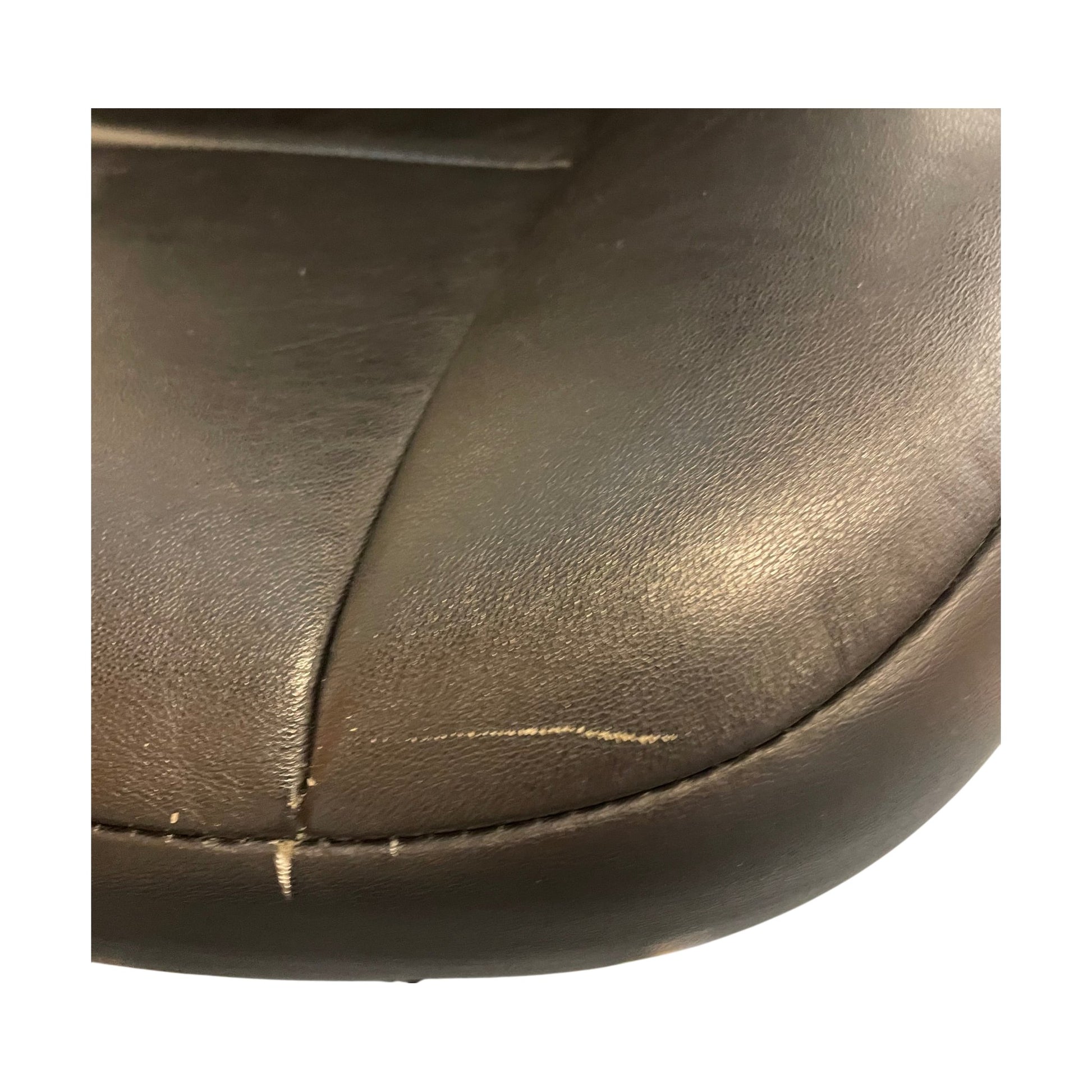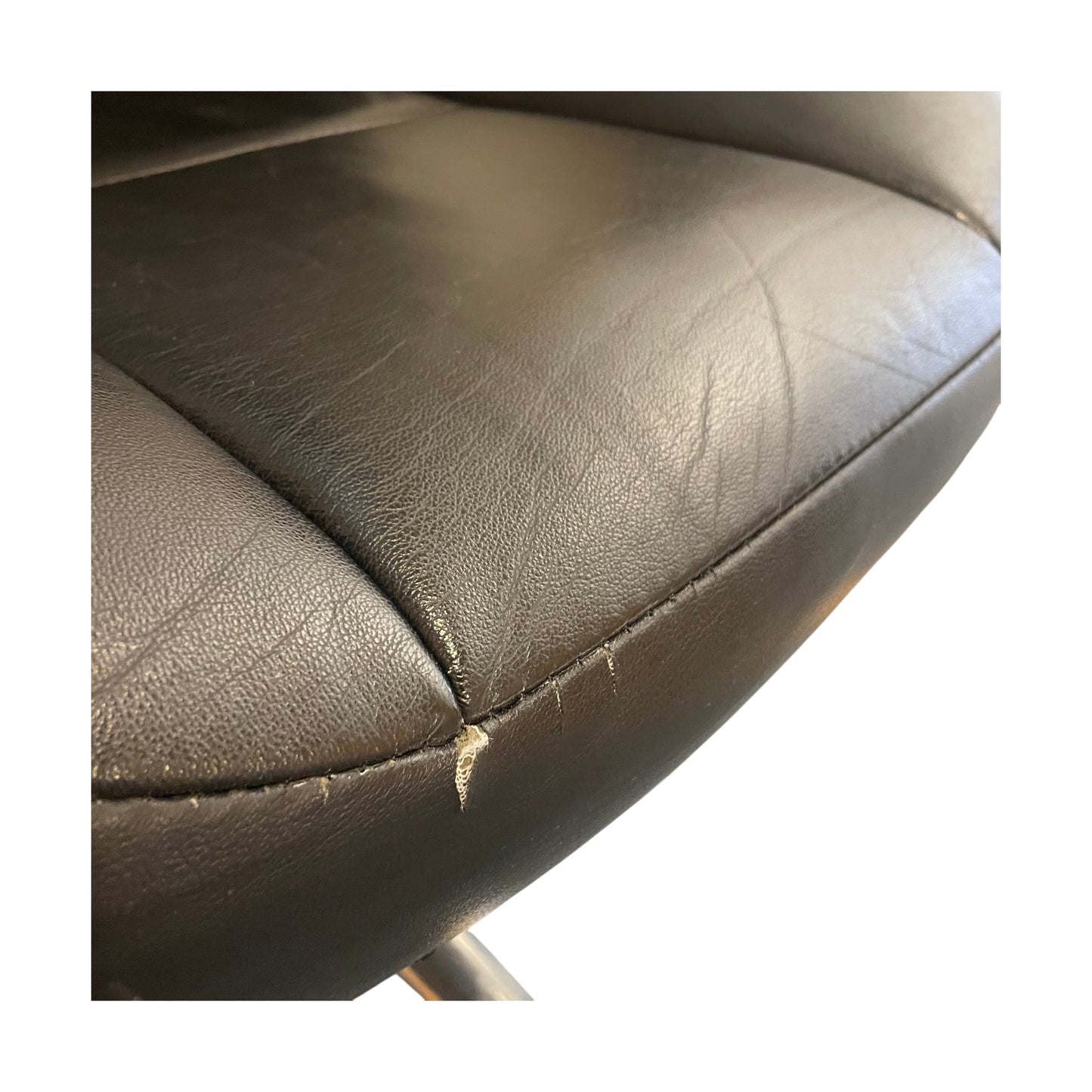 Stolen har en ripe i skinnet og noen små merker, men det påvirker ikke funksjonaliteten. Den er fortsatt en flott tilføying til kontormiljøet ditt.