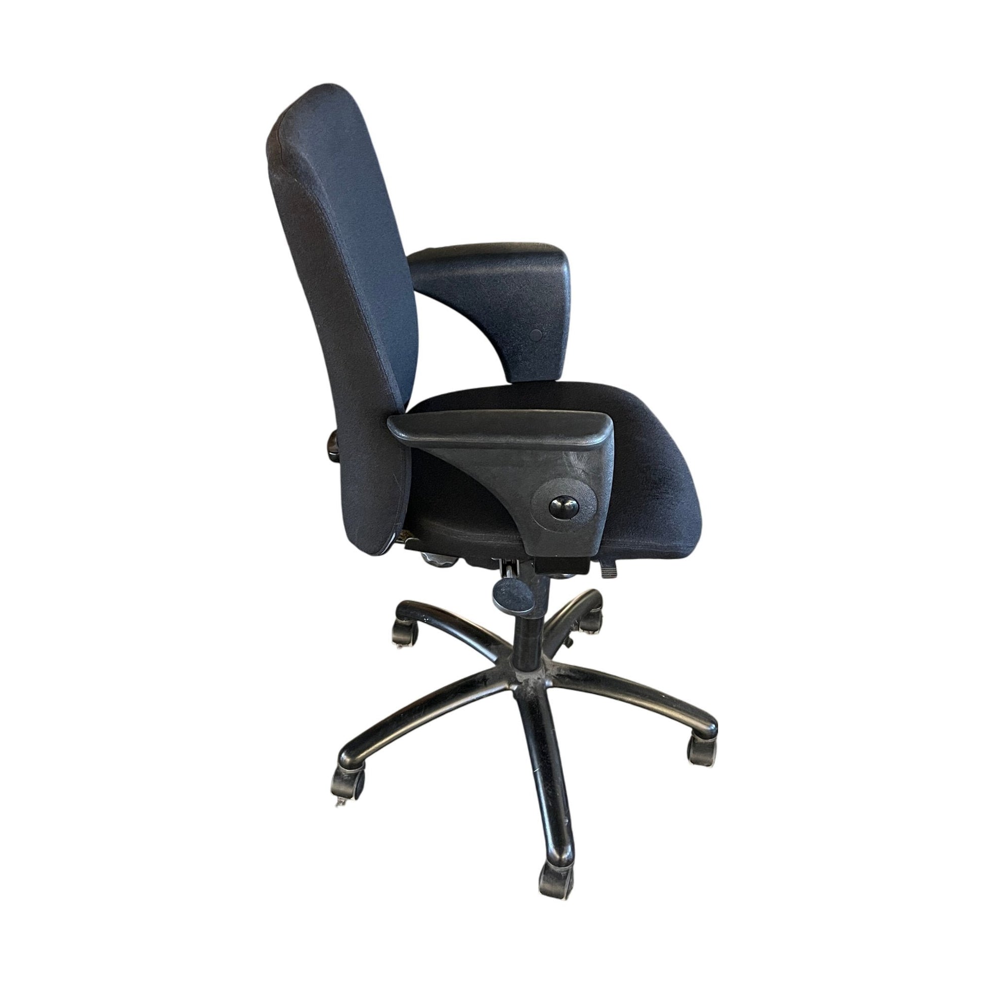 Nyomtrukket kontorstol fra SAVO, designet for komfort og stil. Denne Apollo-modellen i svart stoff har en moderne estetikk og passer godt inn i ethvert kontormiljø.