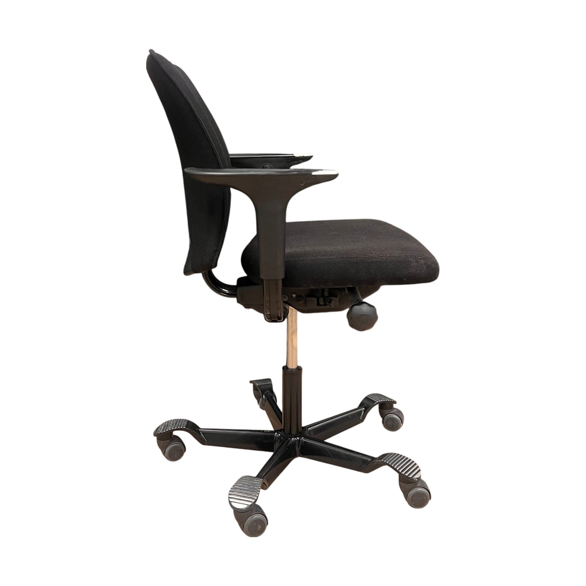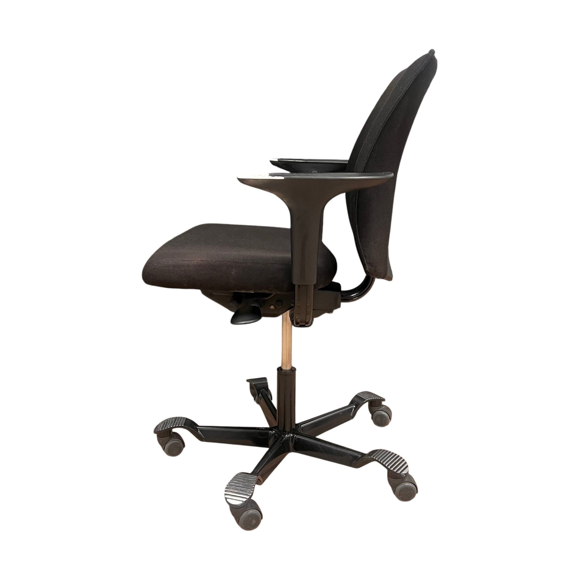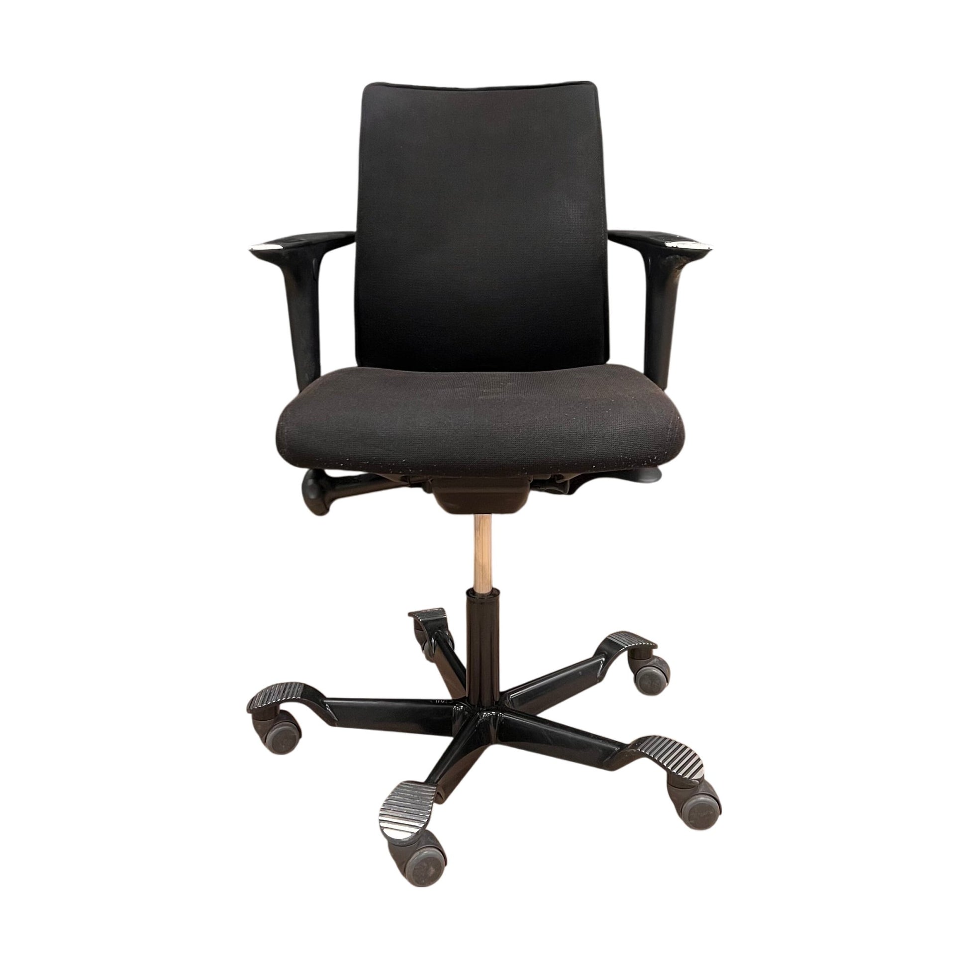 Kontorstol fra HÅG med flott sort design. Stolen er gjennomgående i god tilstand, med unntak av synlig slitasje på armlenene, og er perfekt for hjemmekontoret eller arbeidsplassen dersom du ønsker en kvalitetsstol til lav pris.