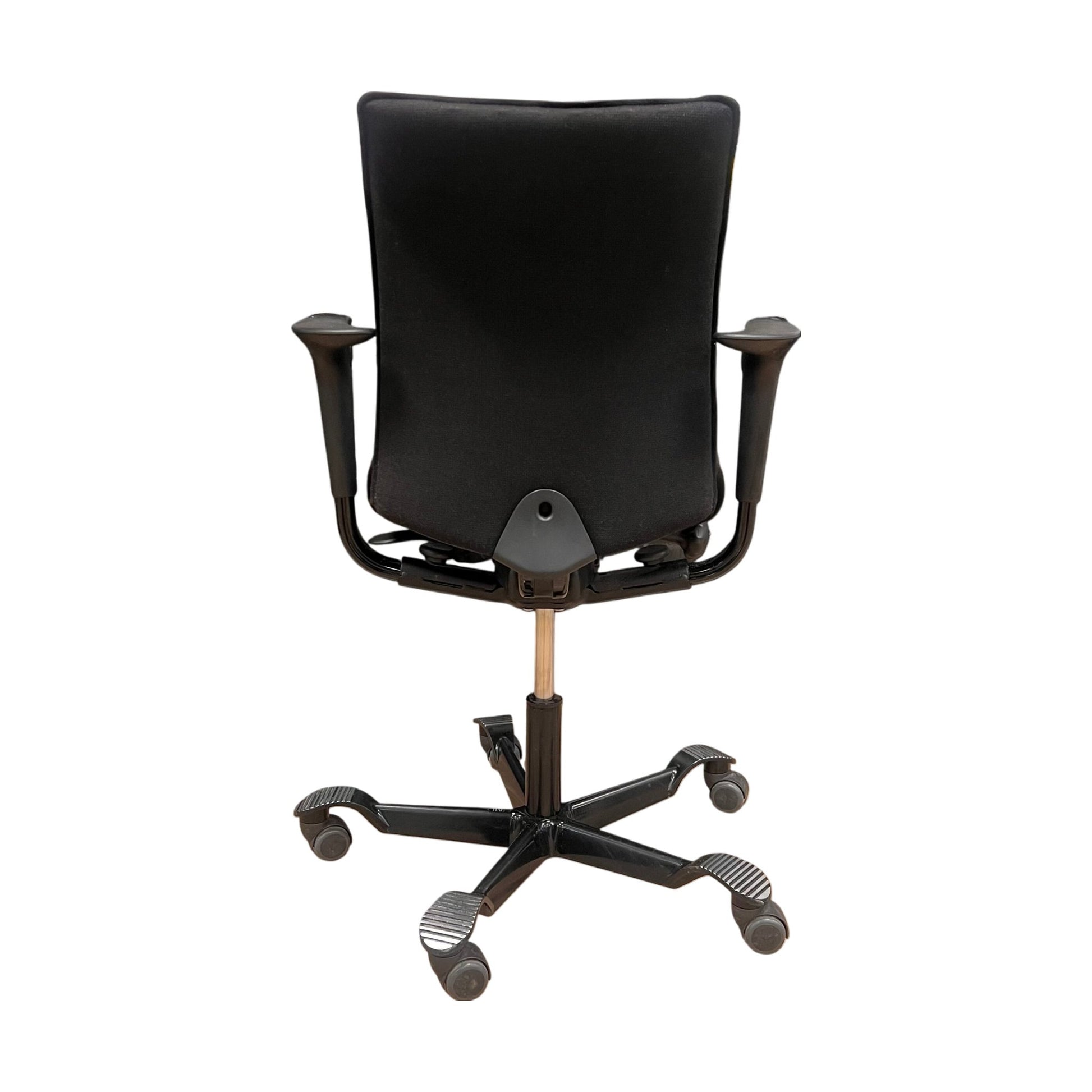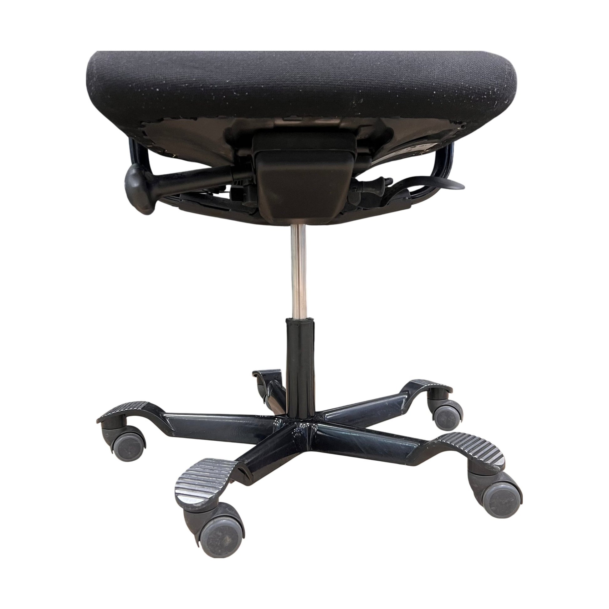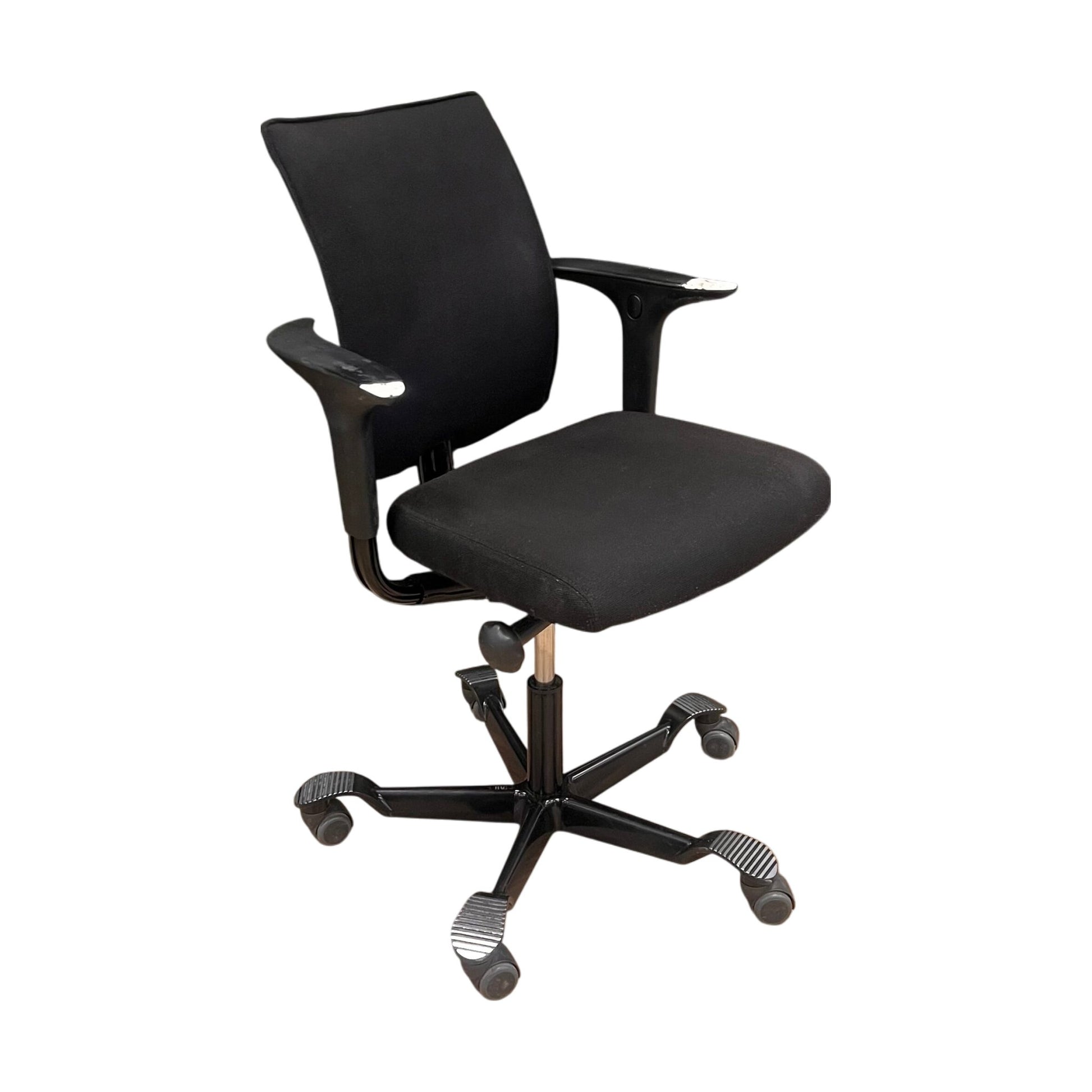 Kontorstol fra HÅG med flott sort design. Stolen er gjennomgående i god tilstand, med unntak av synlig slitasje på armlenene, og er perfekt for hjemmekontoret eller arbeidsplassen dersom du ønsker en kvalitetsstol til lav pris.