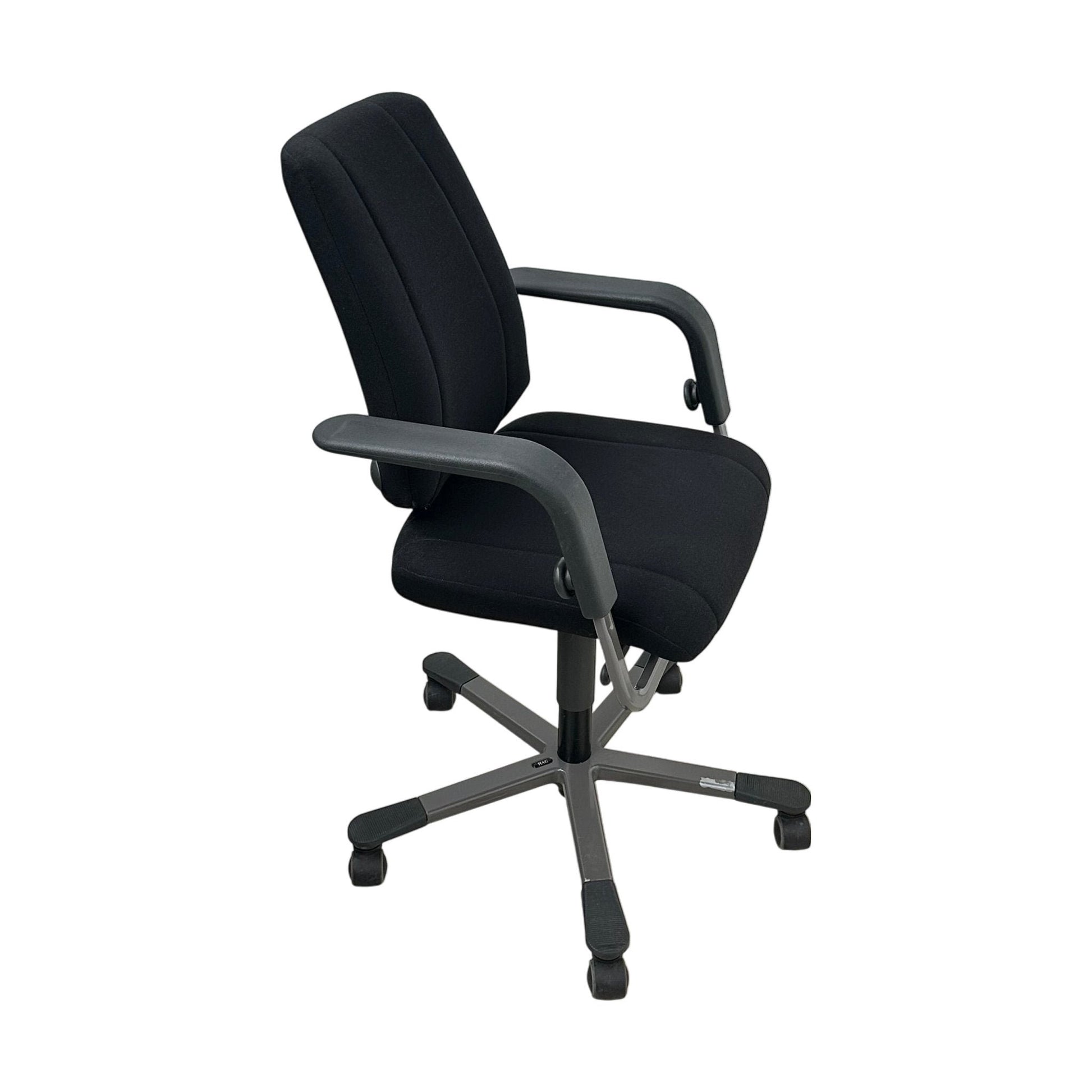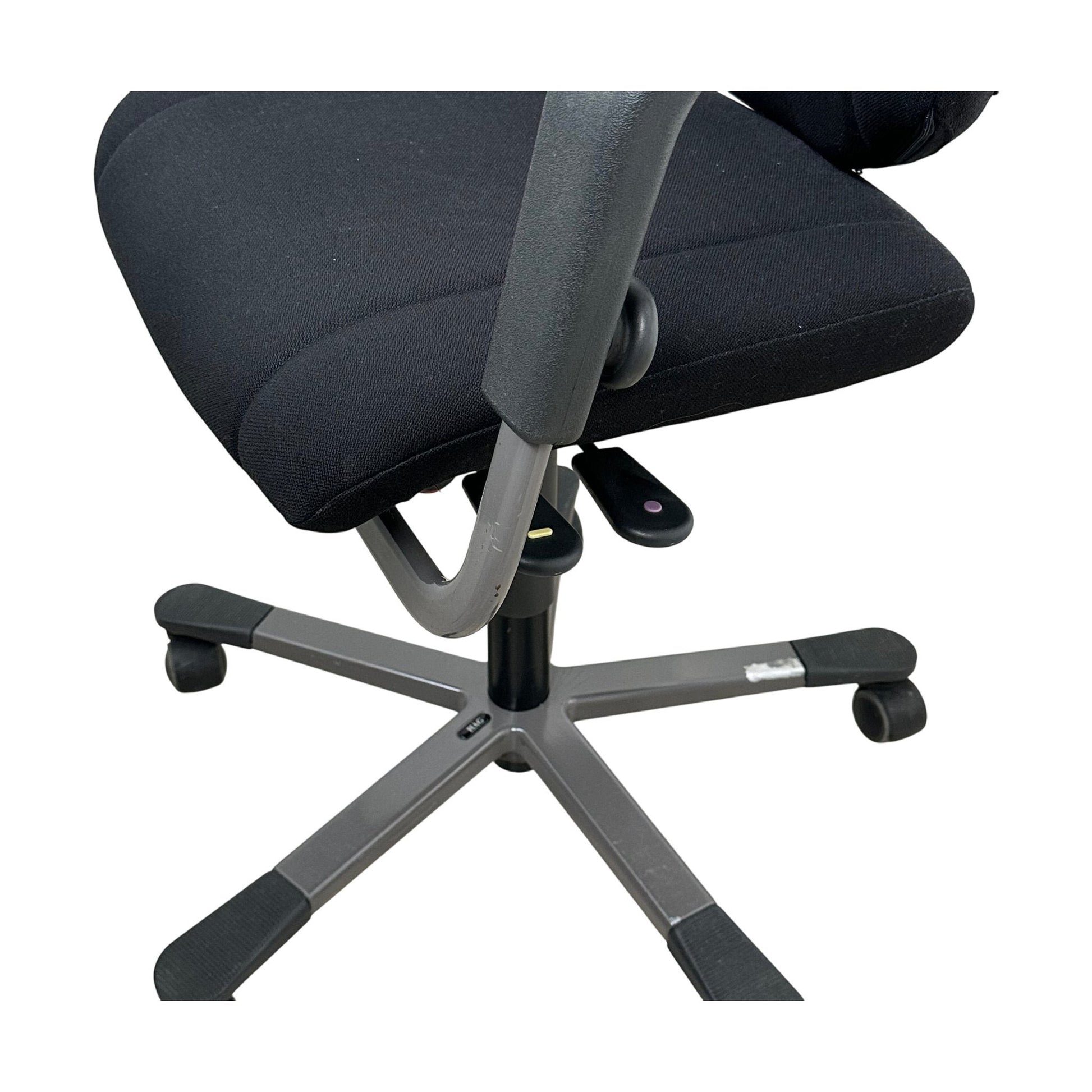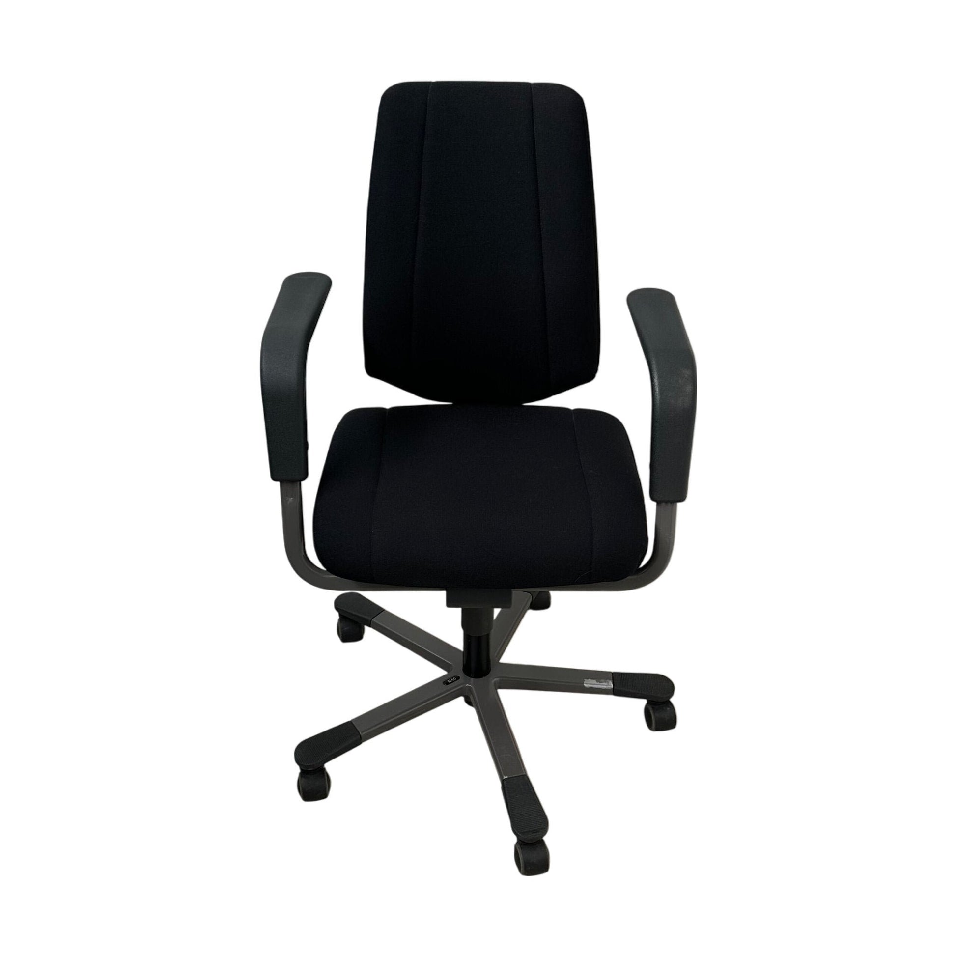 Ergonomisk kontorstol fra HÅG i modellen Credo, designet for komfort og støtte i arbeidsmiljøet. Den har en stilren, sort tekstiloverflate som gir et tidløst uttrykk, perfekt for ethvert kontor.