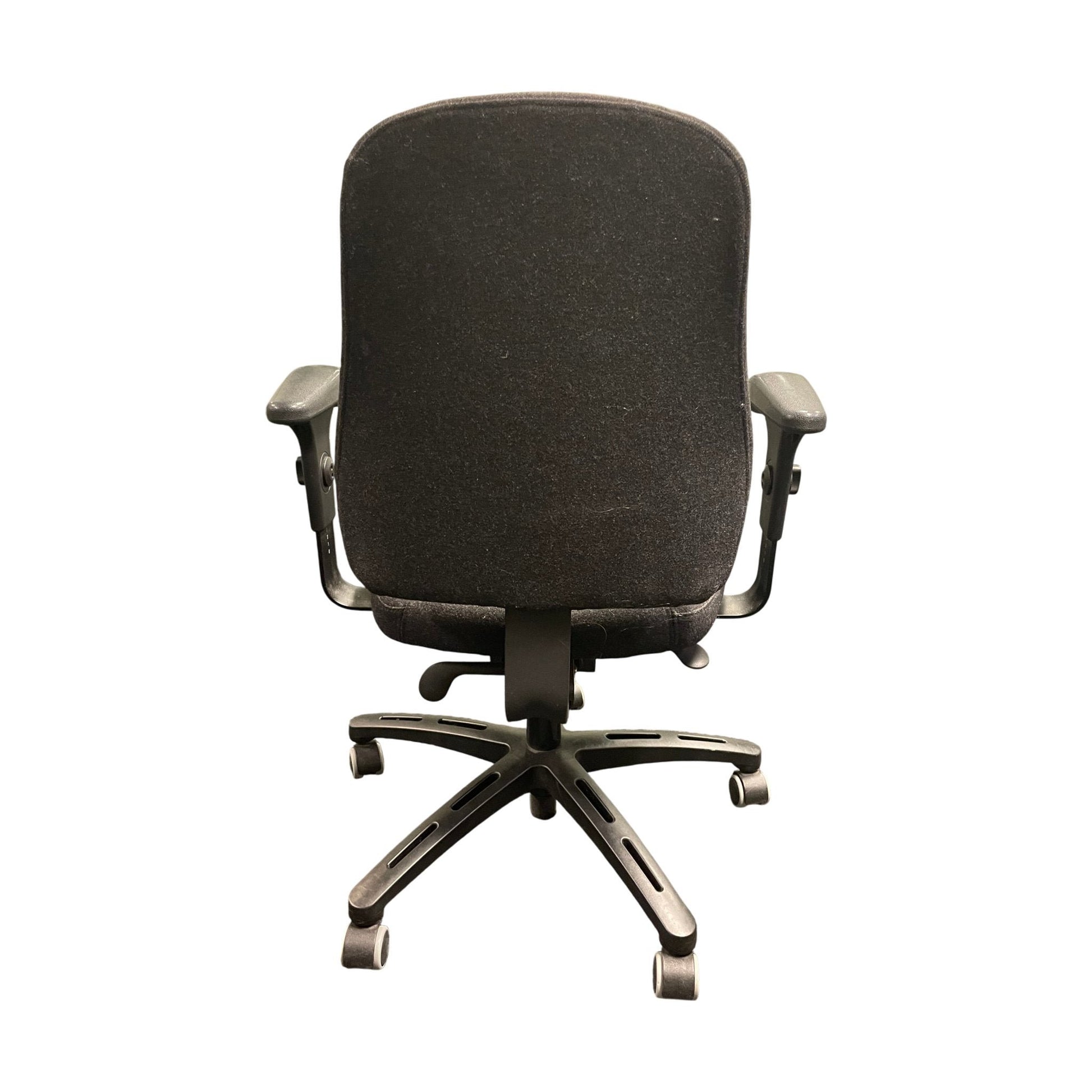 Stolen er i godt brukt stand med normale bruksmerker. Det er mindre spor på setet og armlener, men helhetsinntrykket er fortsatt positivt. Alle justeringsfunksjoner fungerer som de skal.