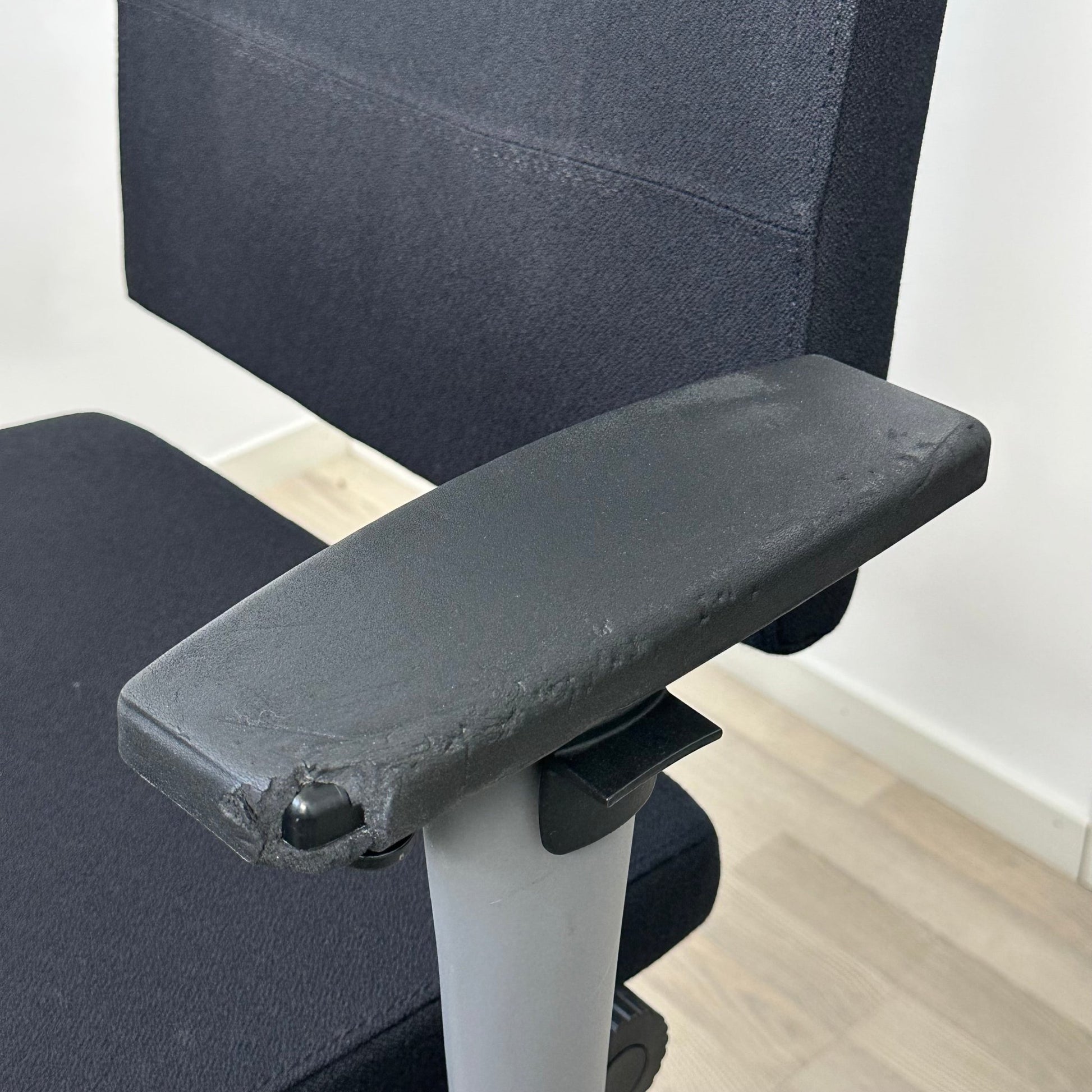 Stolen er i god tilstand med minimale bruksmerker. Alle justeringsmekanismer fungerer som de skal, og stoffet er fri for flekker eller slitasje, noe som gir et pent helhetsinntrykk.