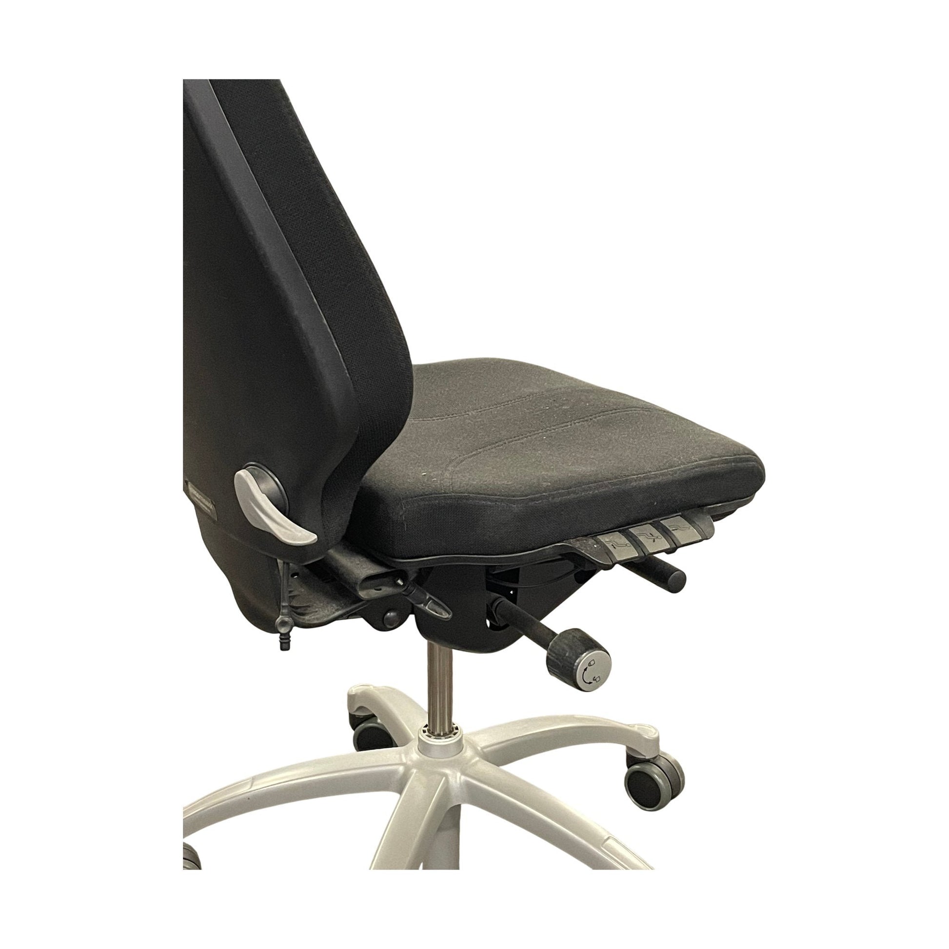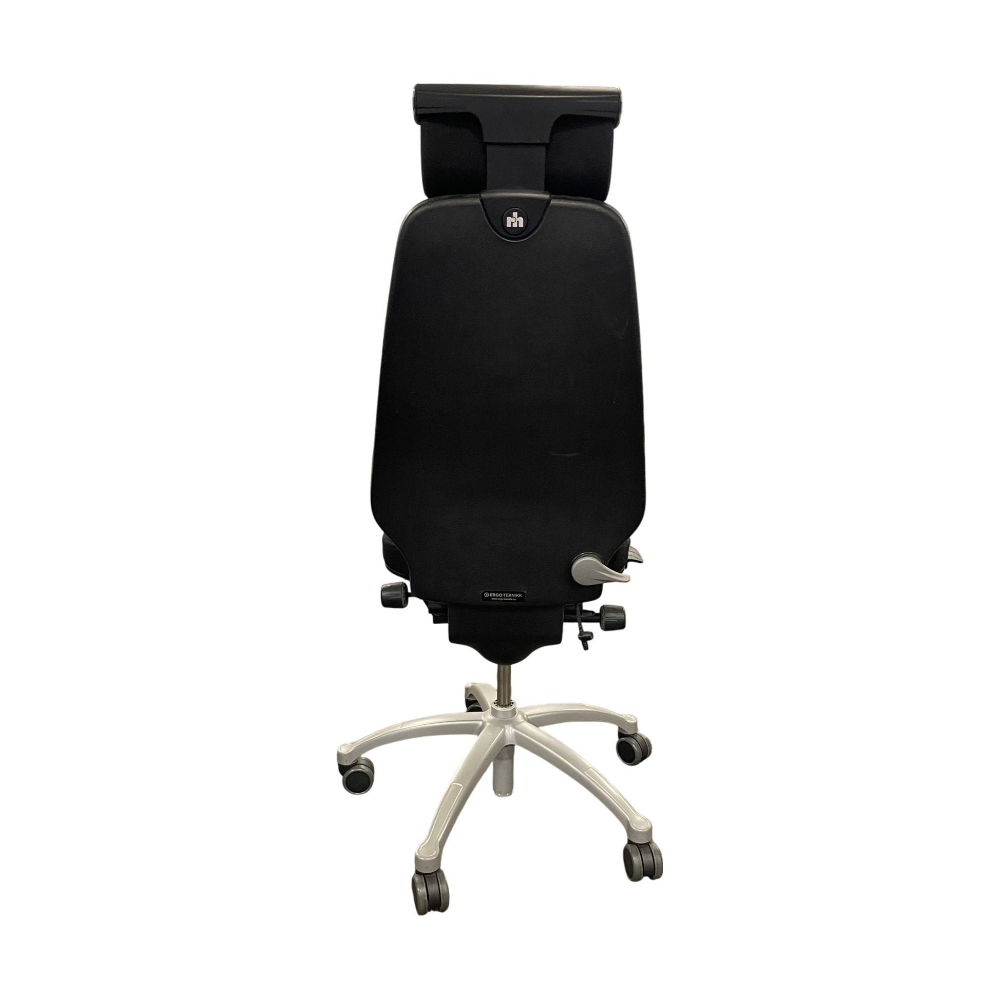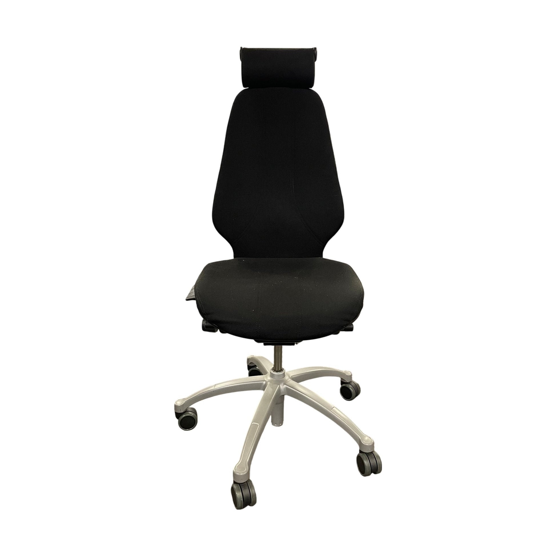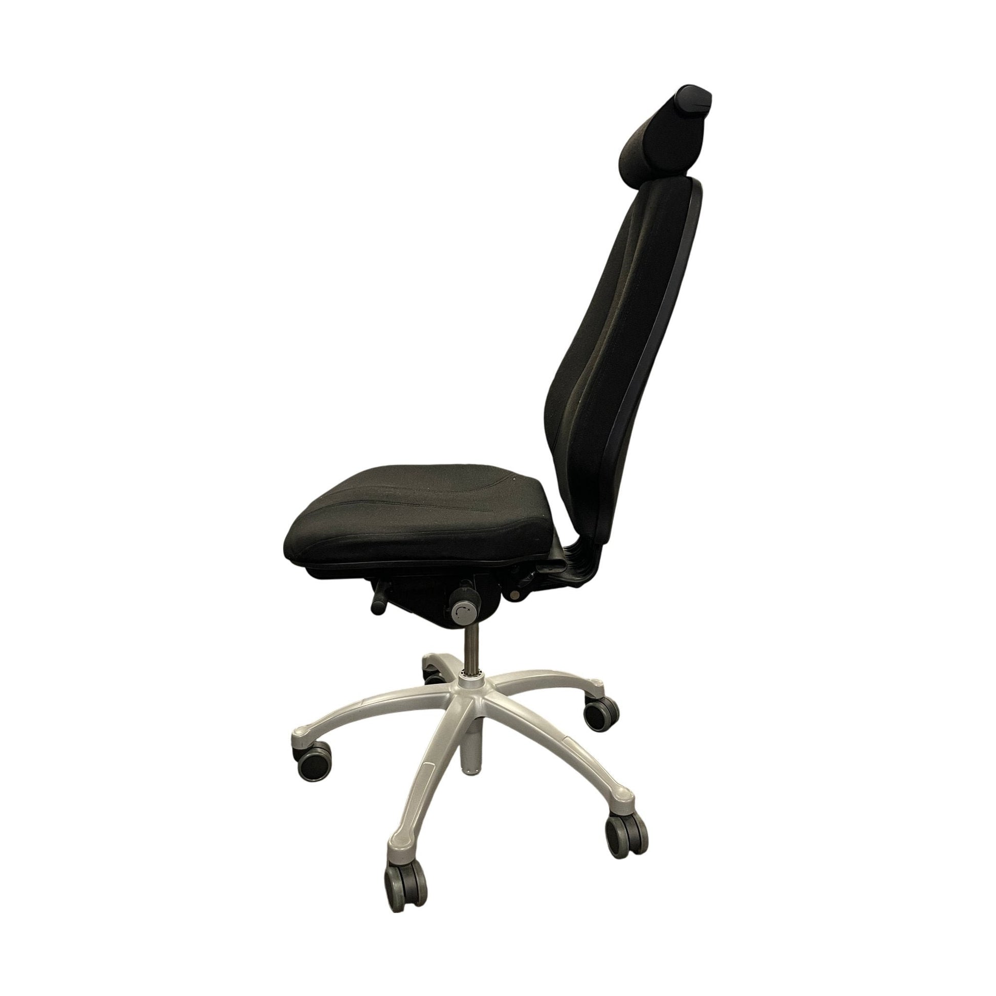 Ergonomisk kontorstol fra RH Logic, modell 400, med et minimalistisk og stilrent design. Denne stolen er trukket i svart tekstil og er utstyrt med nakkestøtte, noe som gir ekstra komfort og støtte i arbeidshverdagen.