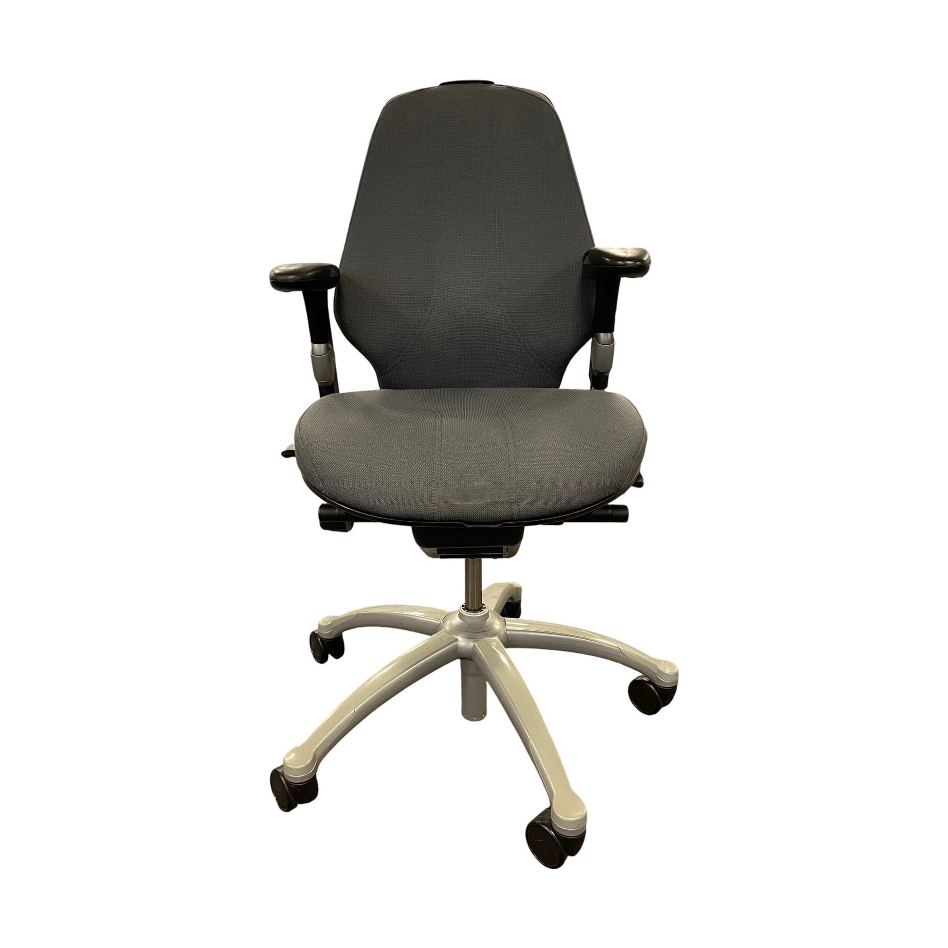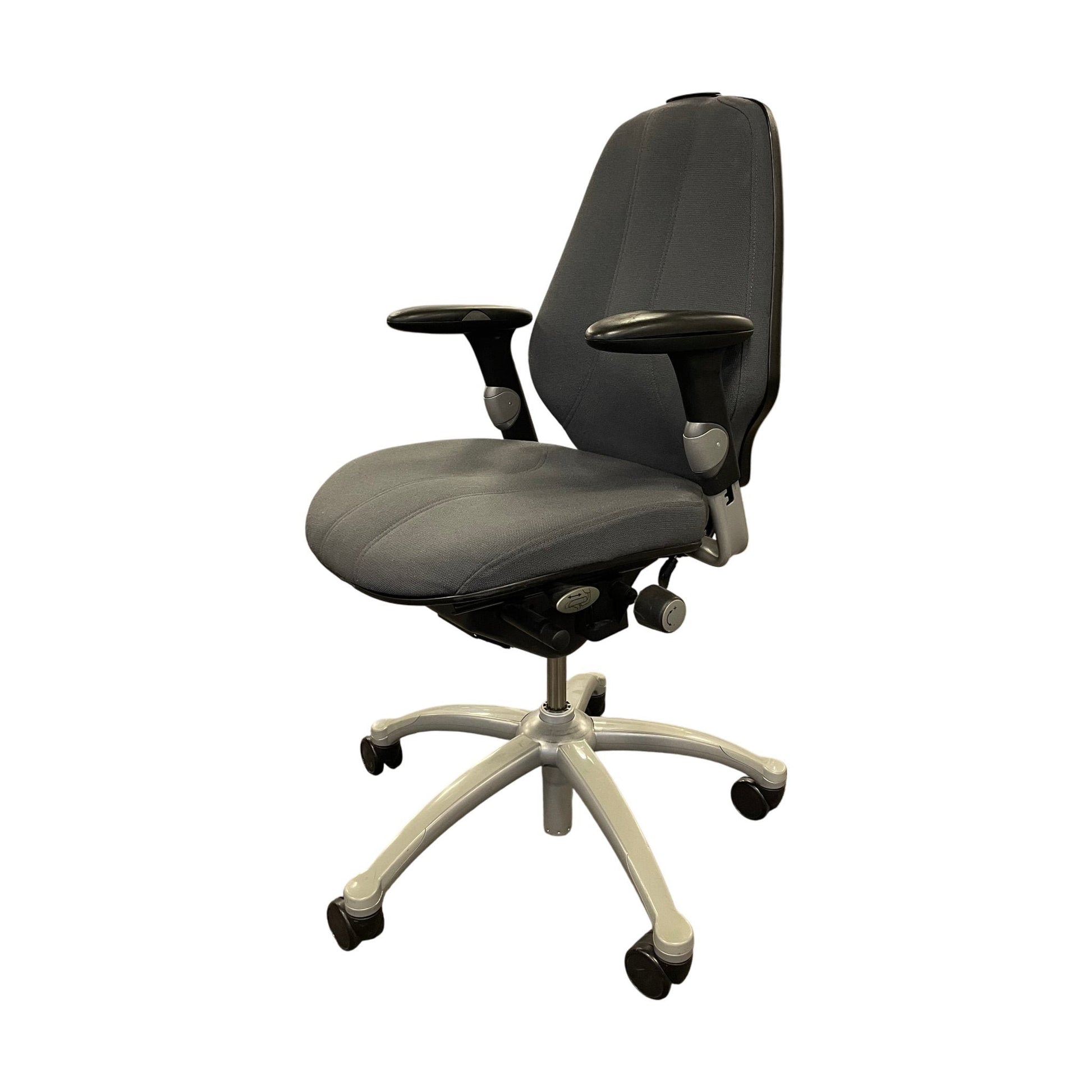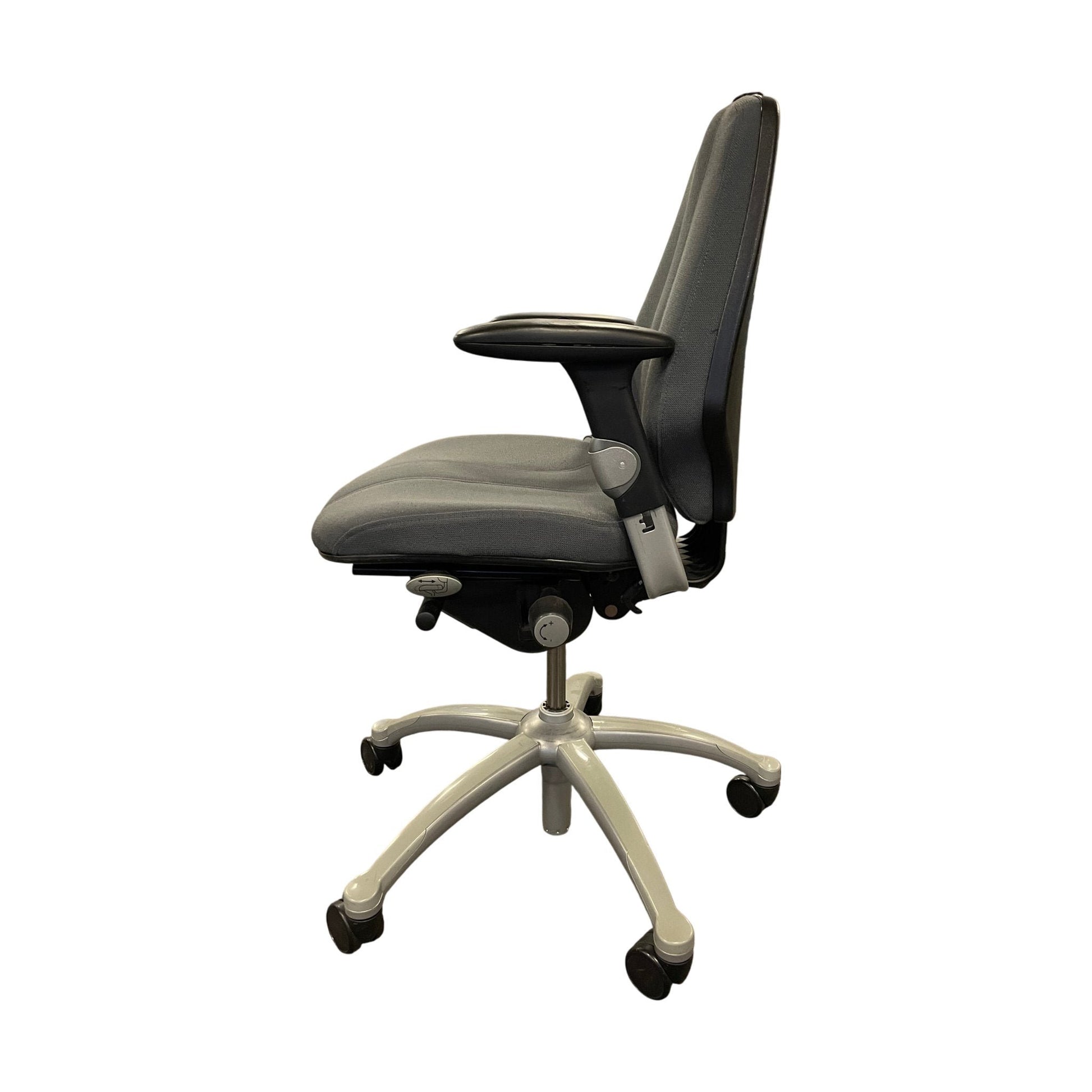 Ergonomisk kontorstol fra RH Logic, modell 300, designet med fokus på komfort og støtte. Stolen har et stilrent grått stofftrekk og en moderne design som passer inn i ethvert kontormiljø.