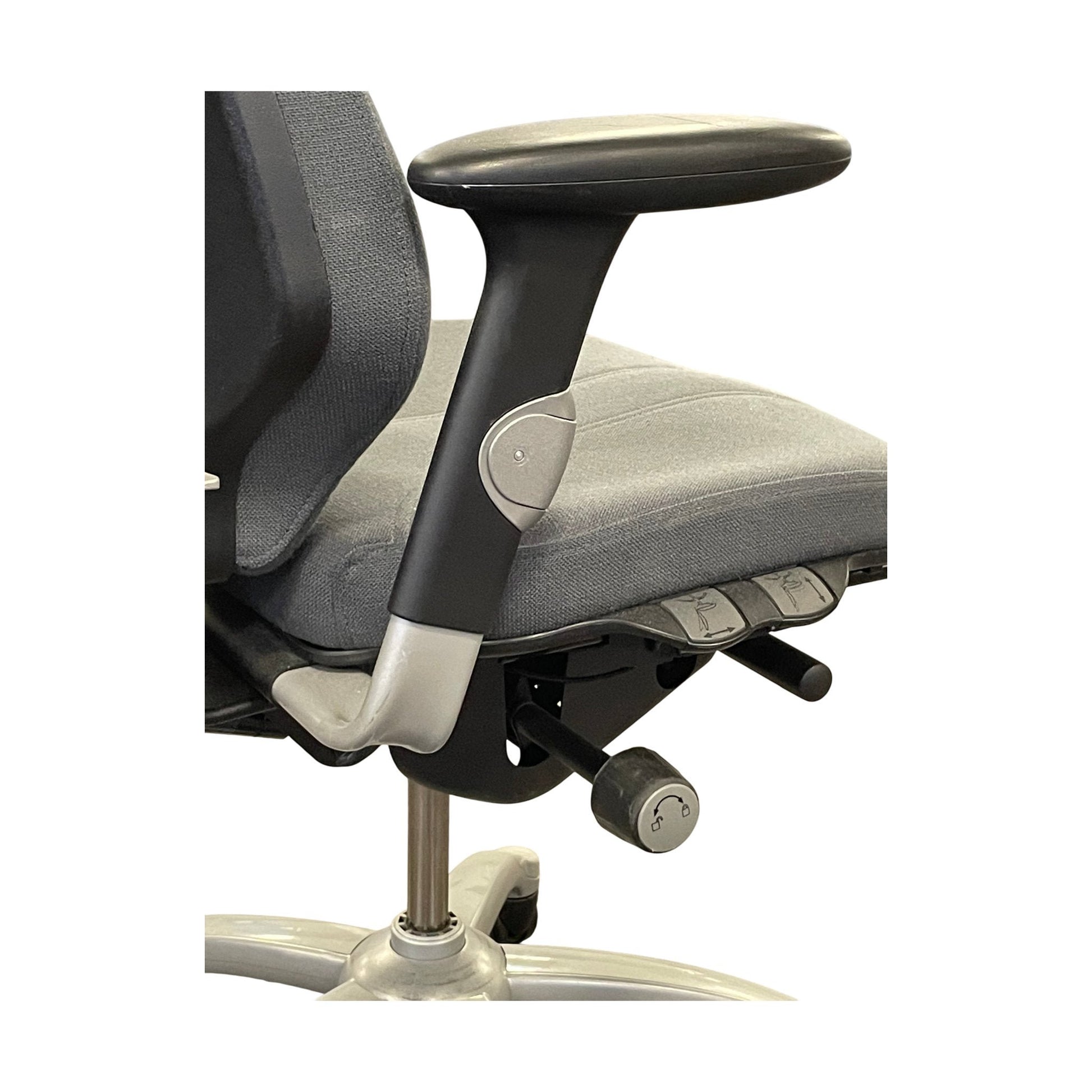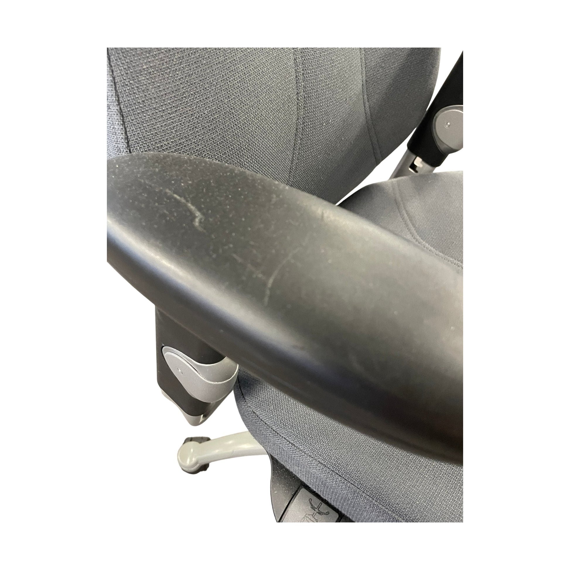 Stolen er i godt brukt stand. Den har noen tydelige bruksmerker på armlener og rygg, men er generelt godt bevart. Alle justeringsfunksjoner fungerer som de skal.
