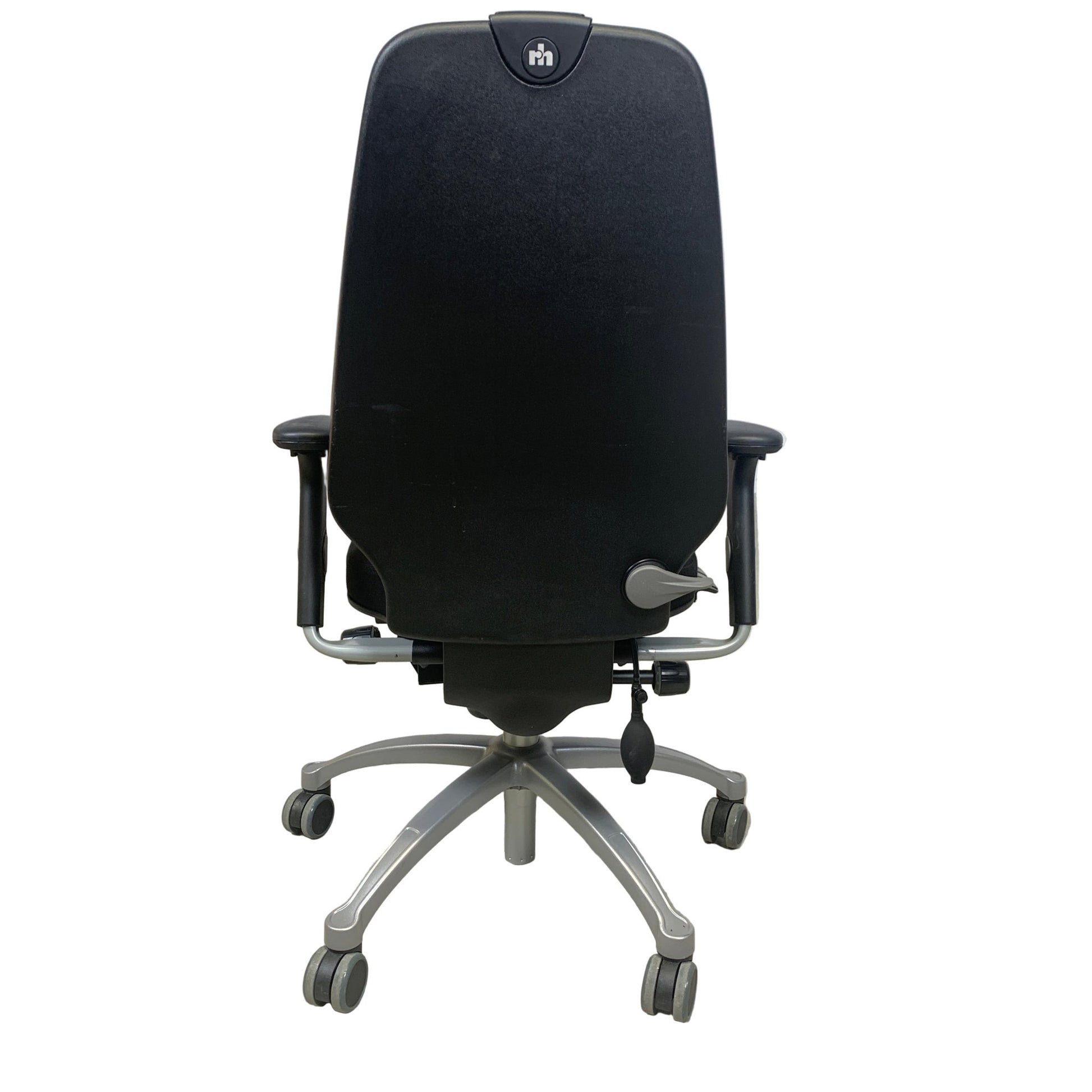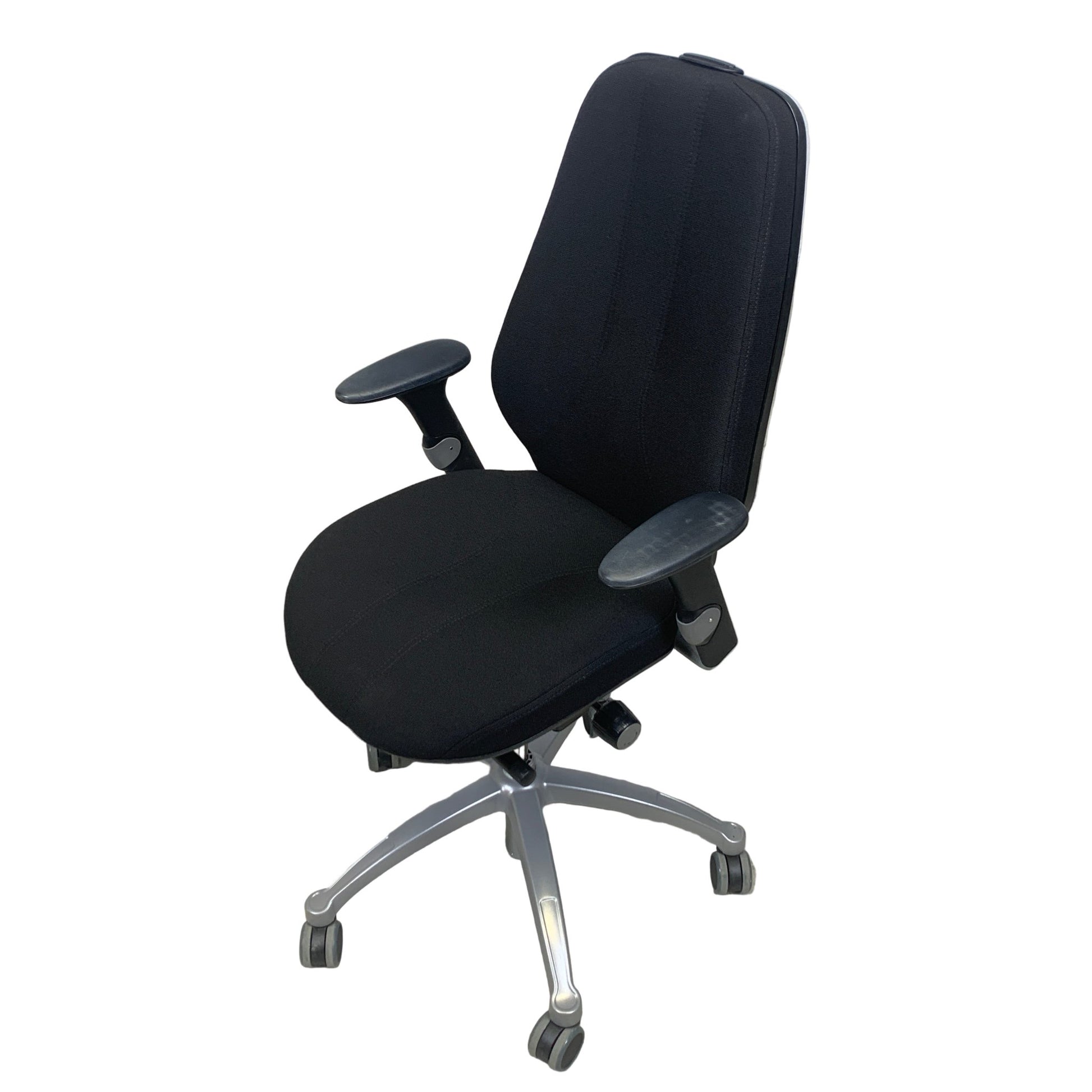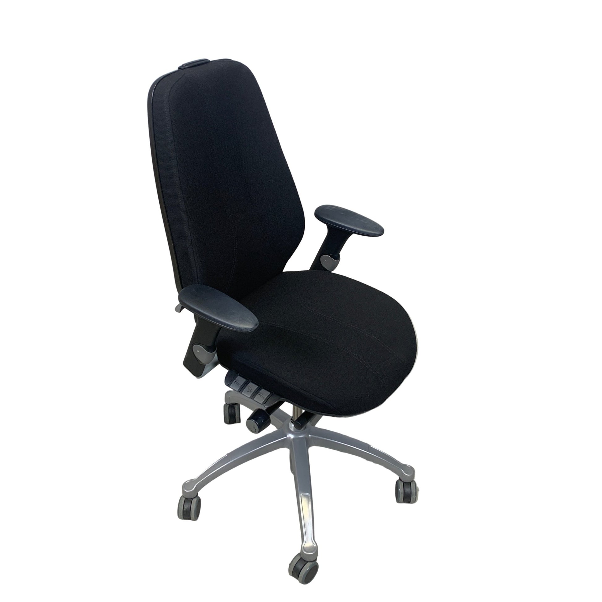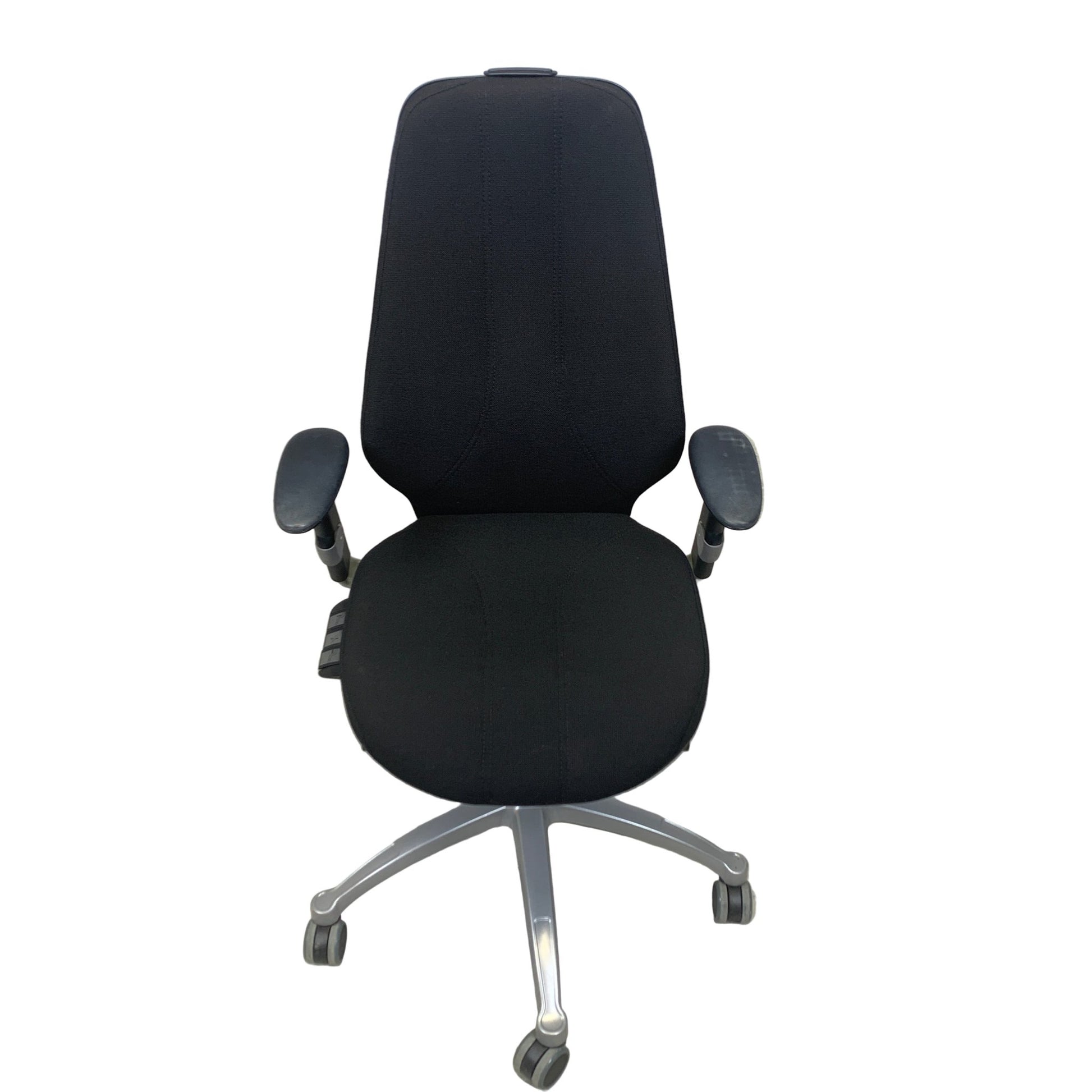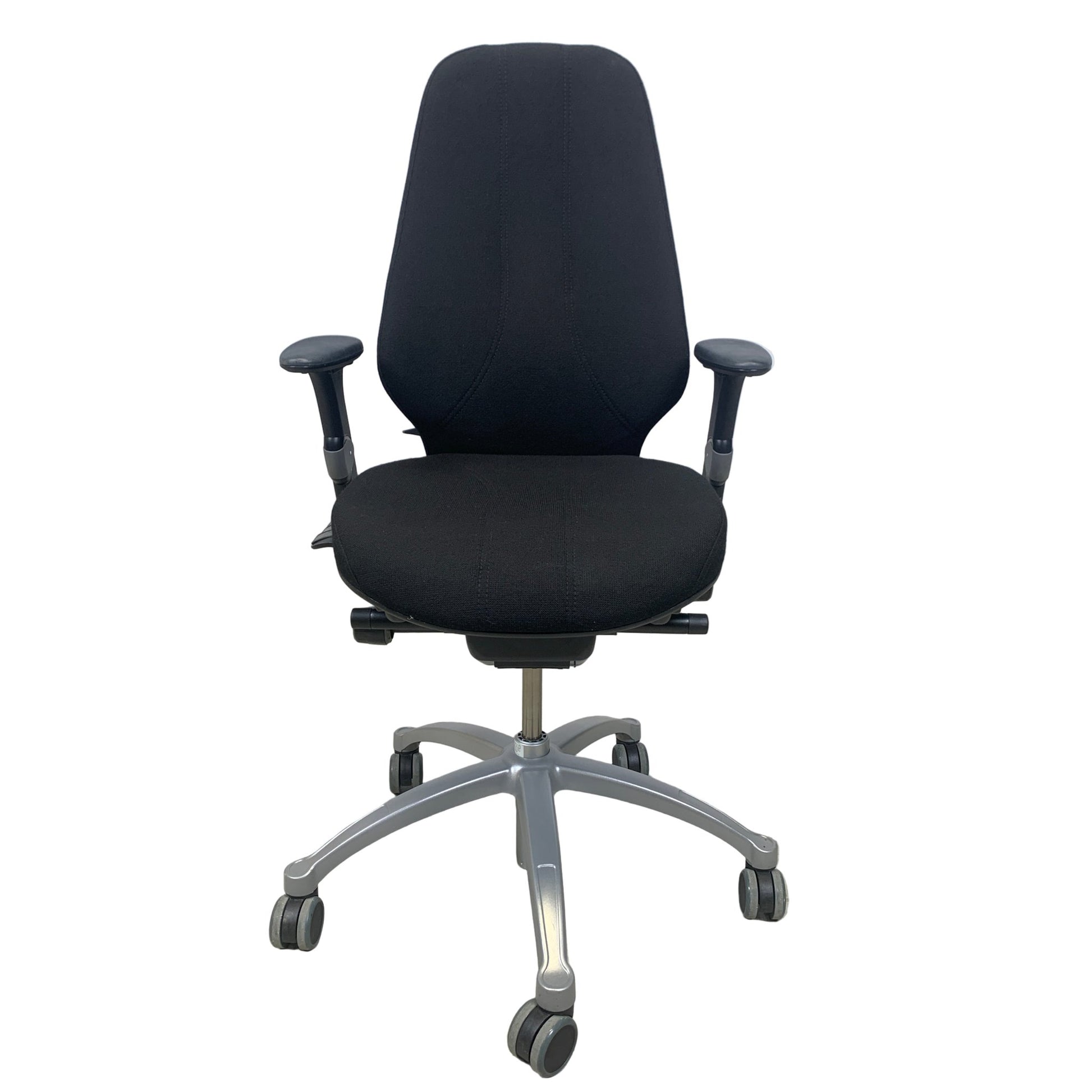 Kontorstolen fra RH Logic er designet for langvarig komfort og kvalitetsmaterialer. Denne modellen 400 er preget av sine ergonomiske linjer og en elegant, svart ullkledde overflate som gir et profesjonelt, stilrent uttrykk i ethvert kontormiljø.