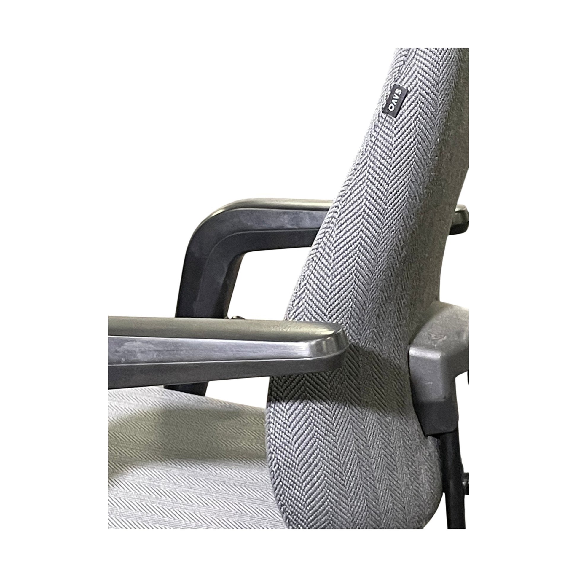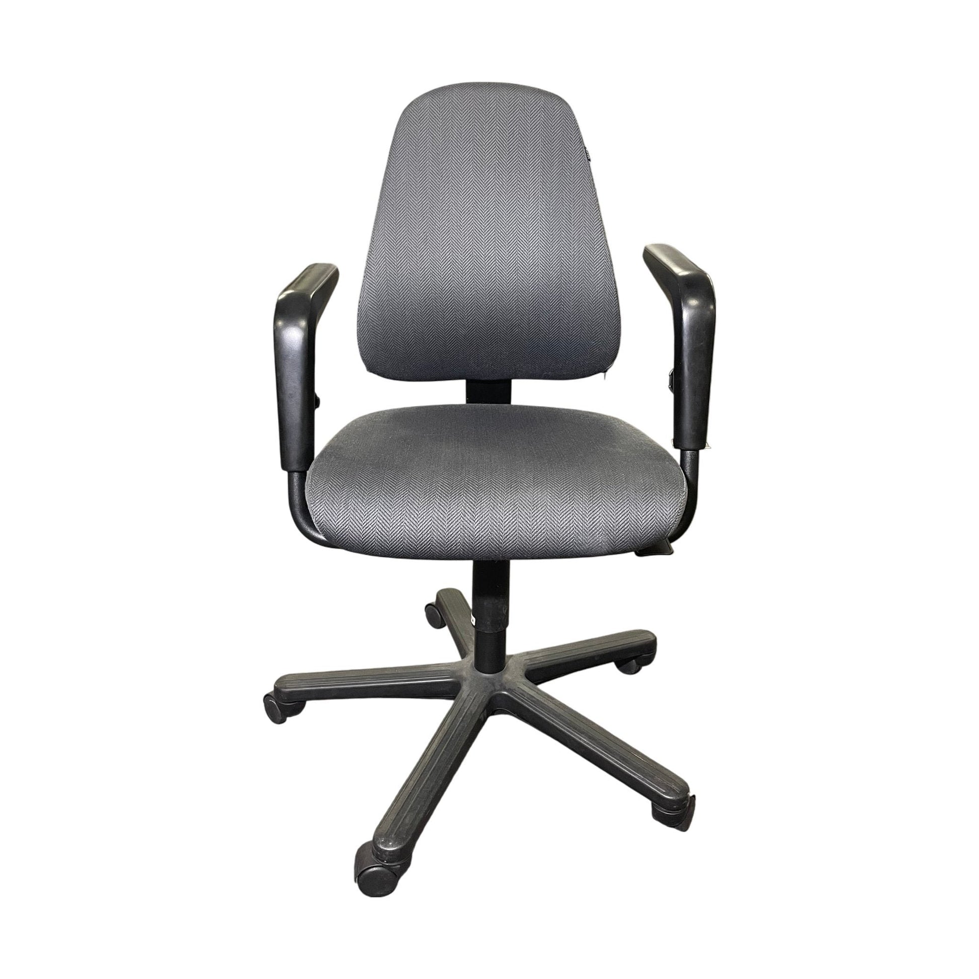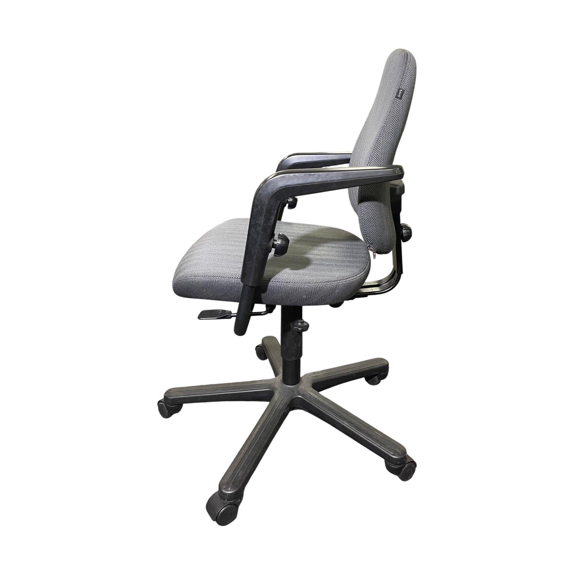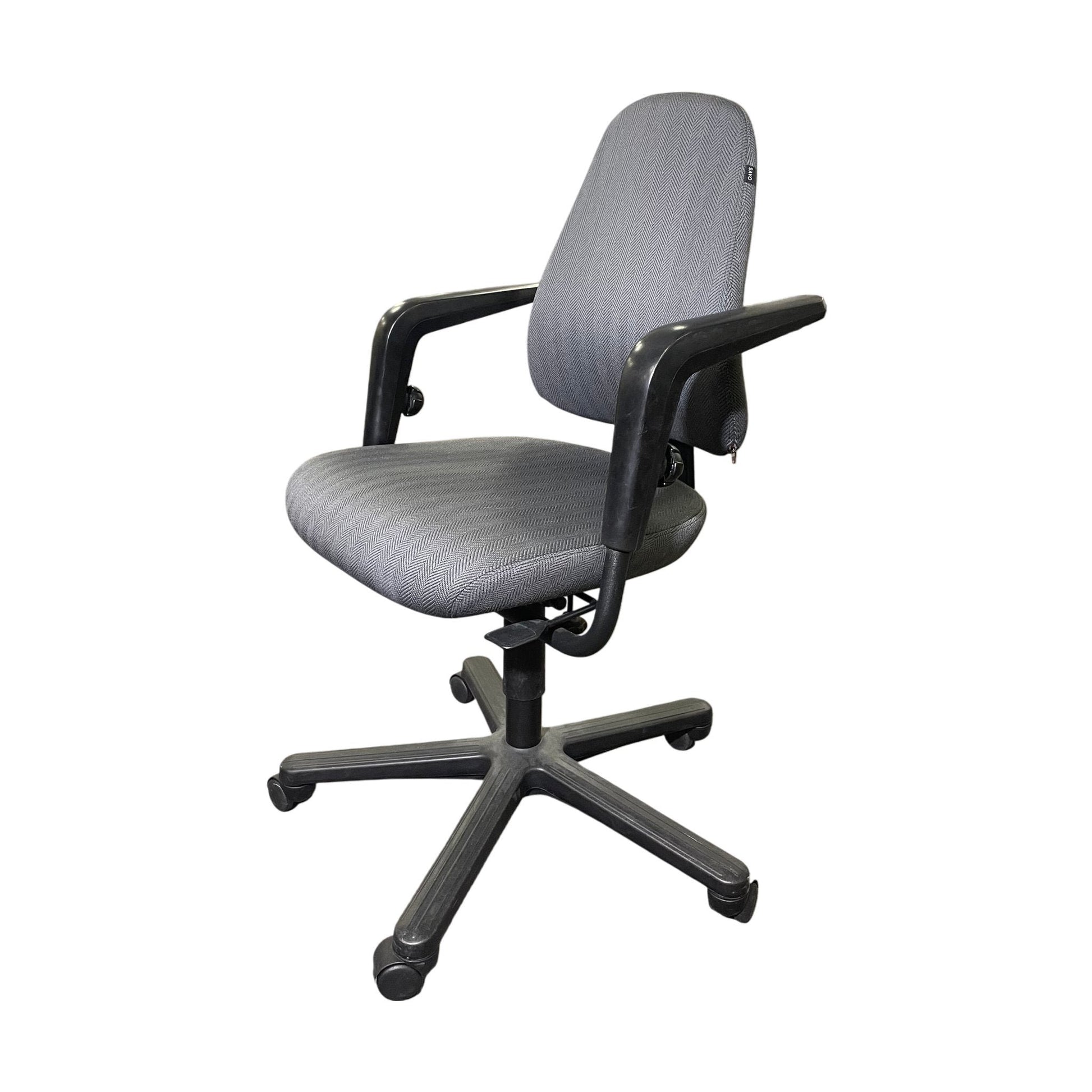 Kontorstolen er i godt brukt stand, med typiske bruksmerker. Setet og ryggstøtten har minimal slitasje, og alle funksjoner fungerer som de skal.