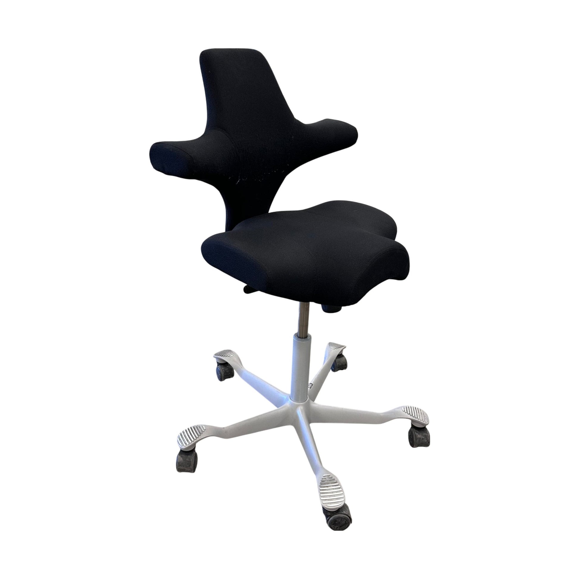 Ergonomisk kontorstol fra HÅG med modell Capisco som er designet for å fremme aktiv sitting. Den unike formen på setet gir mulighet for ulike sittestillinger og bidrar til økt trivsel i arbeidsmiljøet.