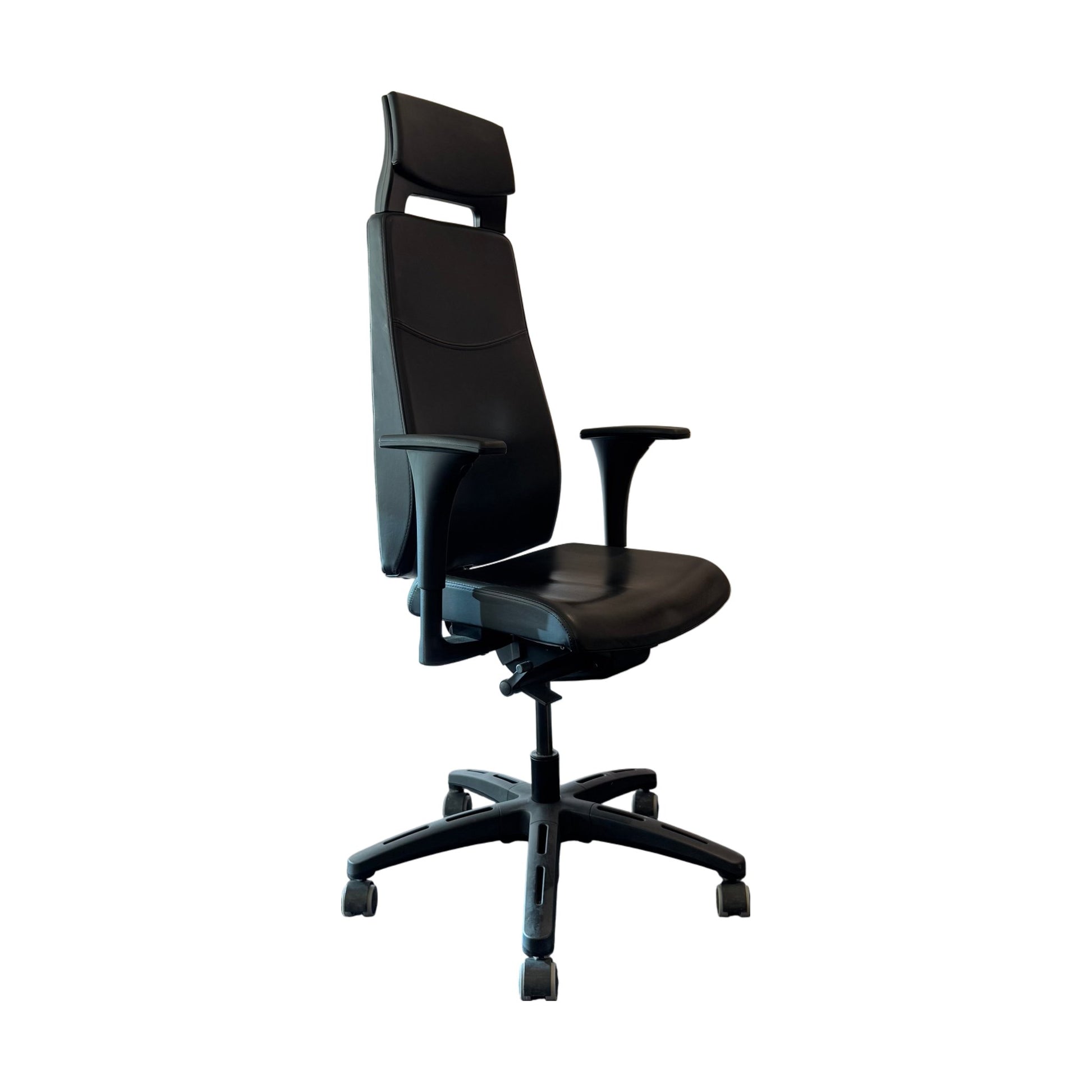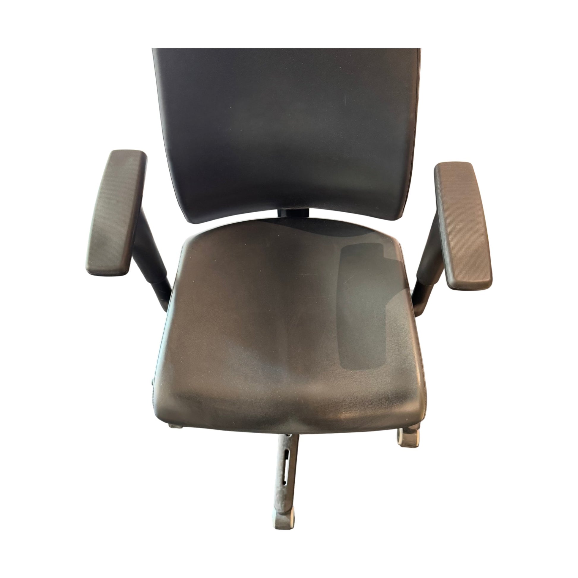 Ergonomisk kontorstol fra IKEA Volmar med stilrent design og solid polstring i svart stoff. Stolen tilbyr komfortabel støtte, noe som gjør den ideell for lange arbeidsøkter hjemme eller på kontoret.