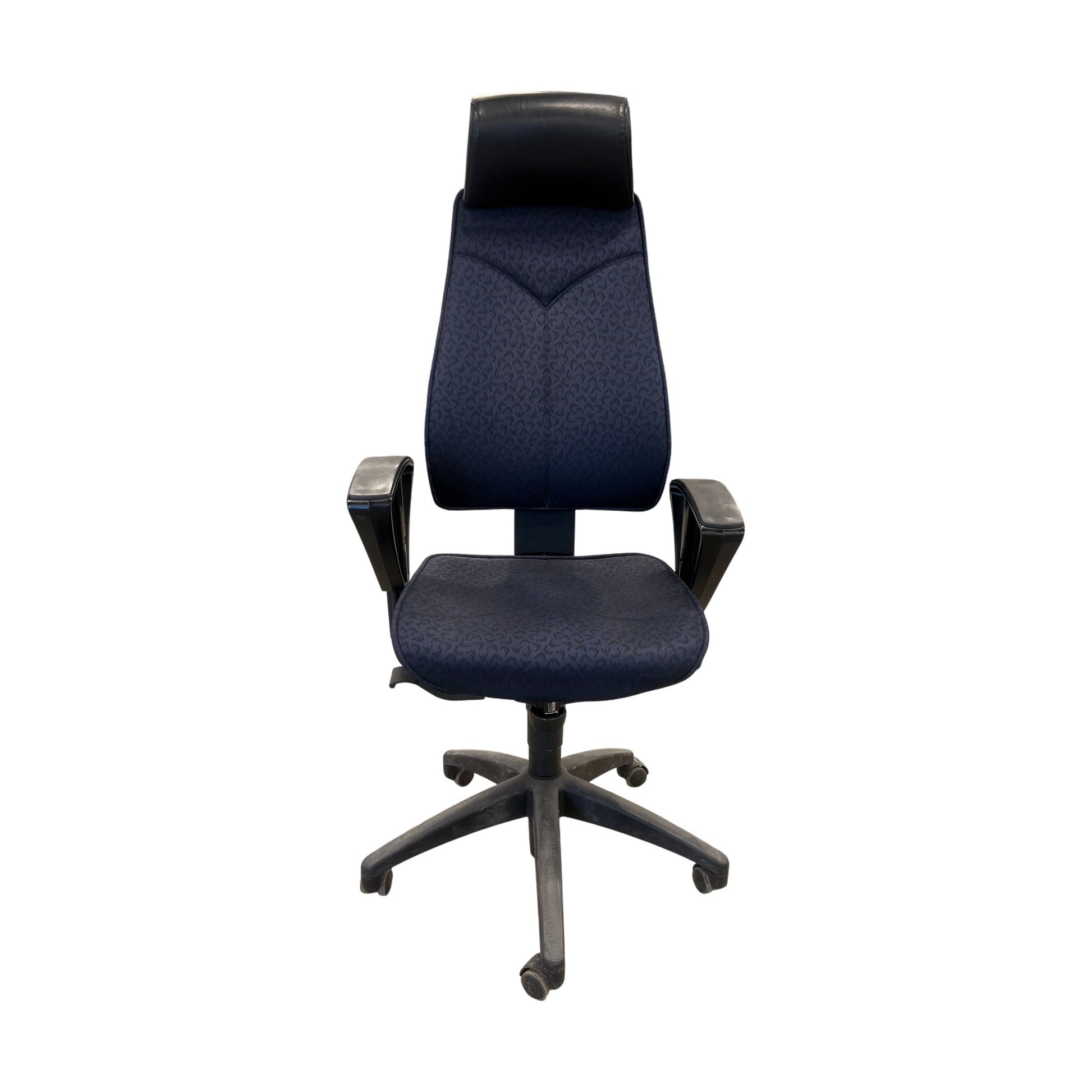 Ergonomisk kontorstol fra Kinnarps med modell FreeFloat 6000, designet for komfort og støtte i langvarige arbeidsopplevelser. Stolen har en stilren blåfarge med et subtilt mønster og en moderne estetikk som passer inn i ethvert kontormiljø.