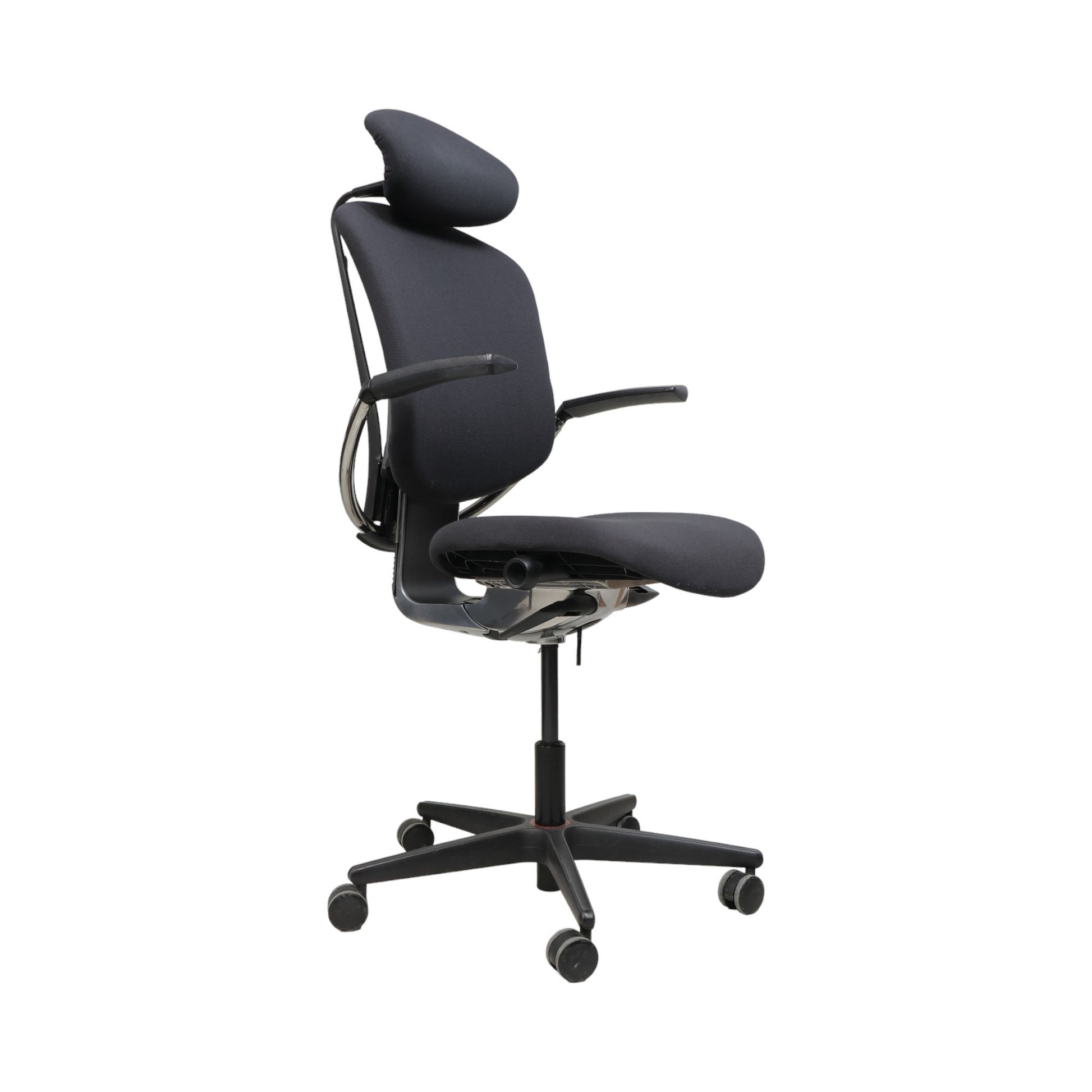 Stolen er i god tilstand med minimale synlige slitasjemerker. Alle justeringsfunksjoner fungerer som de skal, og stoffet er fritt for flekker.