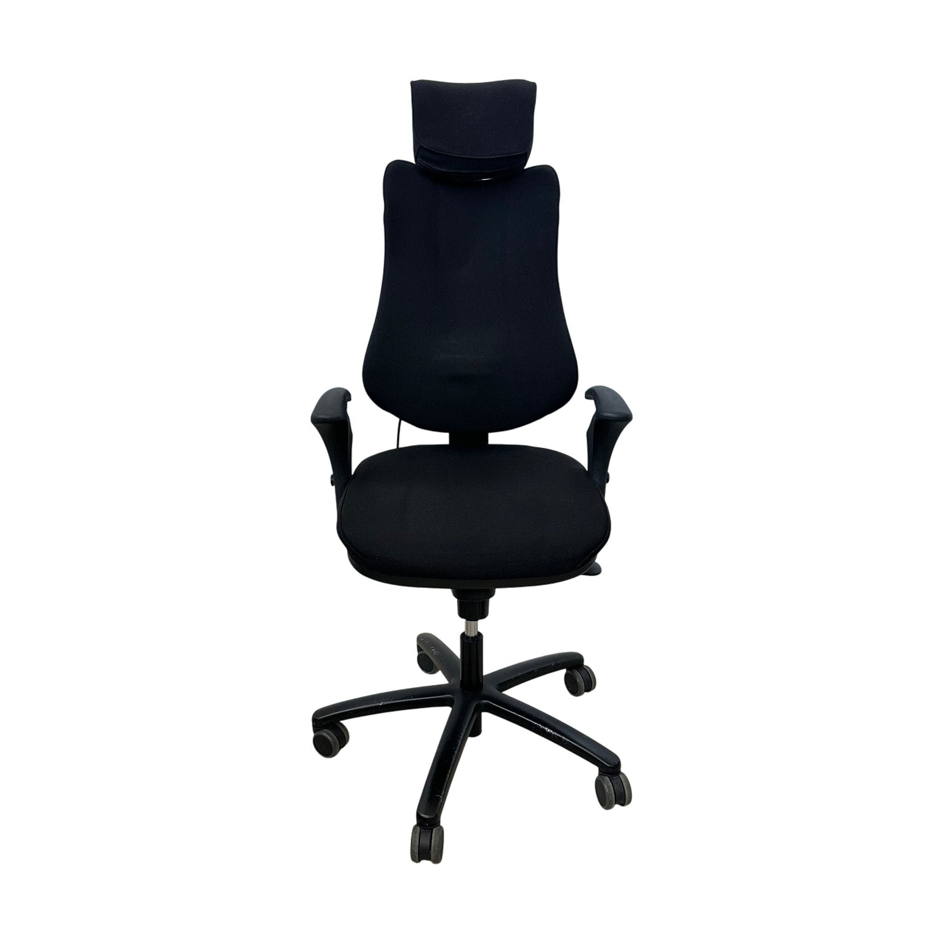 Stolen er i godt brukt stand med noen mindre bruksmerker som er typiske for bruken. Stoffet er ellers i god stand uten synlige flekker, og alle justeringsfunksjoner fungerer som de skal.
