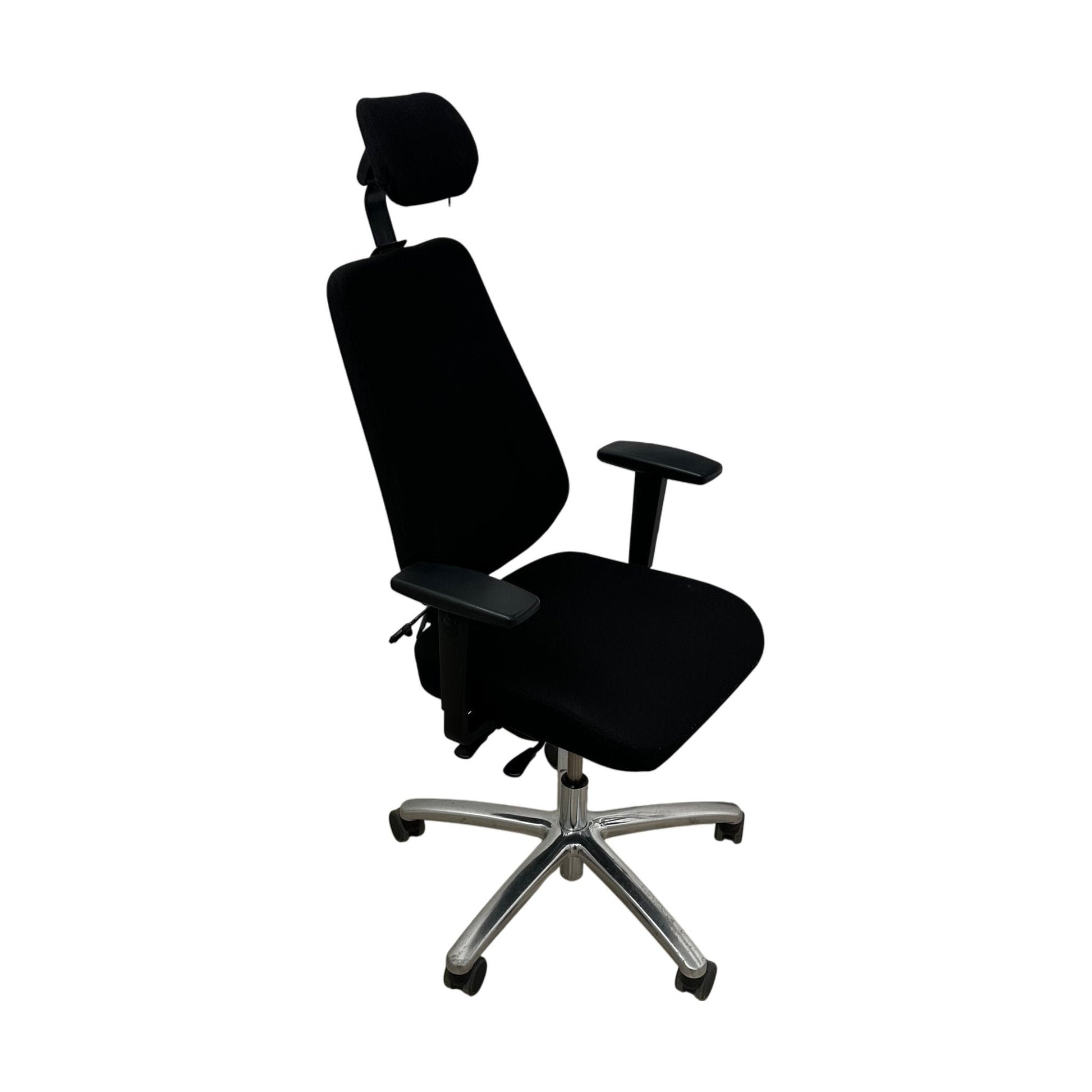 RBM 839 er en stilren kontorstol fra RBM med et strømlinjeformet design og en elegant krom understell. Stolen er trukket i svart stoff som gir en moderne og profesjonell estetikk, samtidig som den tilbyr komfort for lange arbeidsdager.