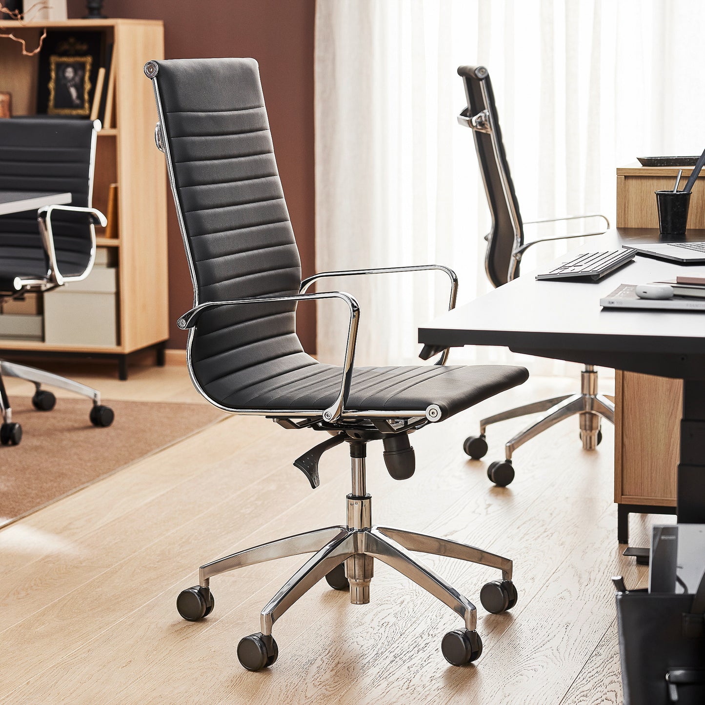 Kontorstol SALFORD, høy rygg, kunstskinn, svart