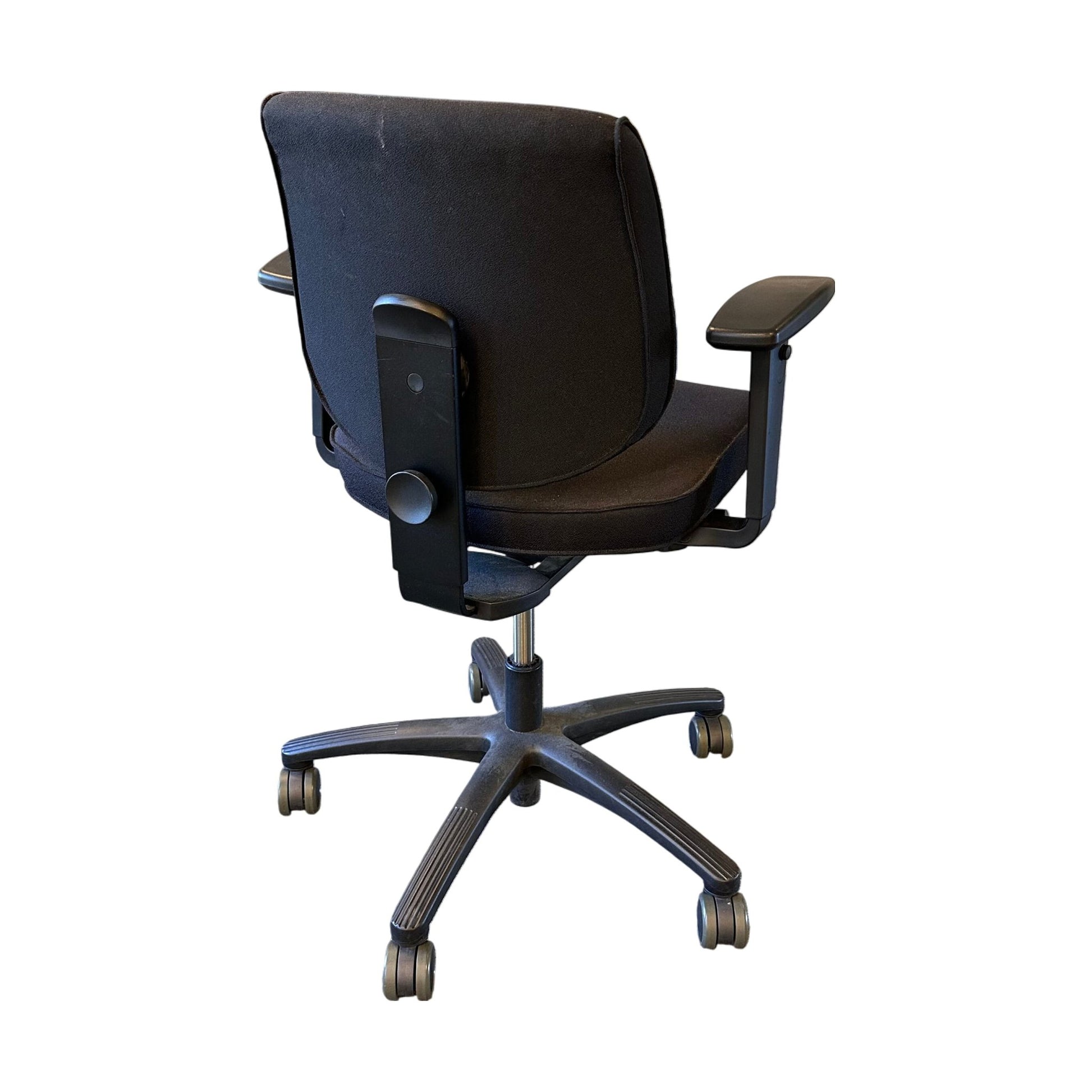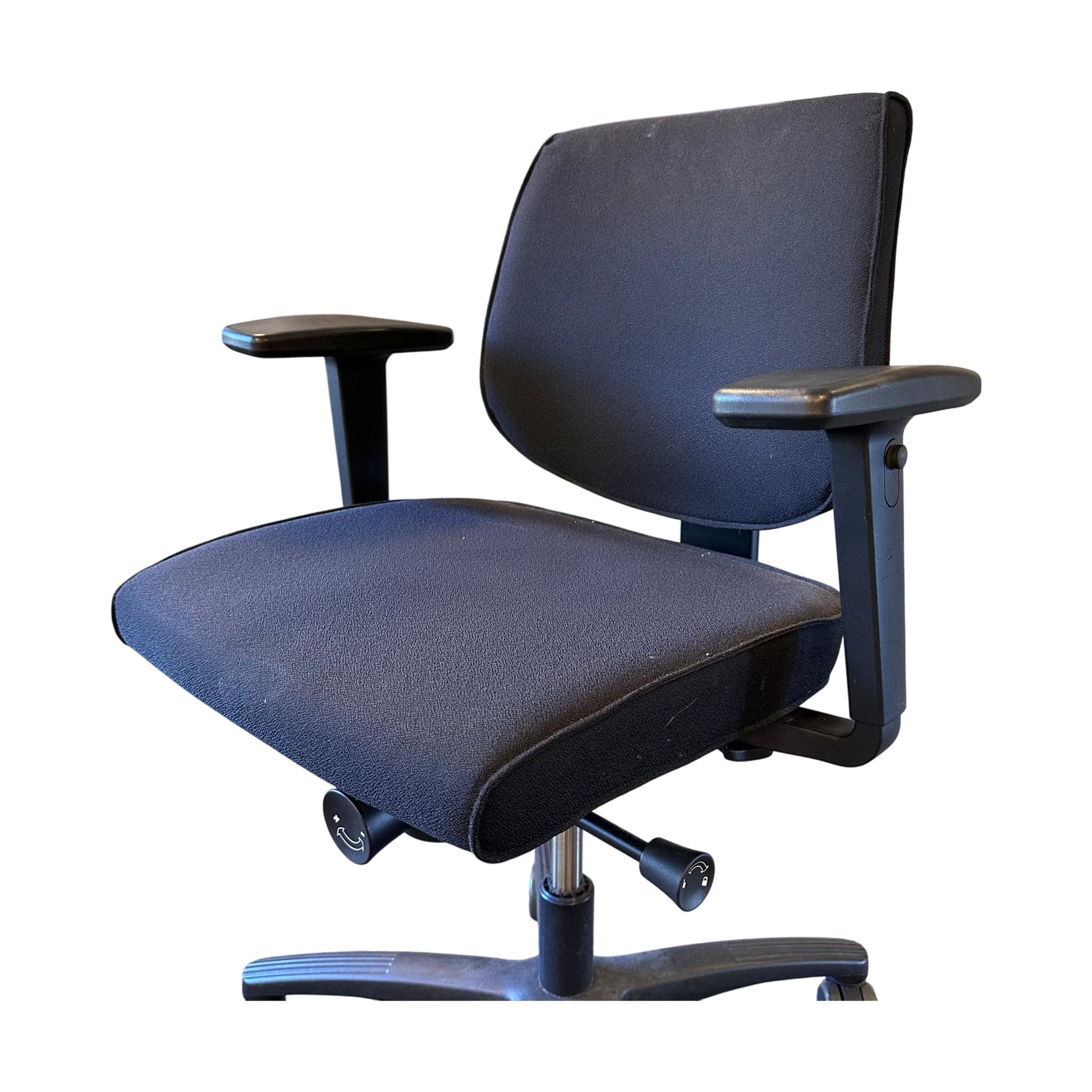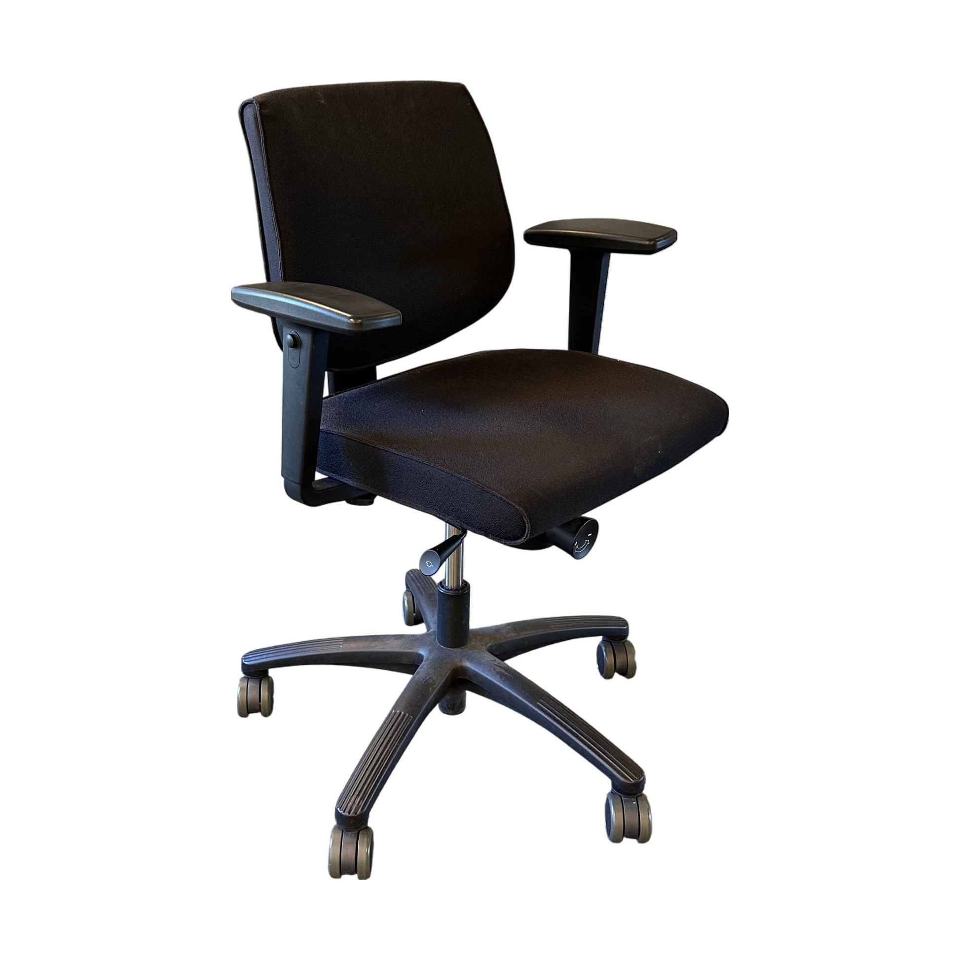 Ergonomisk kontorstol i svart med et enkelt og funksjonelt design. Stolens stilrene uttrykk gjør den velegnet for ulike kontormiljøer. Den tilbyr fleksibilitet for daglig bruk med hjul for enkel mobilitet.