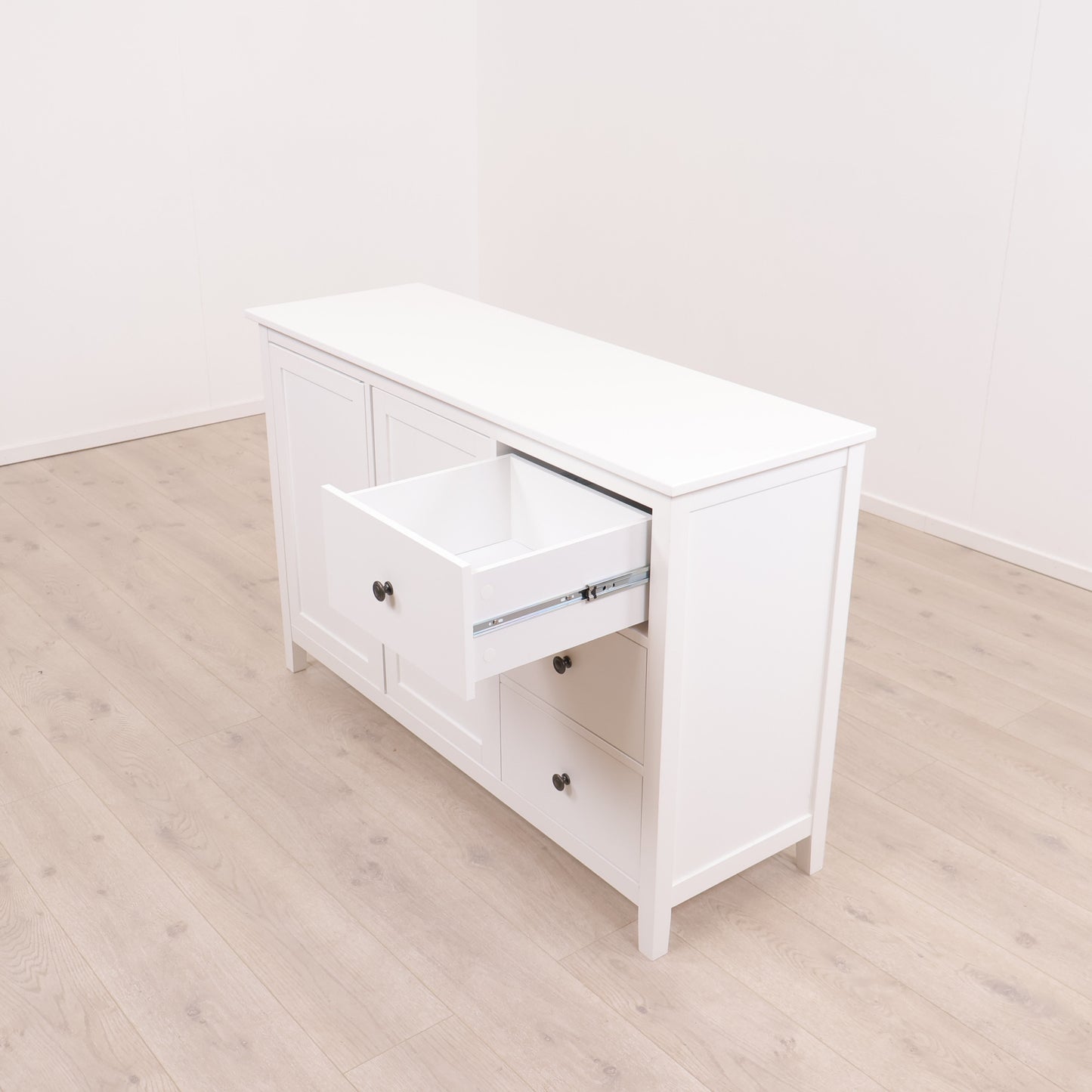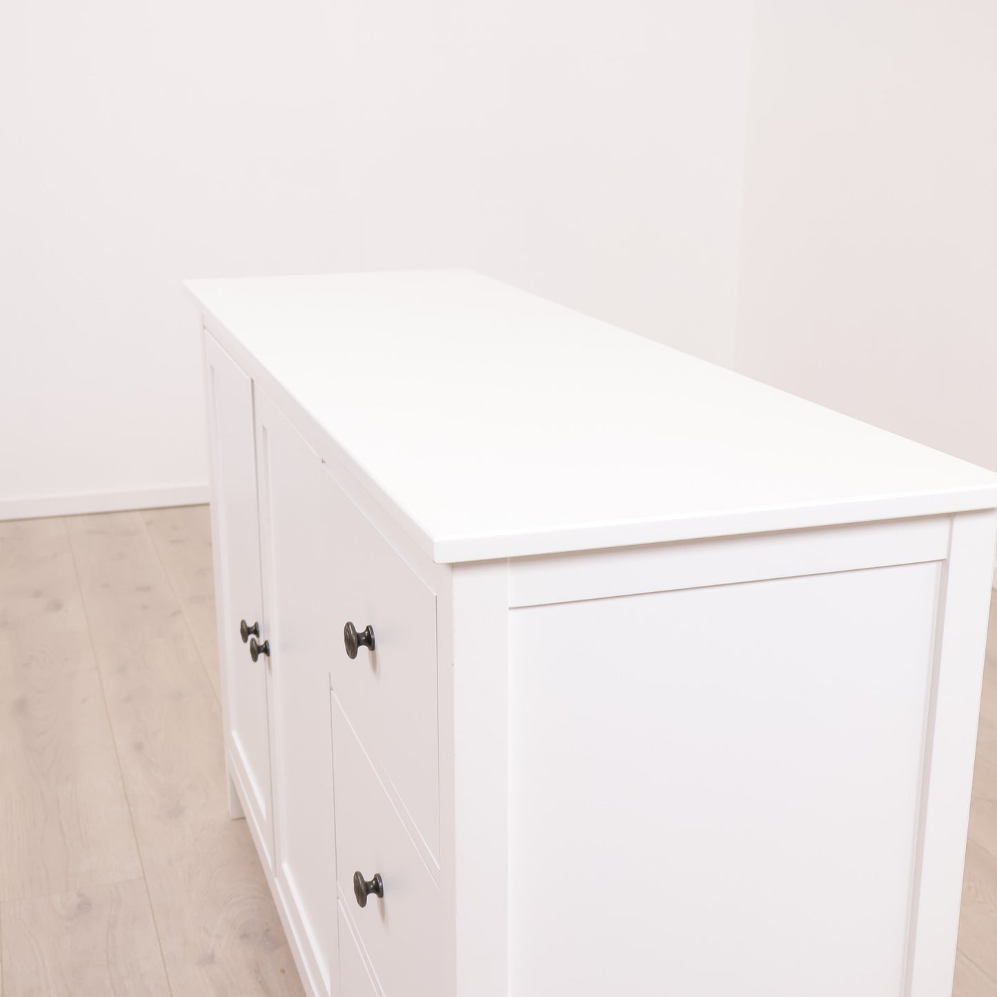 Kun brukt til utstilling | Hvit Nordby skjenk med dører og skuffer