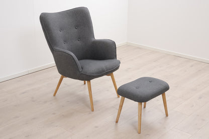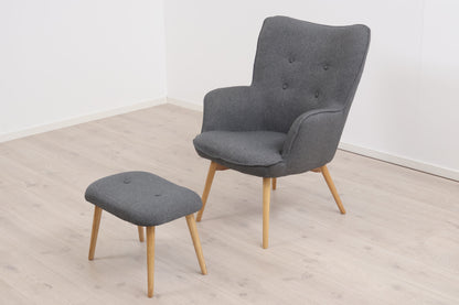 Kun brukt til utstilling | Mørk grå Skalborg lenestol med krakk