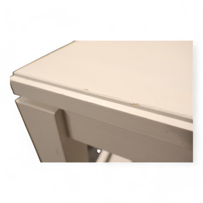 Bordet er brukt og viser noen små riper og generelle bruksspor, men disse er ikke markante og påvirker ikke den estetiske appellen.