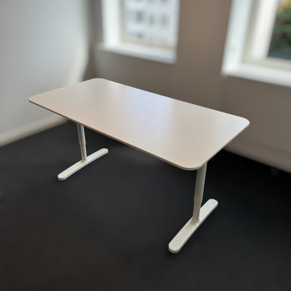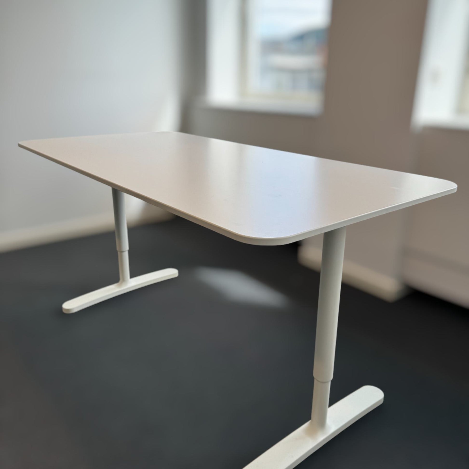 Kvalitetssikret | 160x80 cm, IKEA Bekant manuelt hev/senk skrivebord i hvit
