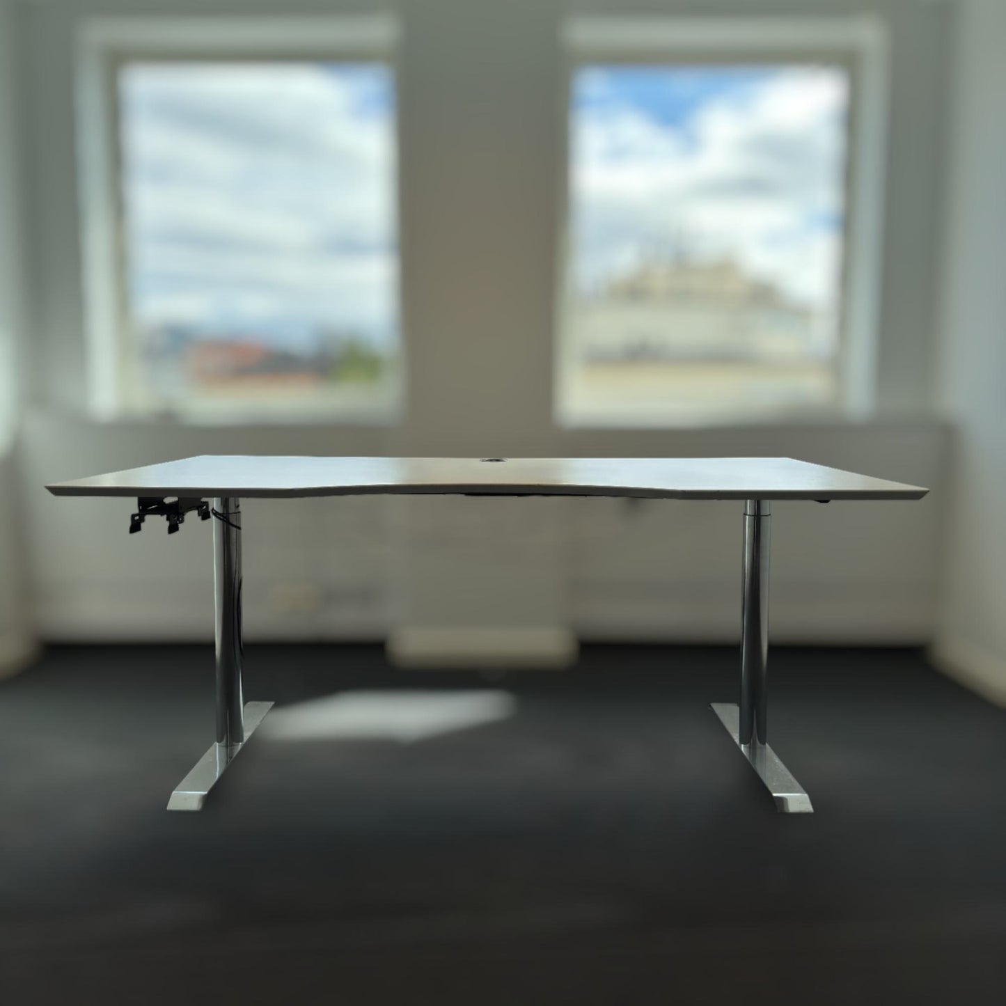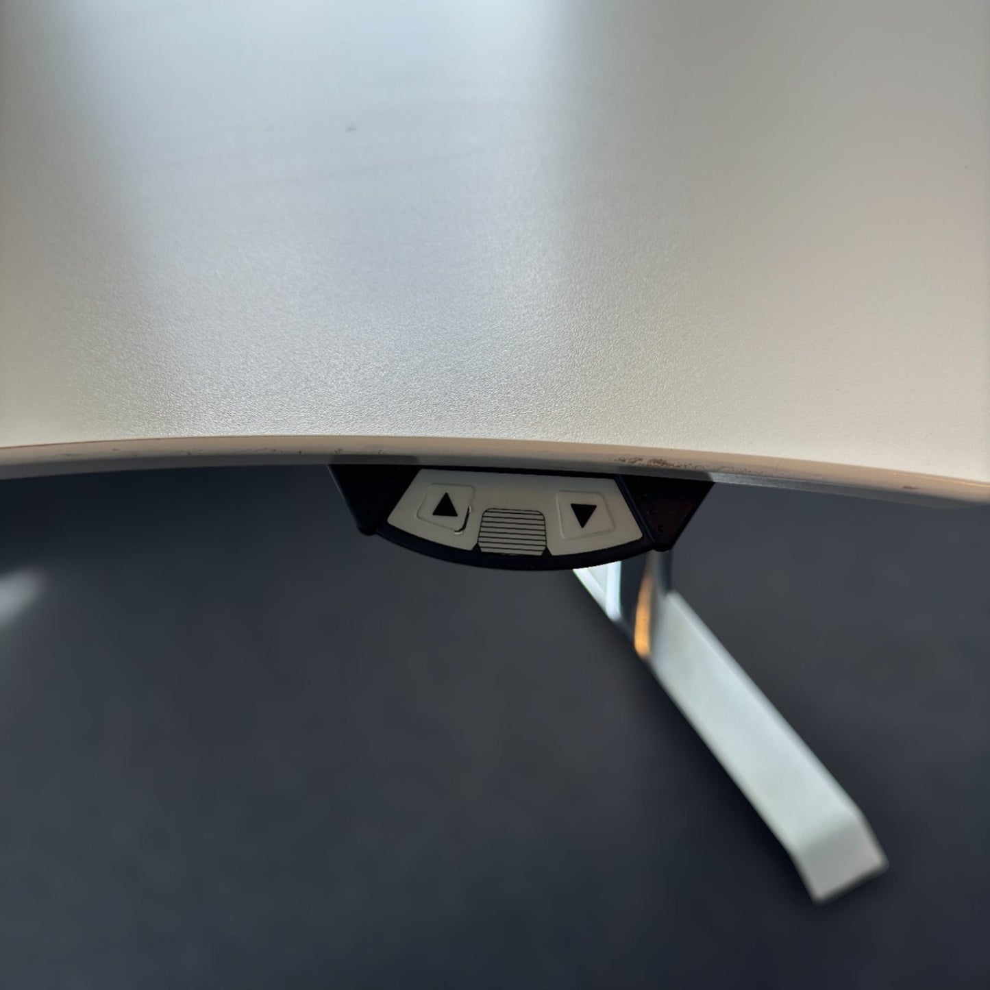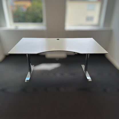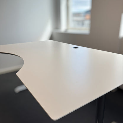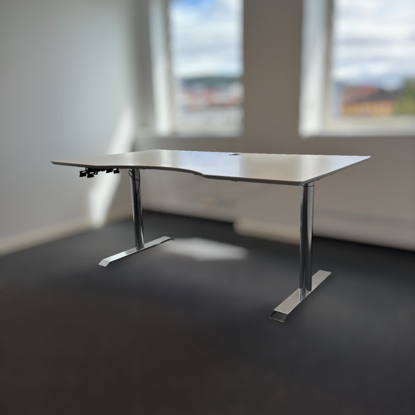 Skrivebordet er i god tilstand uten synlige defekter. Perfekt for et ergonomisk arbeidsmiljø. Rask levering tilgjengelig.