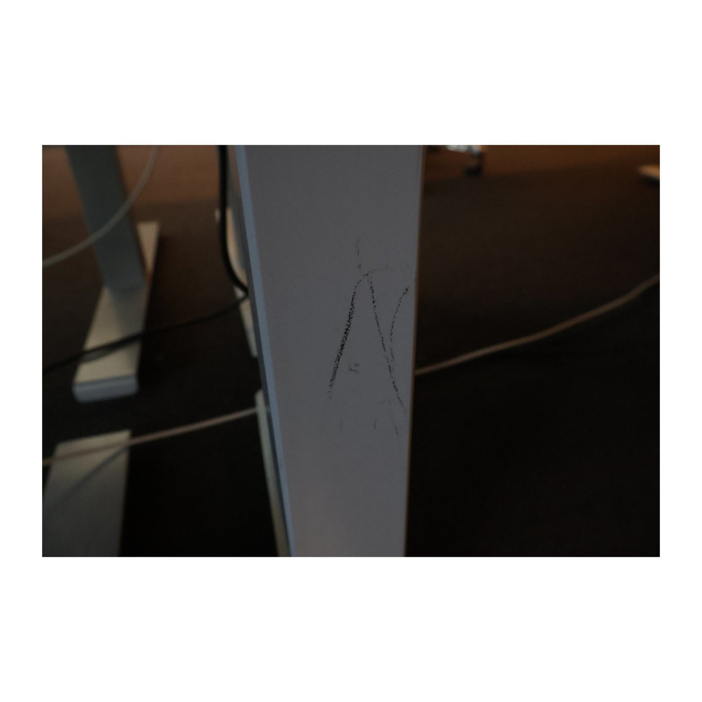 Selv om bordet er i god tilstand, kan det være mindre skader langs kantene på bordplaten. Disse skadene påvirker ikke bordets funksjonalitet. Dette skrivebordet er ideelt for moderne kontorer som verdsetter både stil og funksjonalitet.