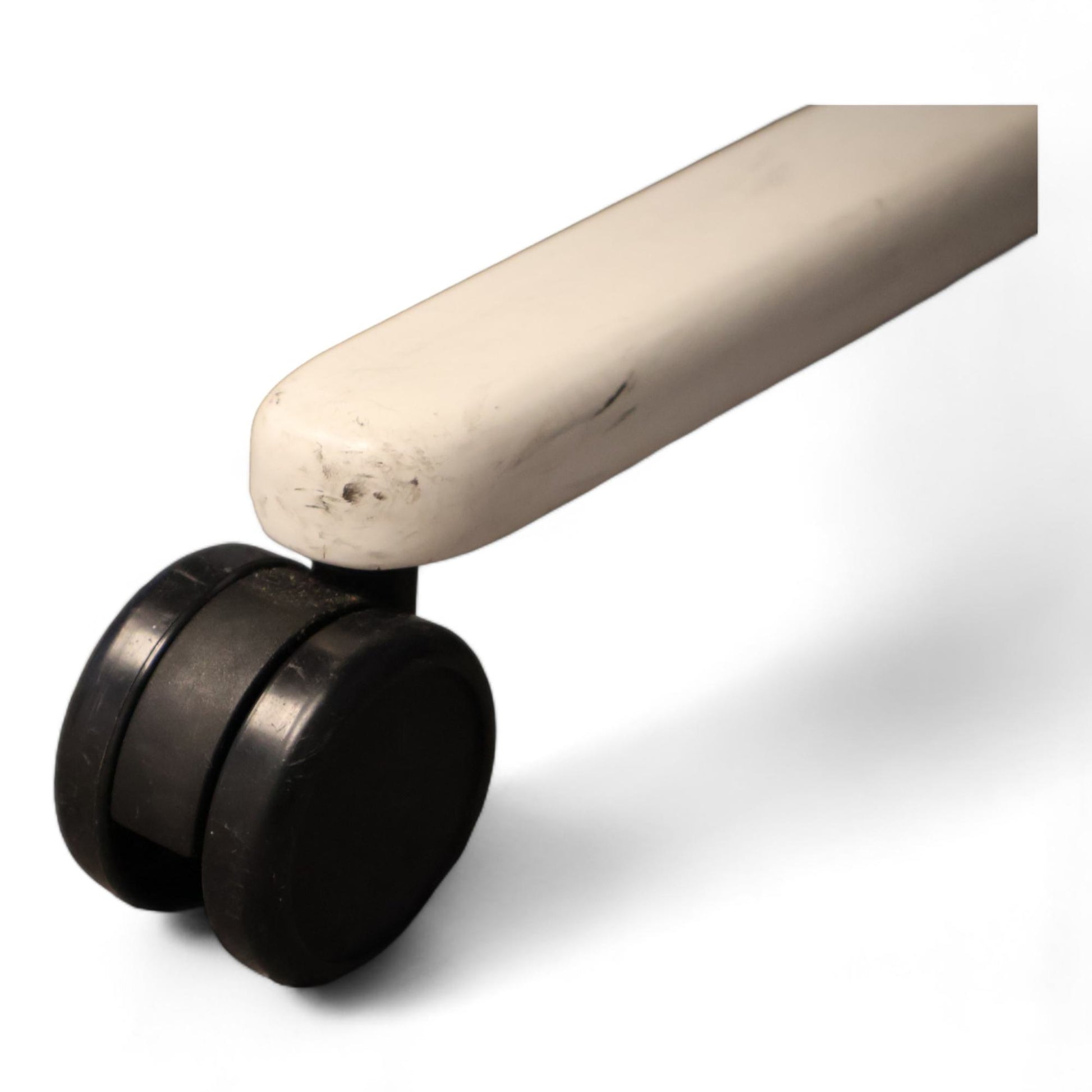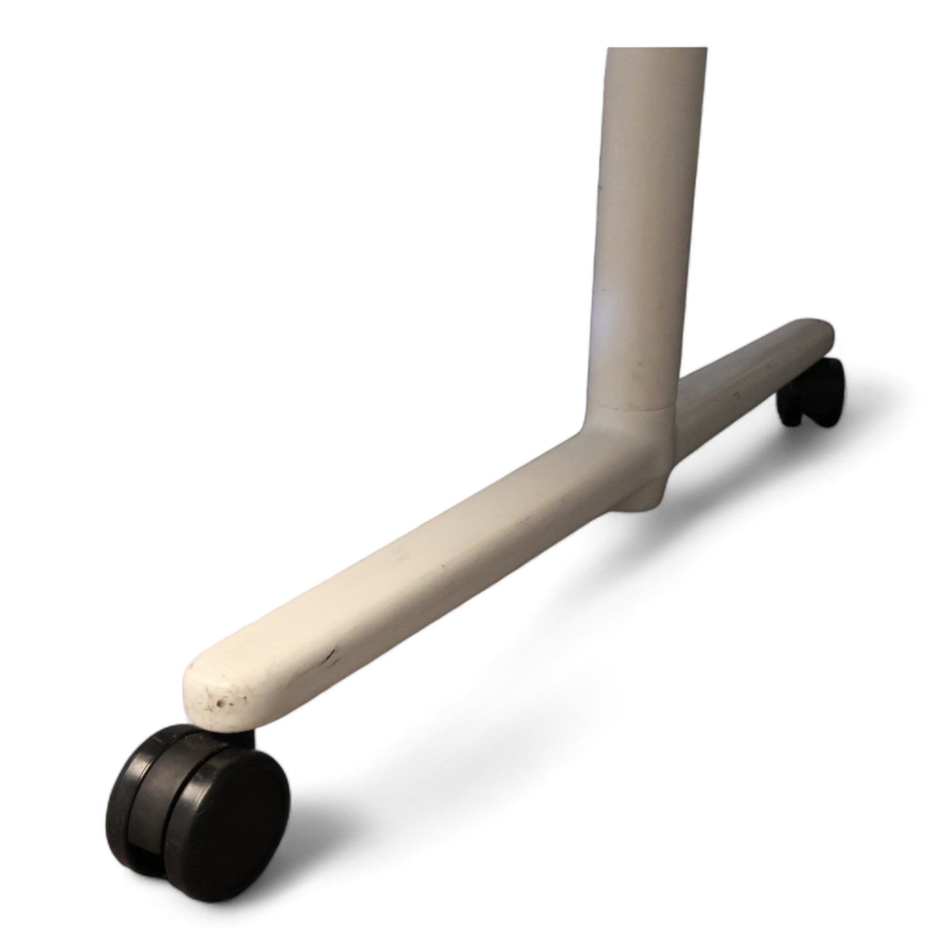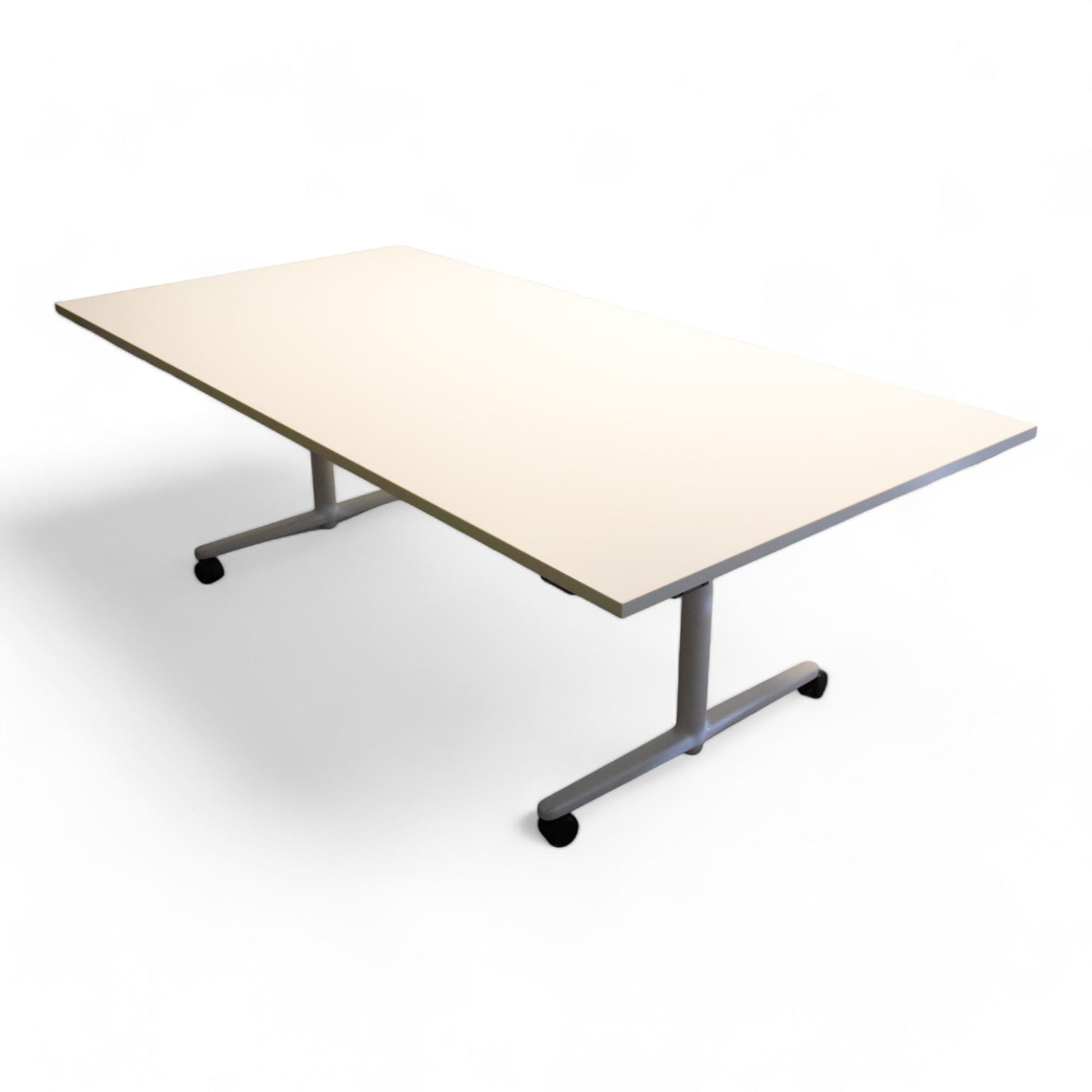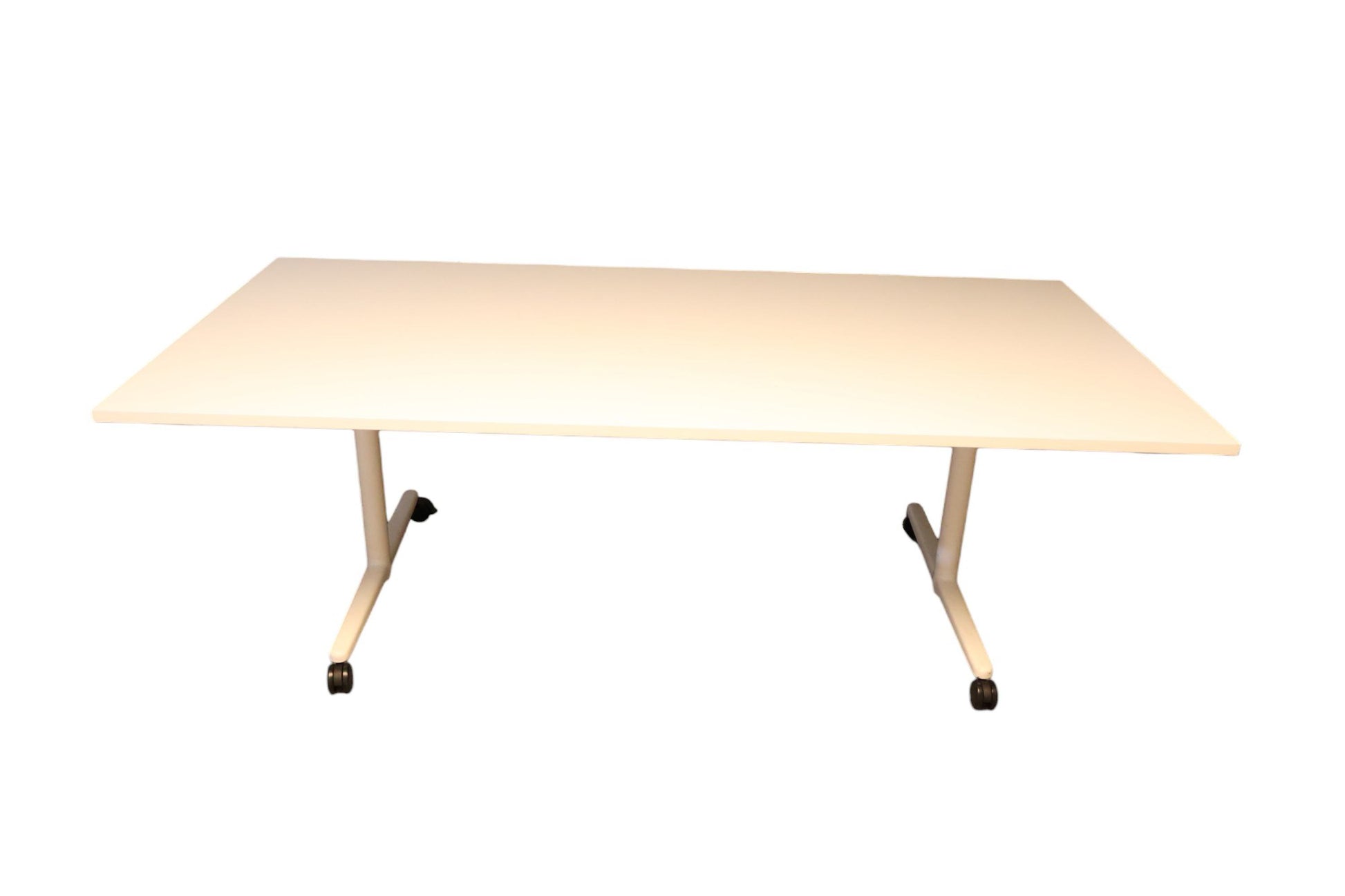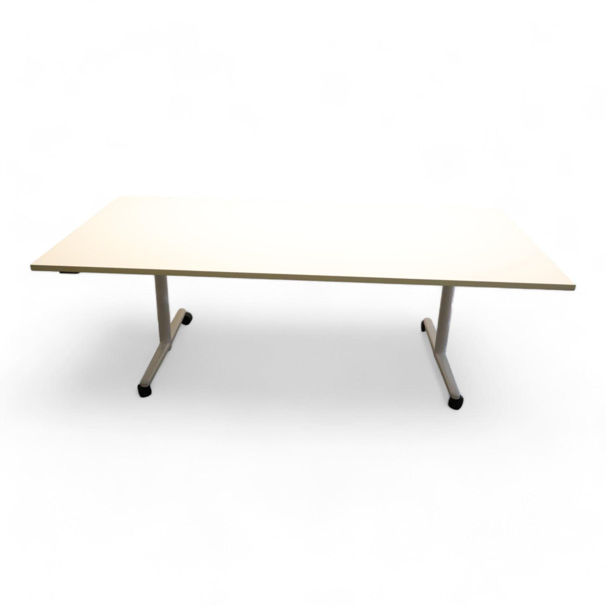 Bena på bordet har mange merker, men bordet er ellers i god tilstand. Perfekt for fleksible arbeidsmiljøer hvor mobilitet er viktig.