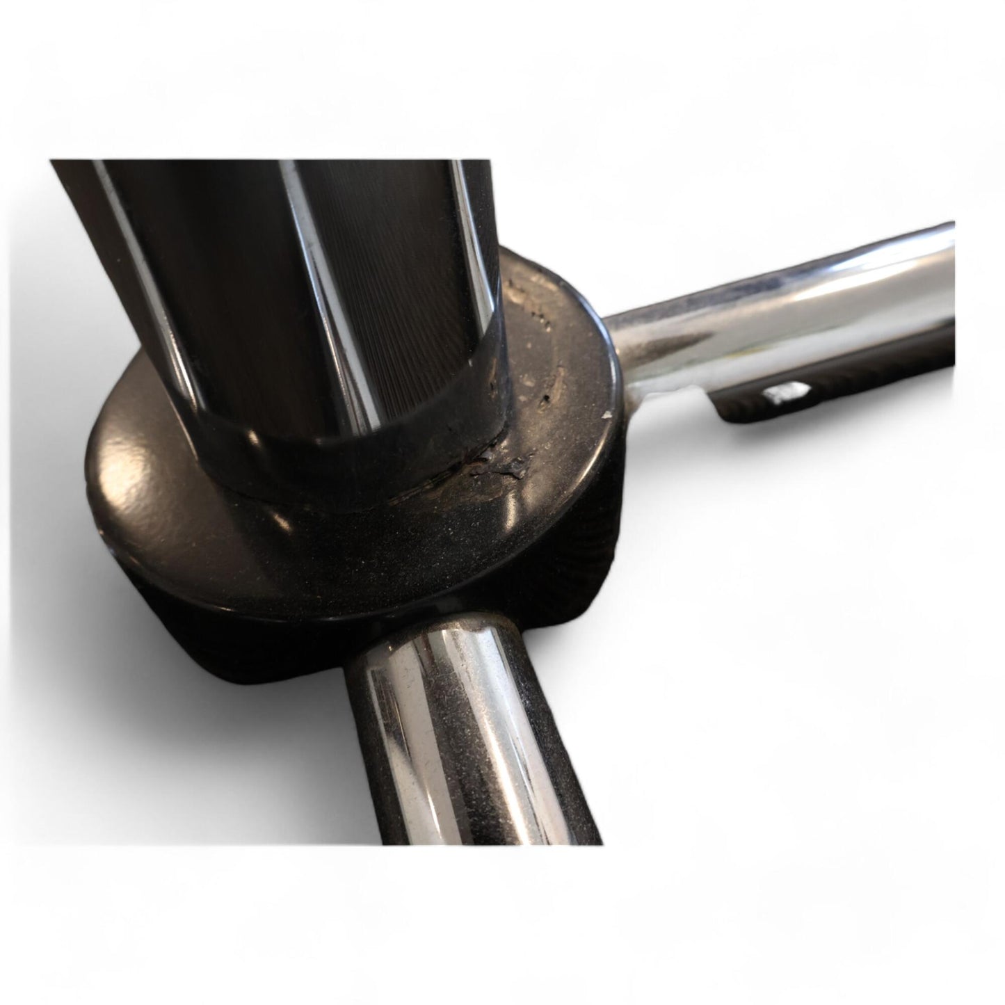 Bordet viser noen bruksmerker, spesielt langs kantene av platen og på bena nederst, men disse er ikke overveldende og påvirker ikke bordets overordnede funksjonalitet eller estetiske appell. Dette er et flott valg for de som ønsker et funksjonelt og stilfullt møbelstykke.