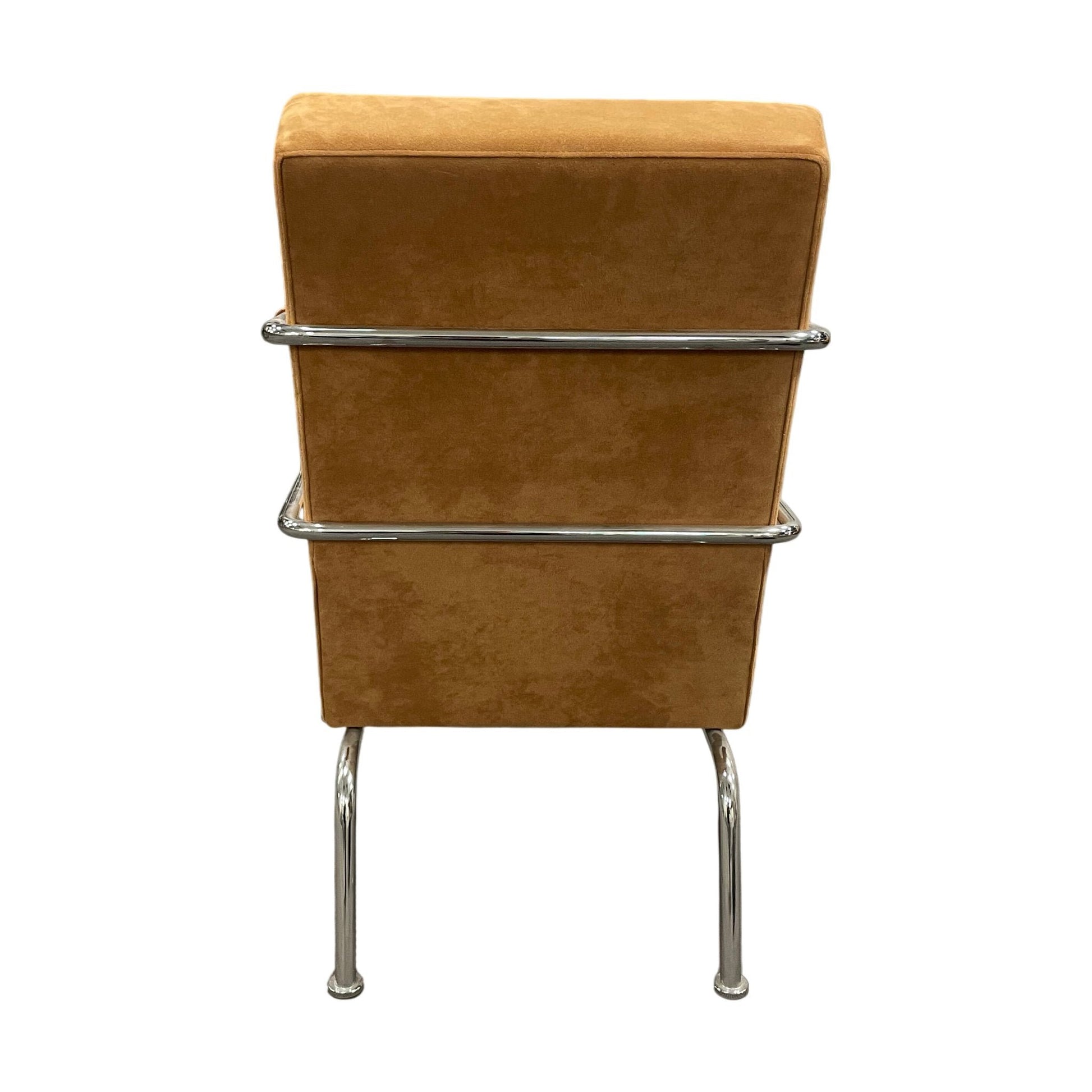 Lammhults loungestol fra Gunilla Allard med et tidløst og stilrent design. Stolen har en komfortabel polstring trukket i en varm, brun farge som gir et elegant preg til ethvert rom. Stolen er støttet av en robust ramme av stål som gir stabilitet og holdbarhet. Den enkle, men klassiske stilen gjør den velegnet til både kontor og hjemmemiljøer.