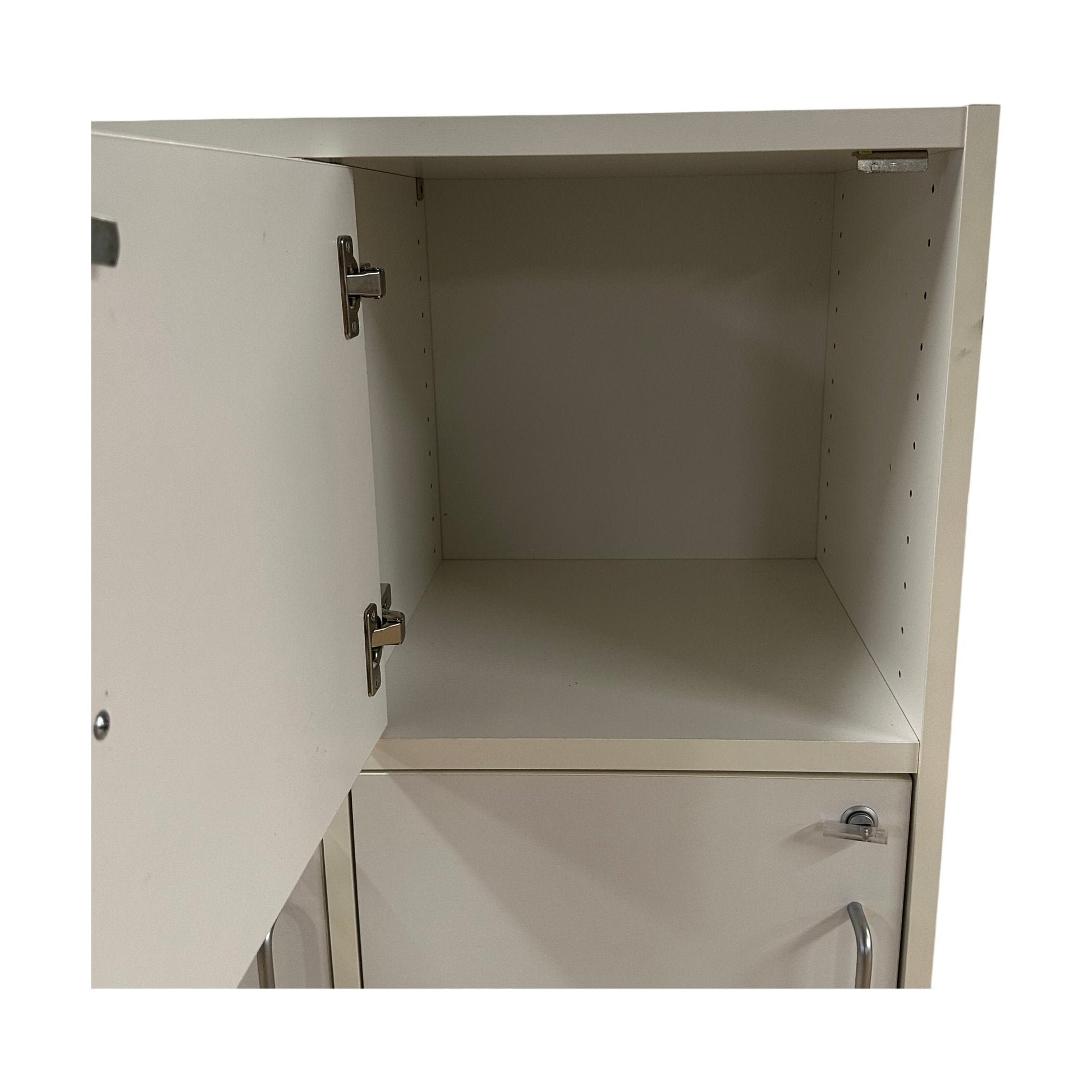 Praktisk og låsbart skap fra Svenheim designet for kontoret. Dette skapet har flere dører og gir en sikker oppbevaringsløsning for dokumenter og verdigjenstander. Den hvite fargen gir et moderne og stilrent uttrykk.