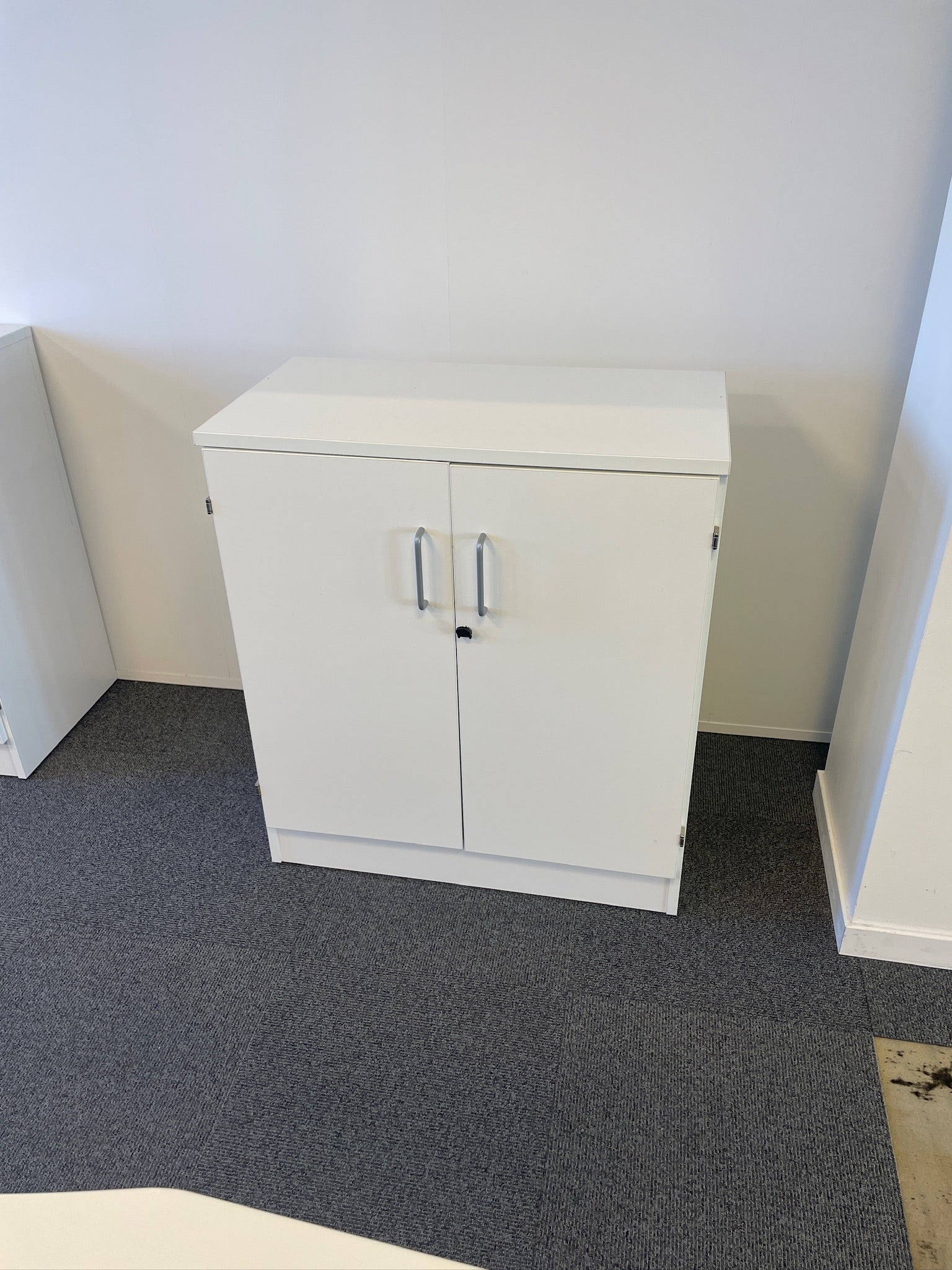 Låsbart skap i hvit laminat, med dører