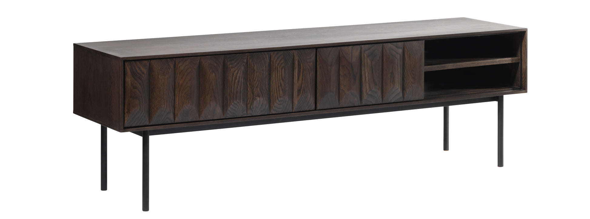 Latina TV-benk fra A-Møbler er et stilrent møbel som kombinerer modernitet med funksjonell oppbevaring. Den unike overflaten i espresso eik og de profilerte dørene gir et blikkfang som vil smelte inn i ethvert stueinteriør.