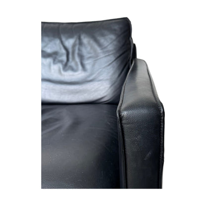 Lenestolen er i god stand med en viss slitasje på skinnet, men uten synlige skader. Skinnet fremstår litt slappere, men dette bidrar til komforten. Ideell til bruk i stuen eller som en stilfull lesekrok. Sømmen er gått opp noe på den ene puten - derfor den lave prisen