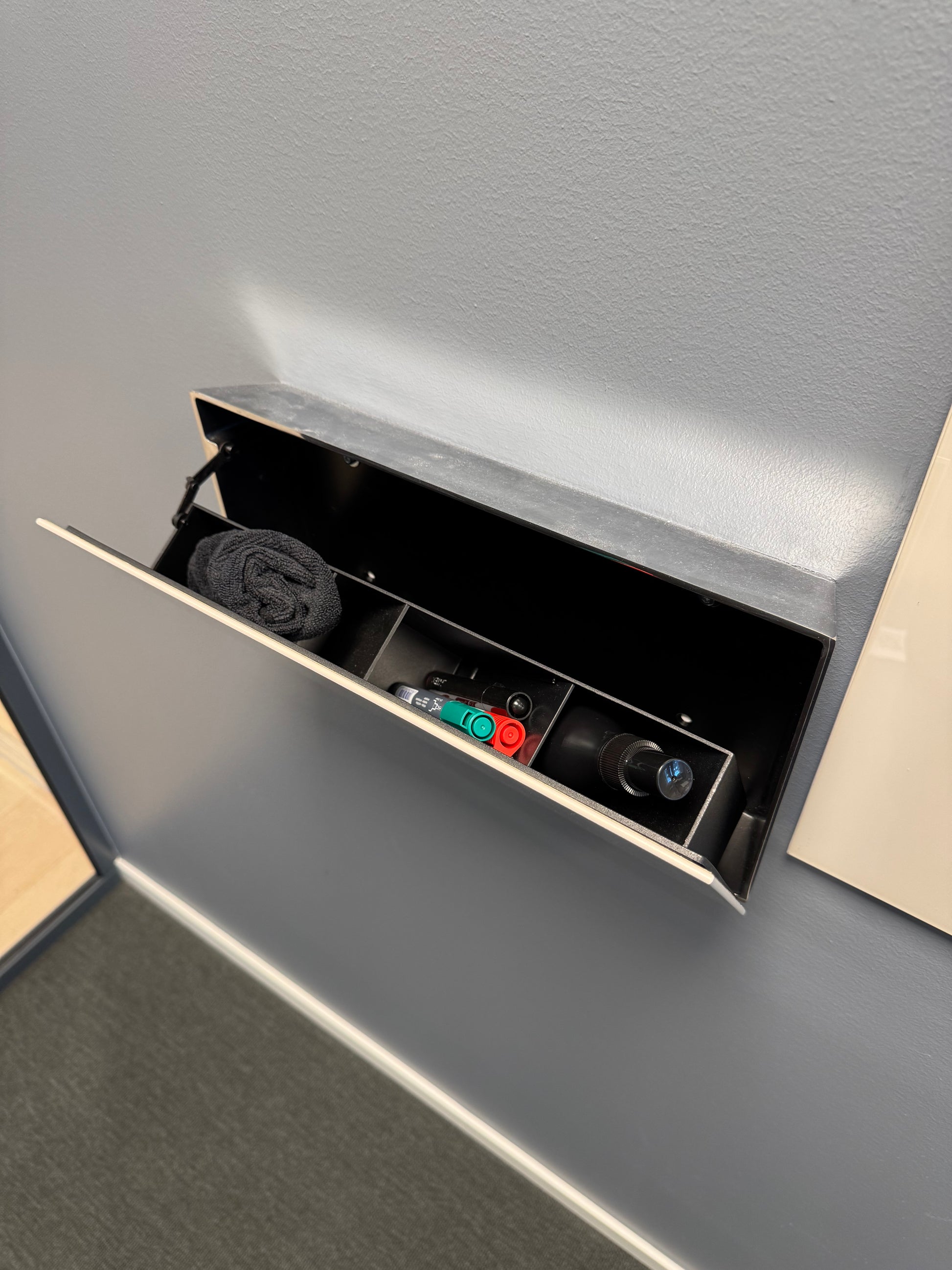 Produktet er i god tilstand med få tegn på bruk. Monteres enkelt vegghengt. Boksen ved siden av medfølger ikke