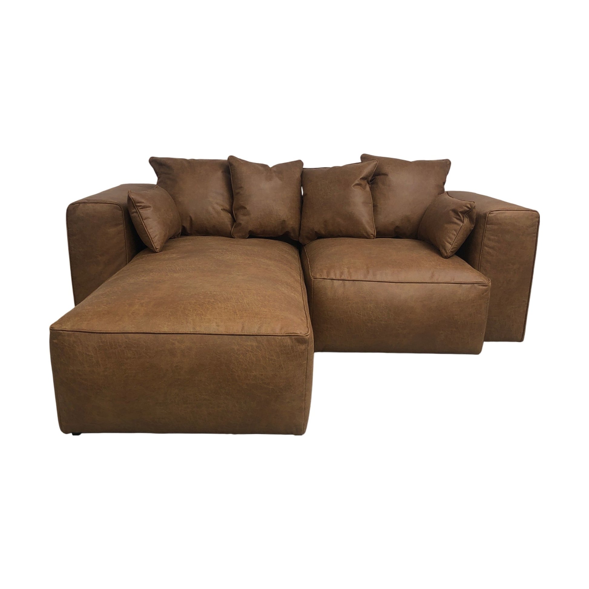 Elegant og stilren Luna 2-seter med sjeselong fra Home&Cottage. Denne sofaen i brunt Eco-skinn gir et sofistikert preg med en tidløs vintage-look, og kan benyttes som en frittstående løsning eller kombineres med flere moduler for en skreddersydd innredning.